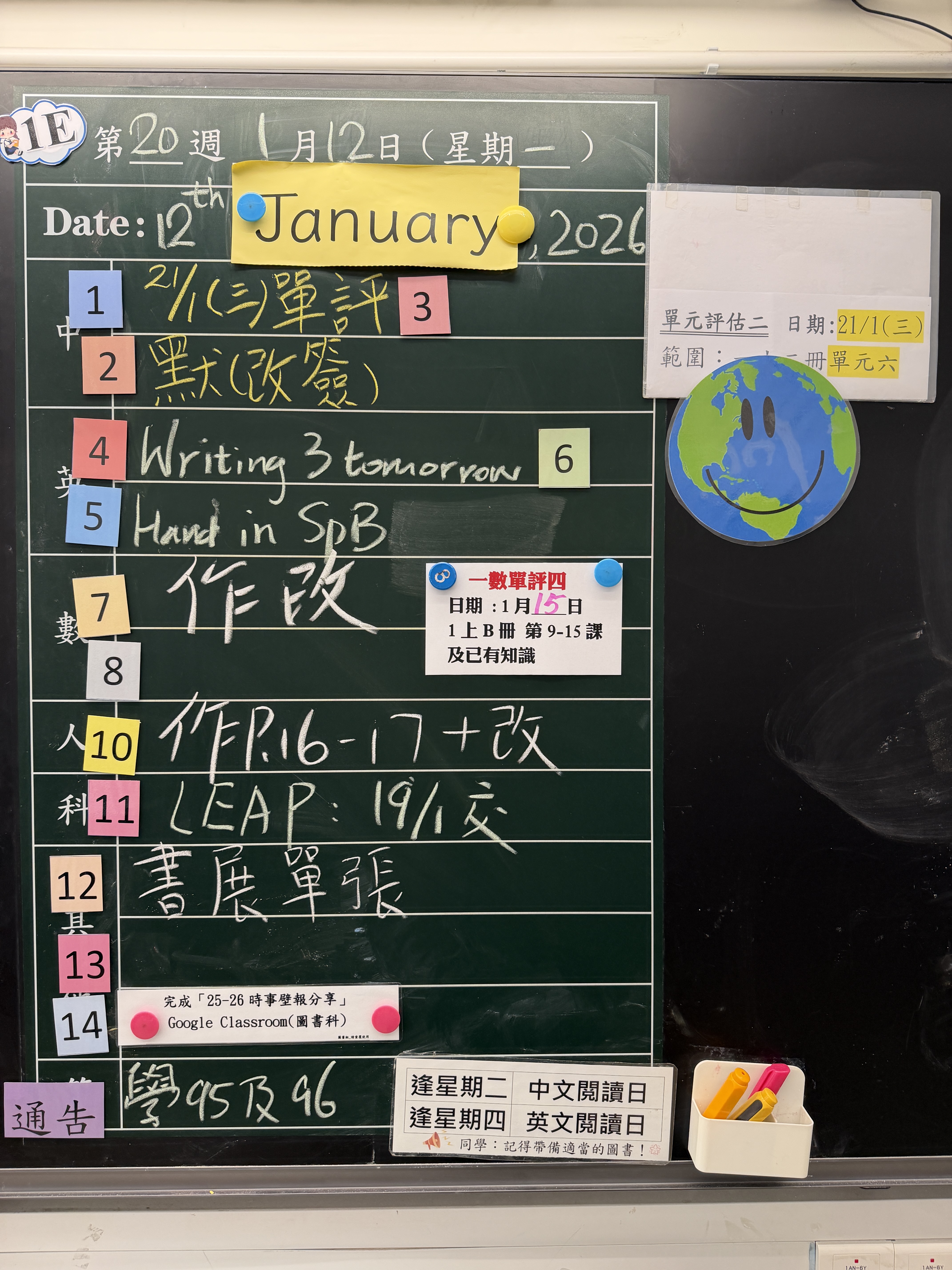 | 1B | 星期一 | 星期二 | 星期三 | 星期四 | 星期五 |