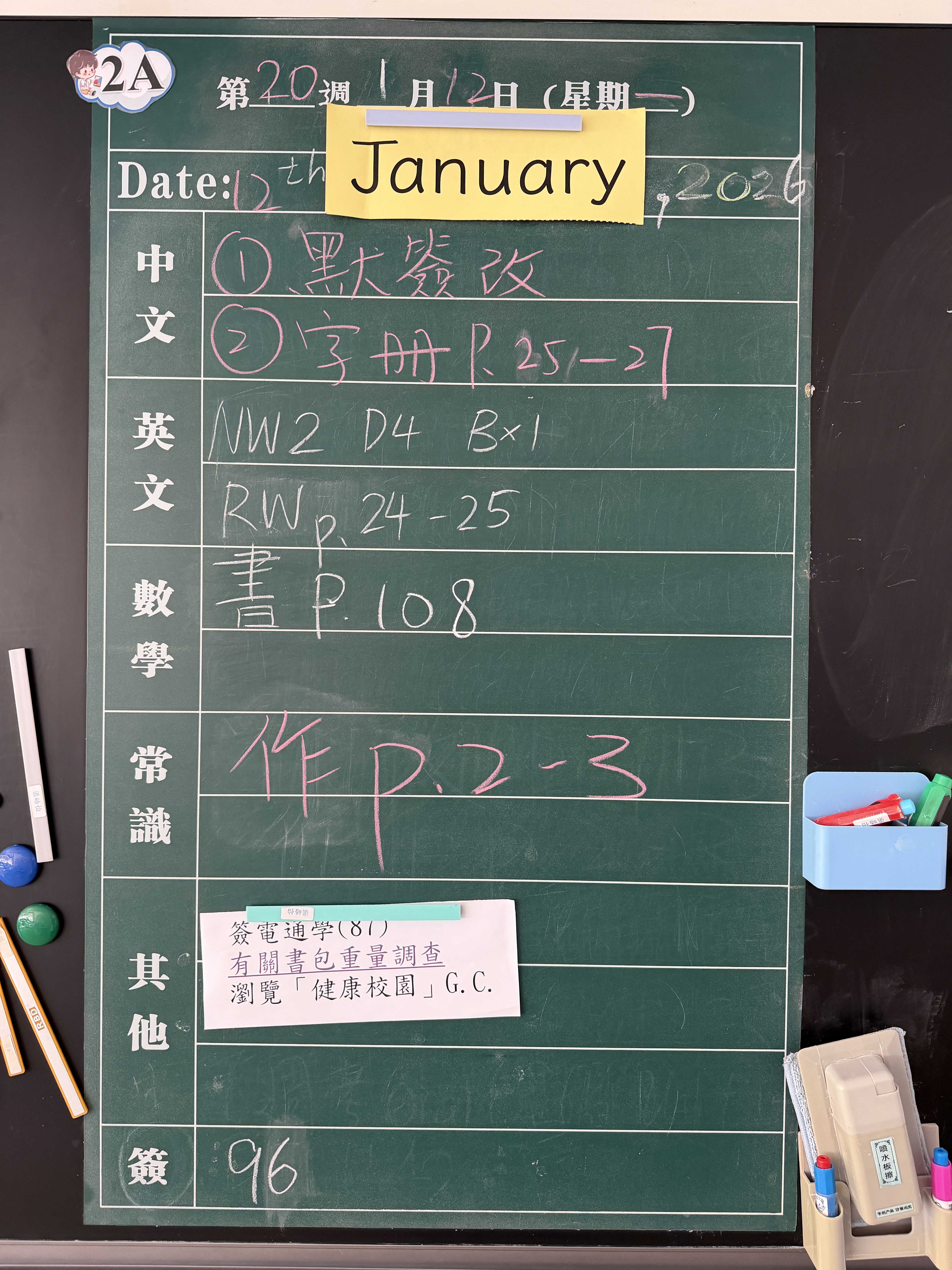 | 2A | 星期一 | 星期二 | 星期三 | 星期四 | 星期五 |