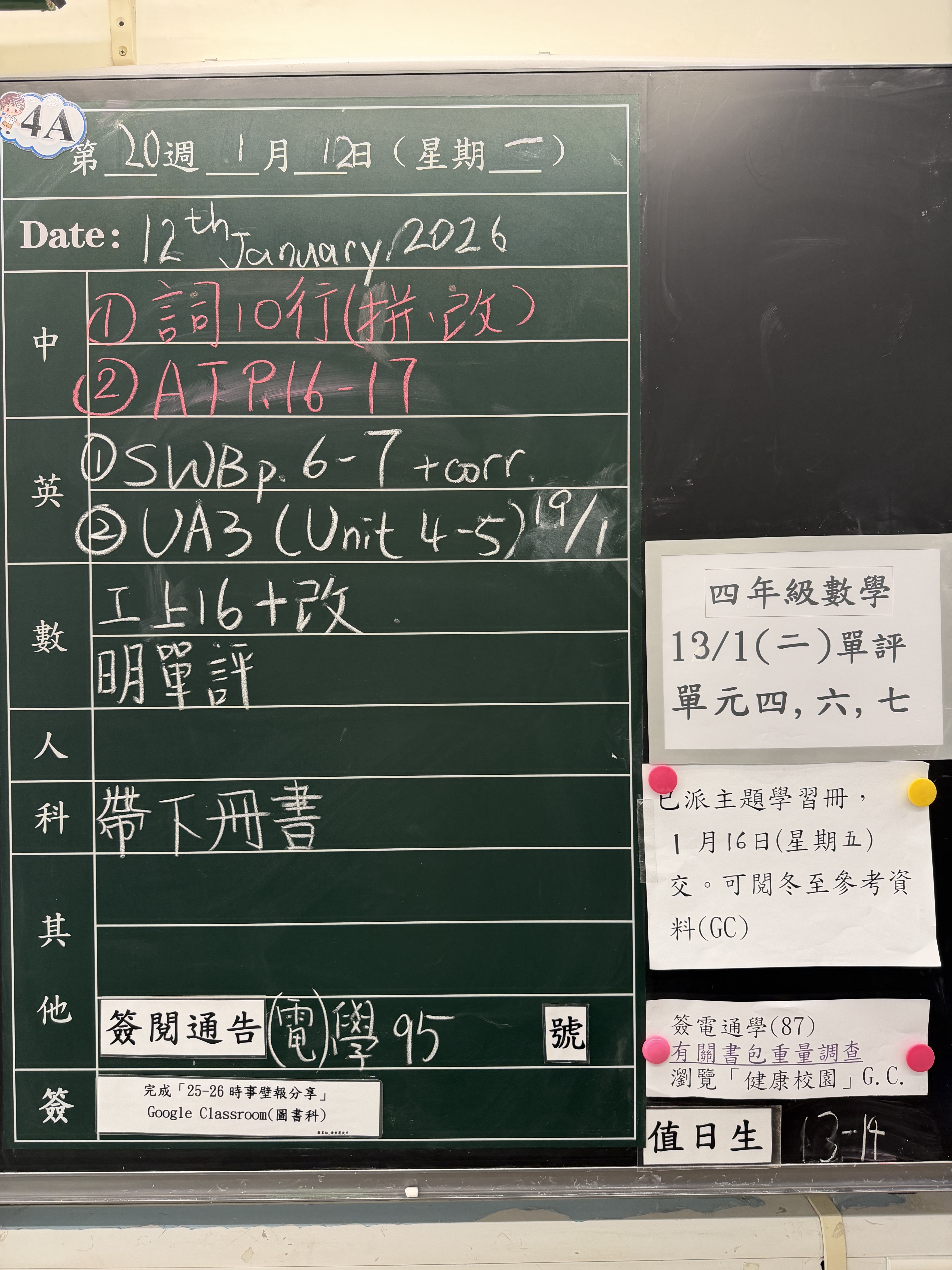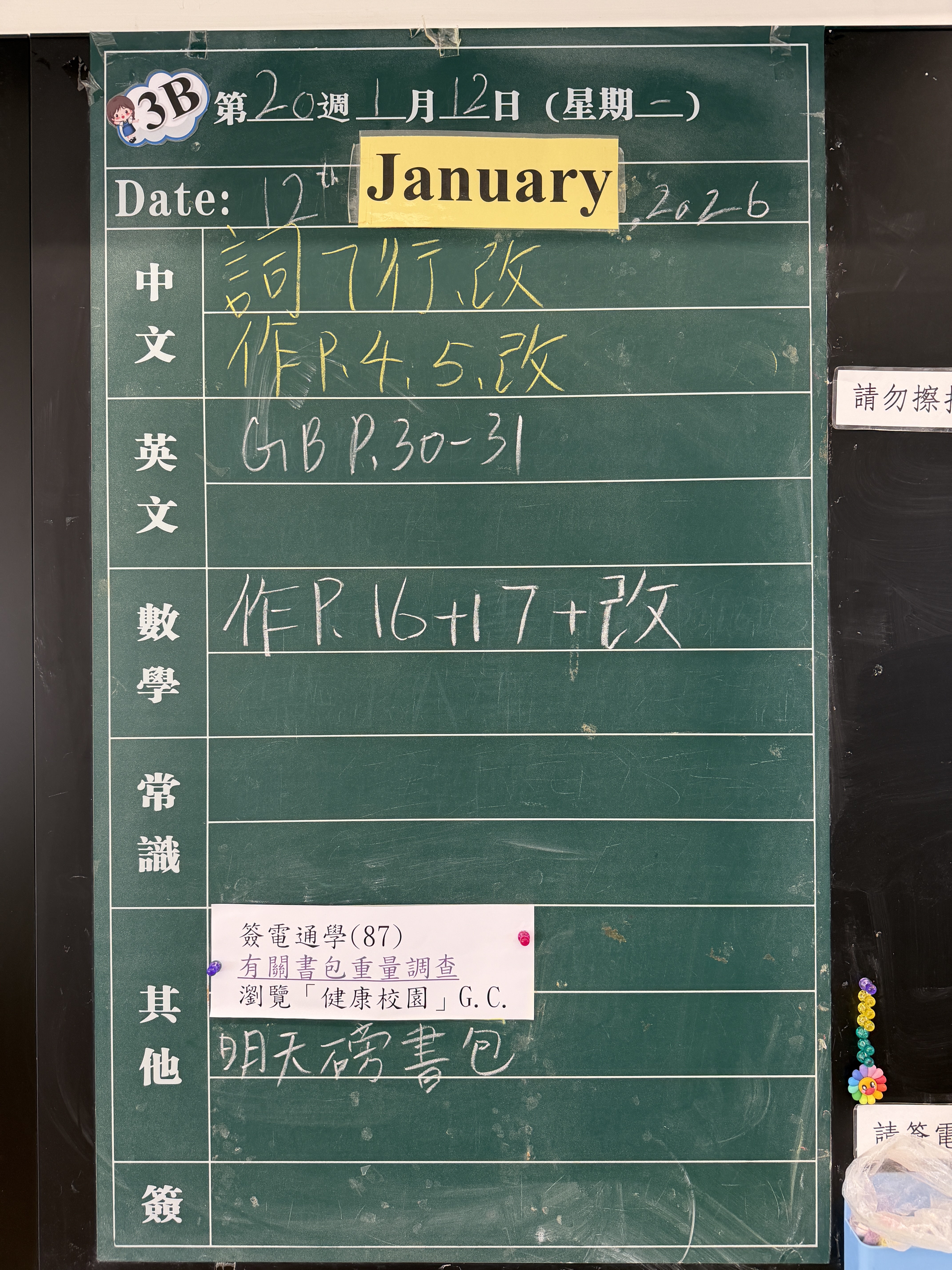 本週家課