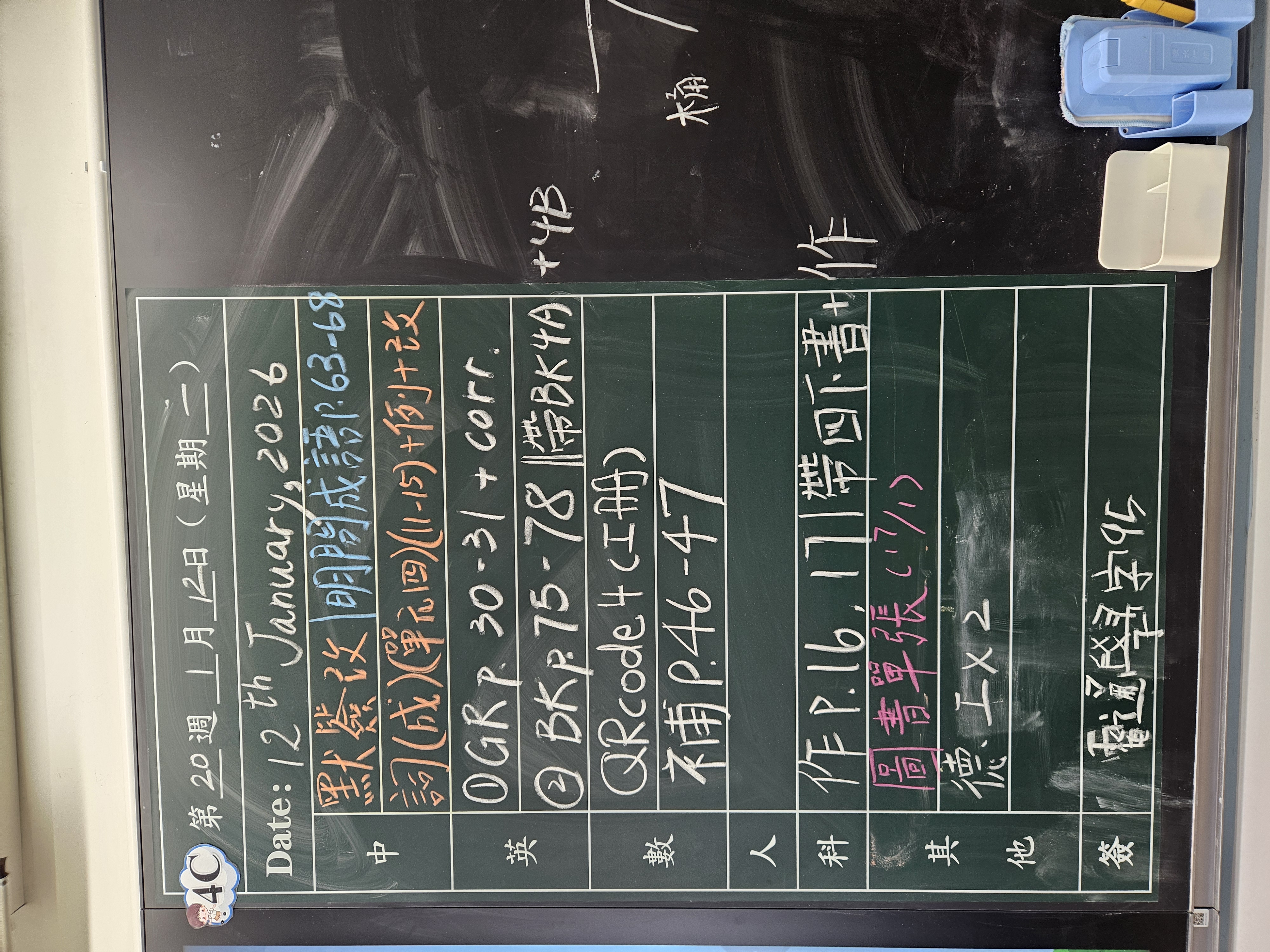 | 4C | 星期一 | 星期二 | 星期三 | 星期四 | 星期五 |