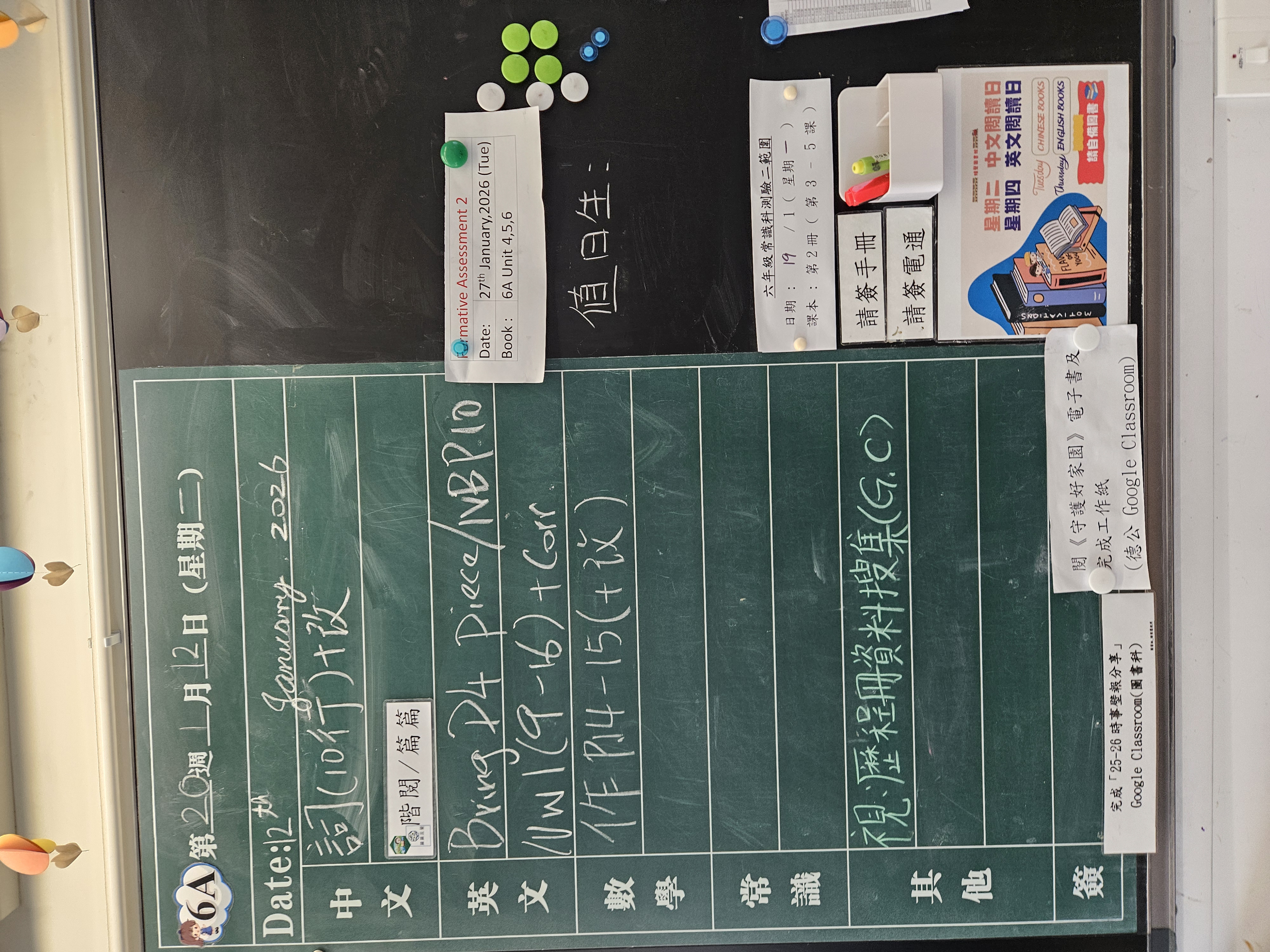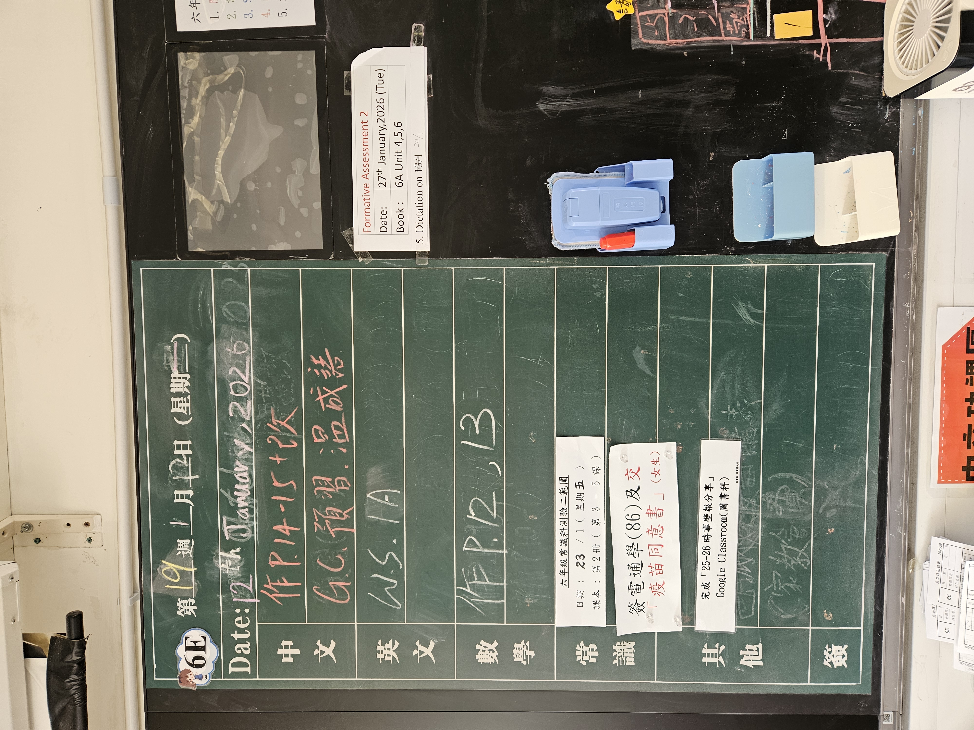 | 6A | 星期一 | 星期二 | 星期三 | 星期四 | 星期五 |