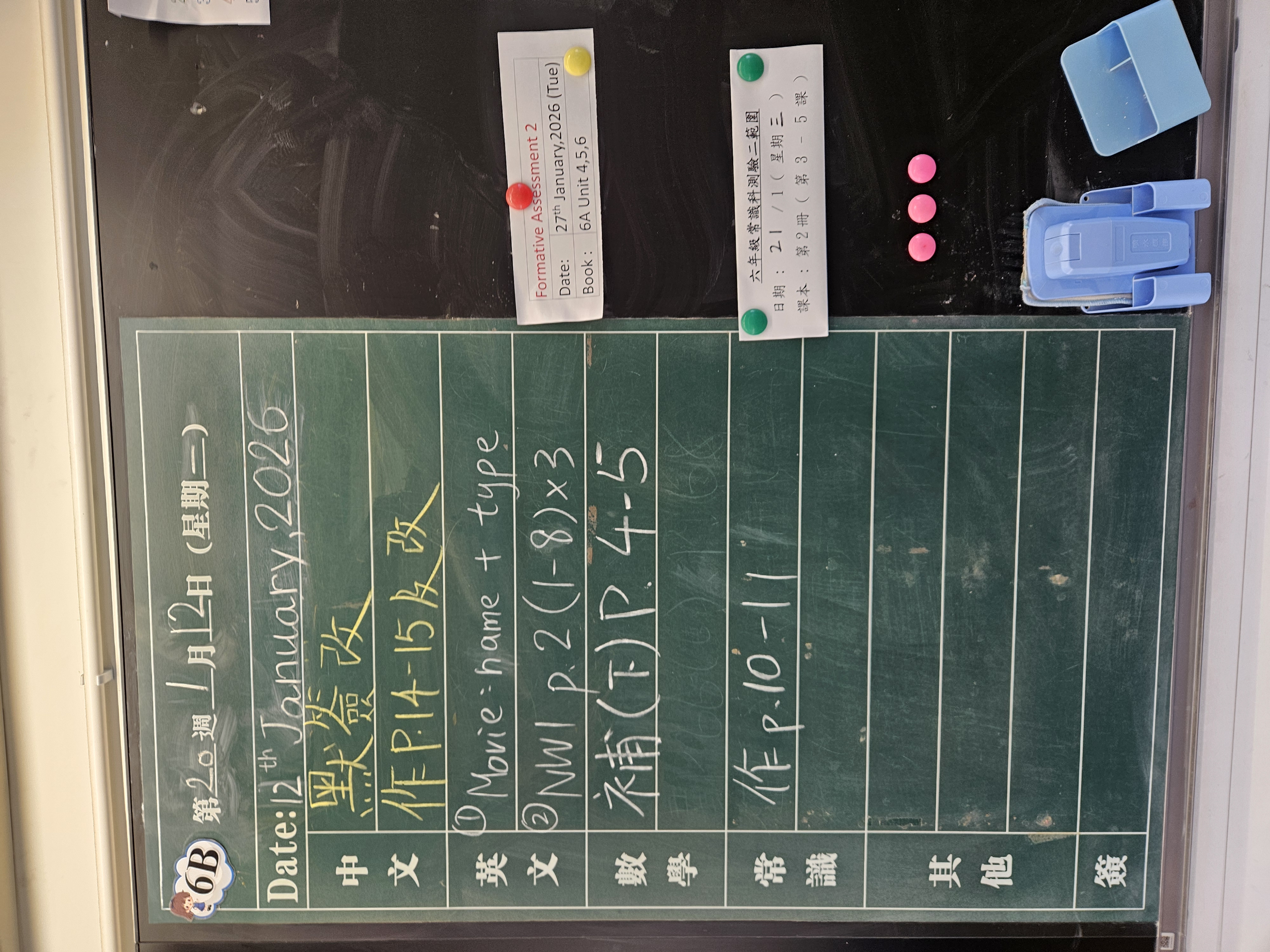 | 6B | 星期一 | 星期二 | 星期三 | 星期四 | 星期五 |