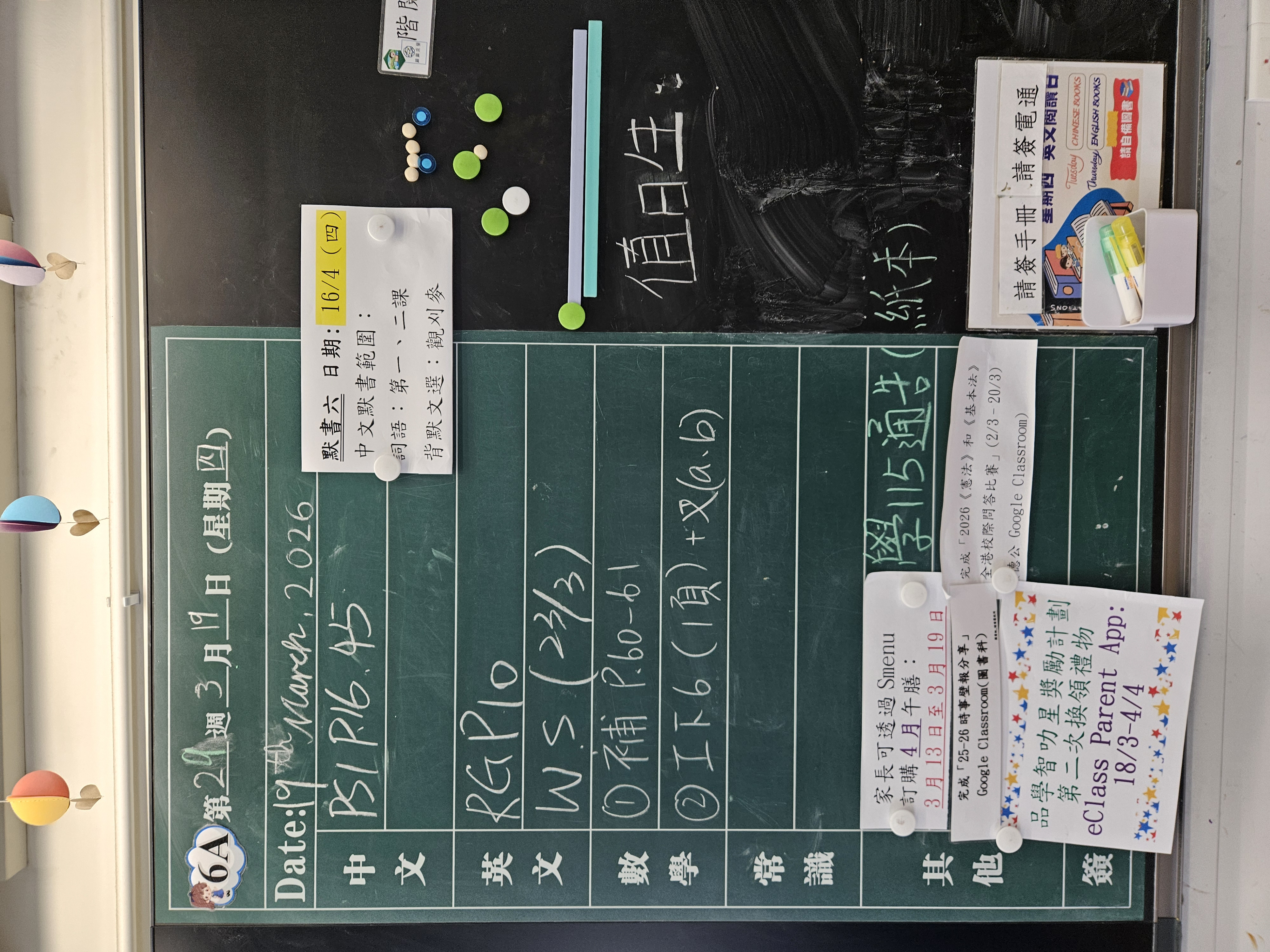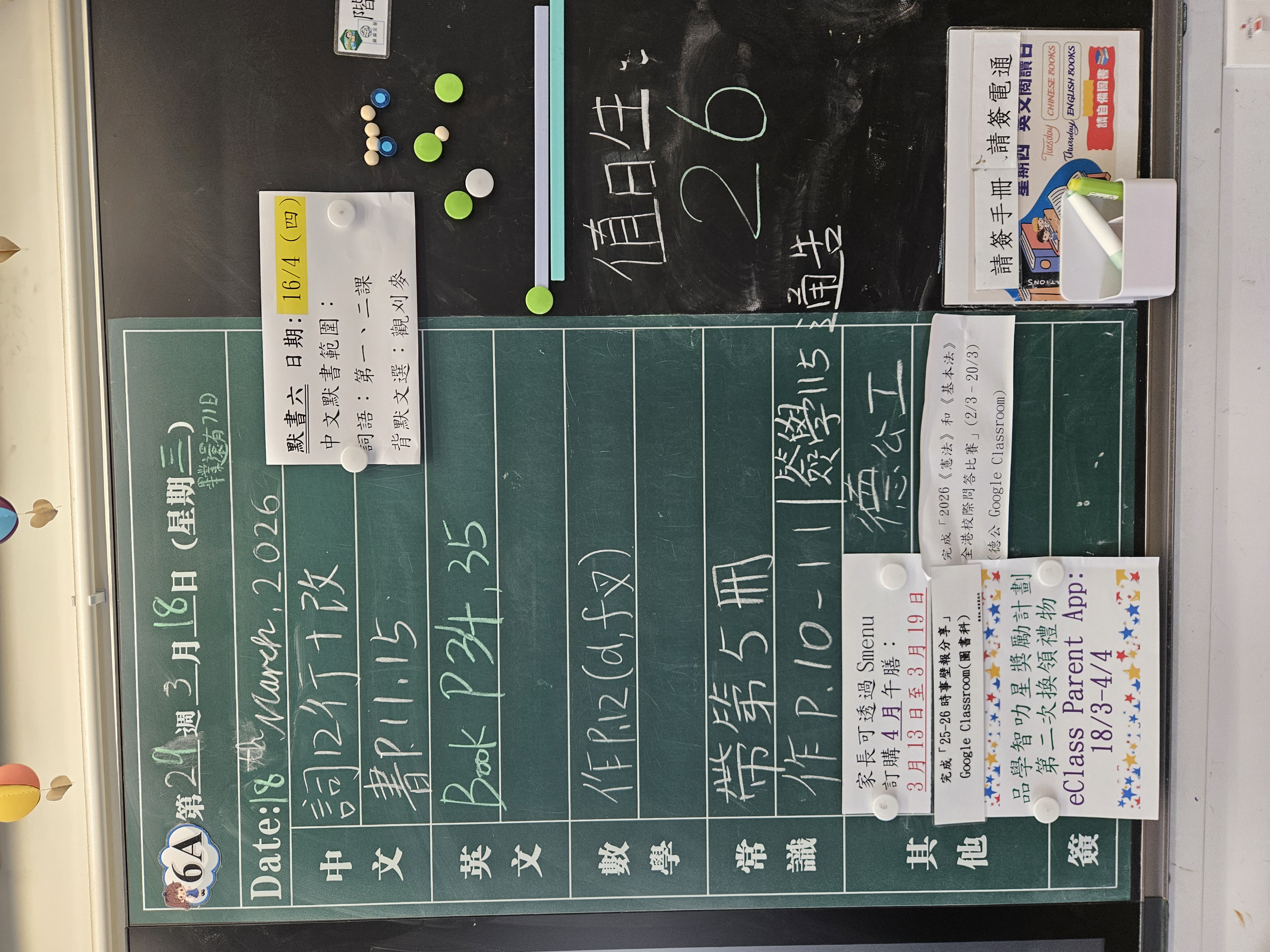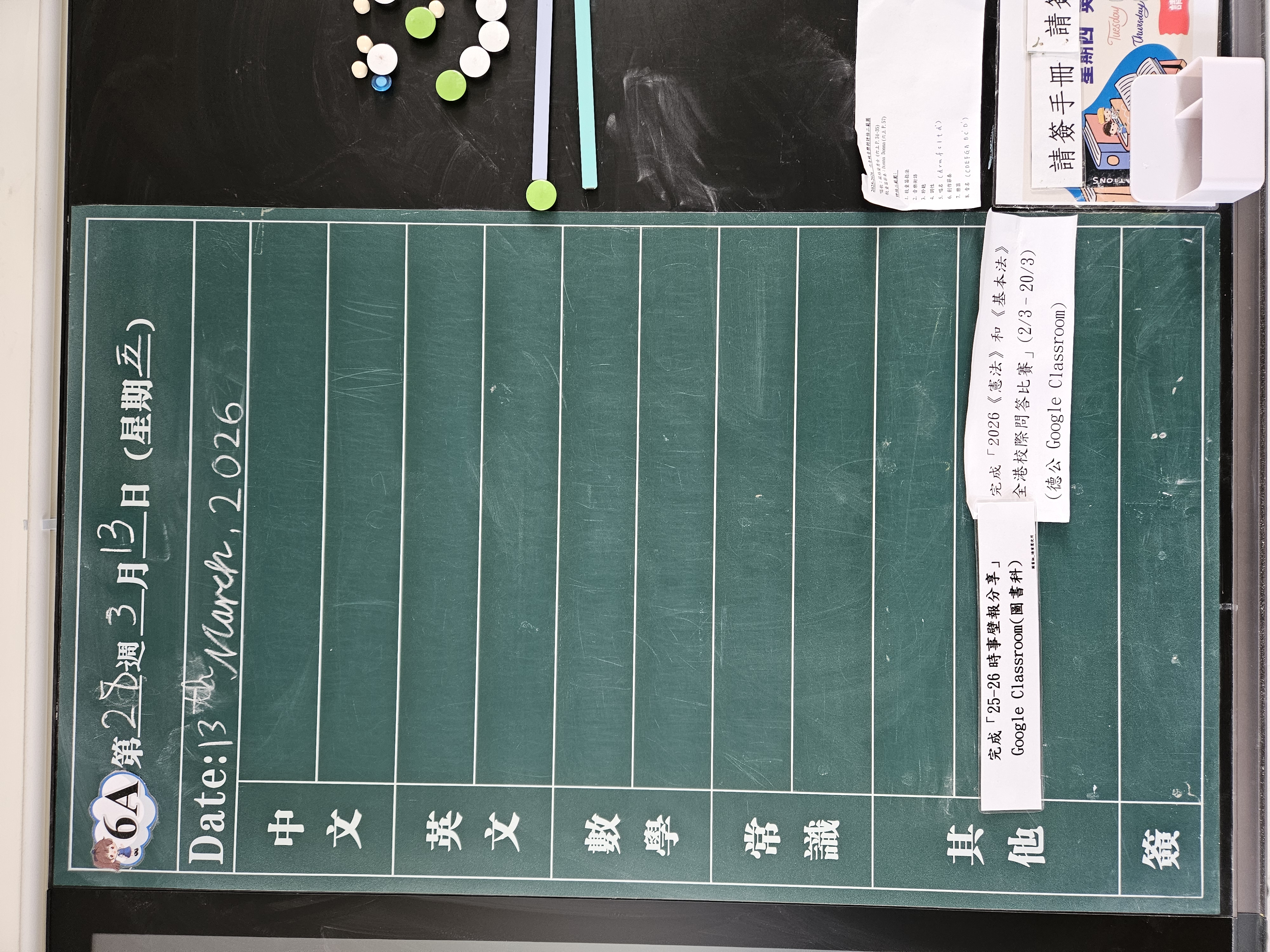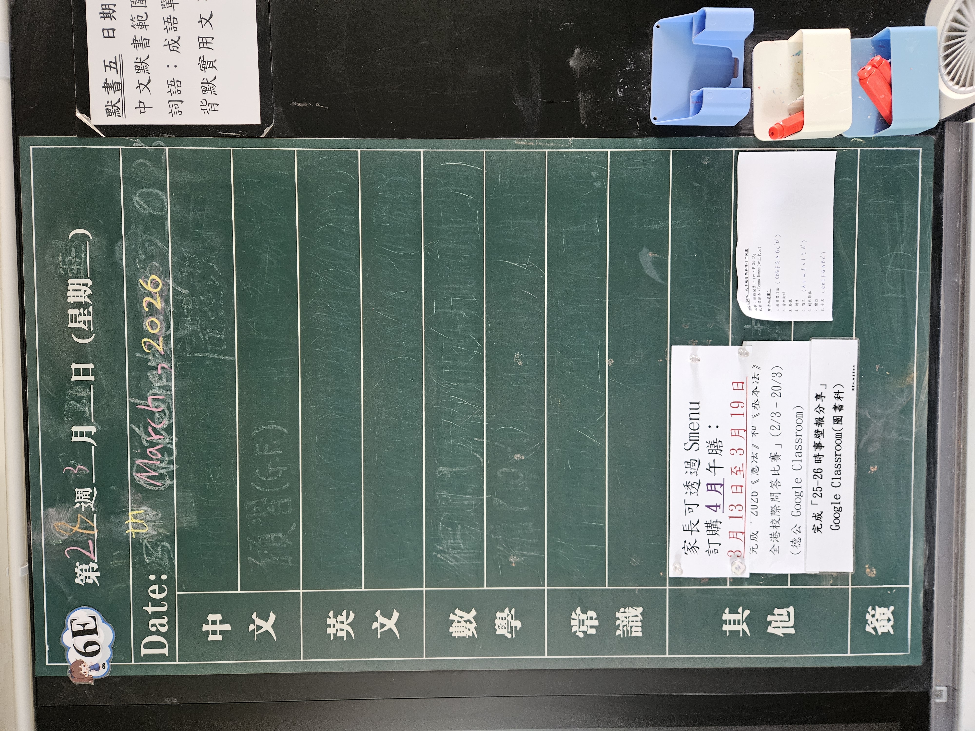 | 6A | 星期一 | 星期二 | 星期三 | 星期四 | 星期五 |