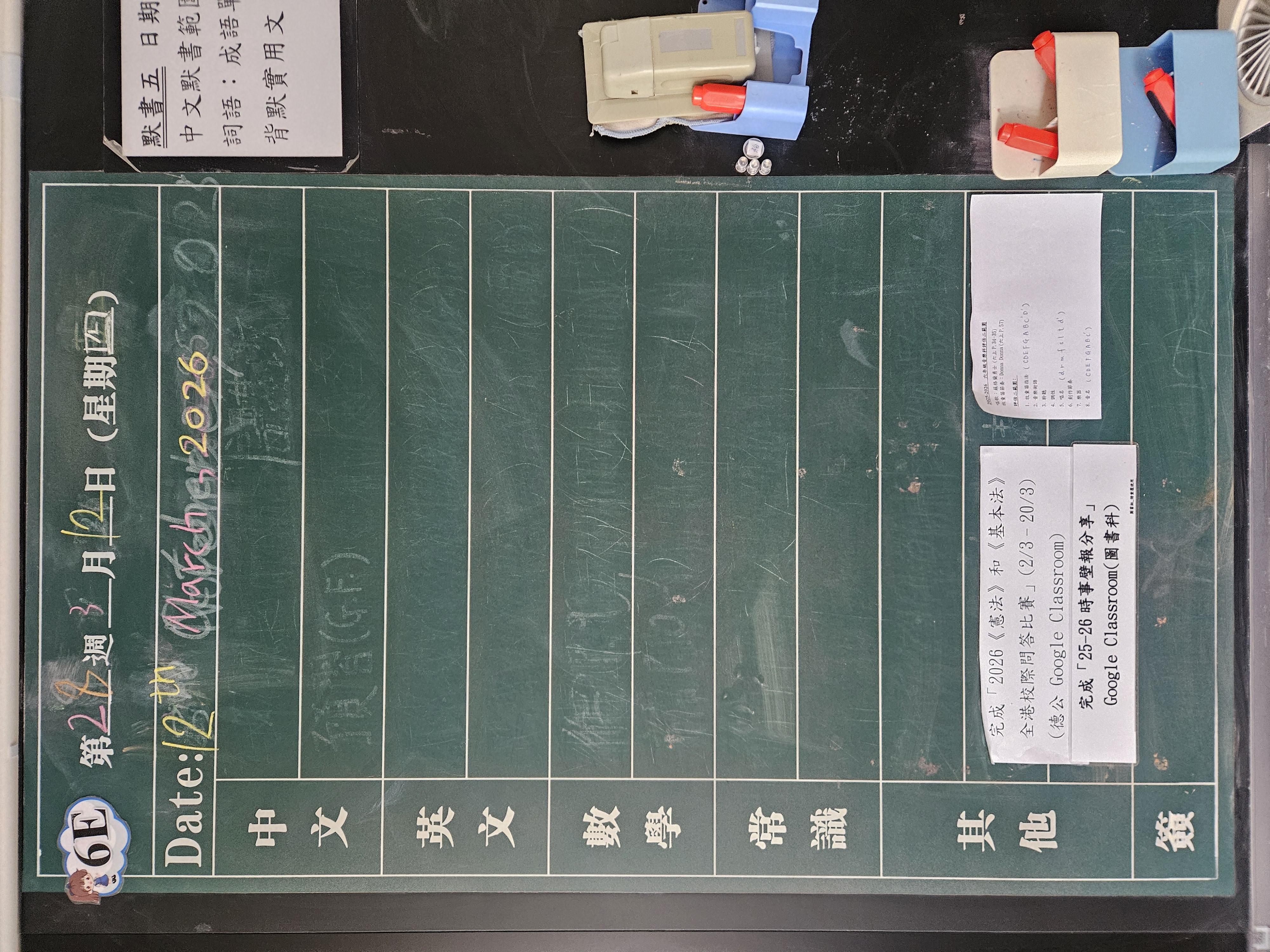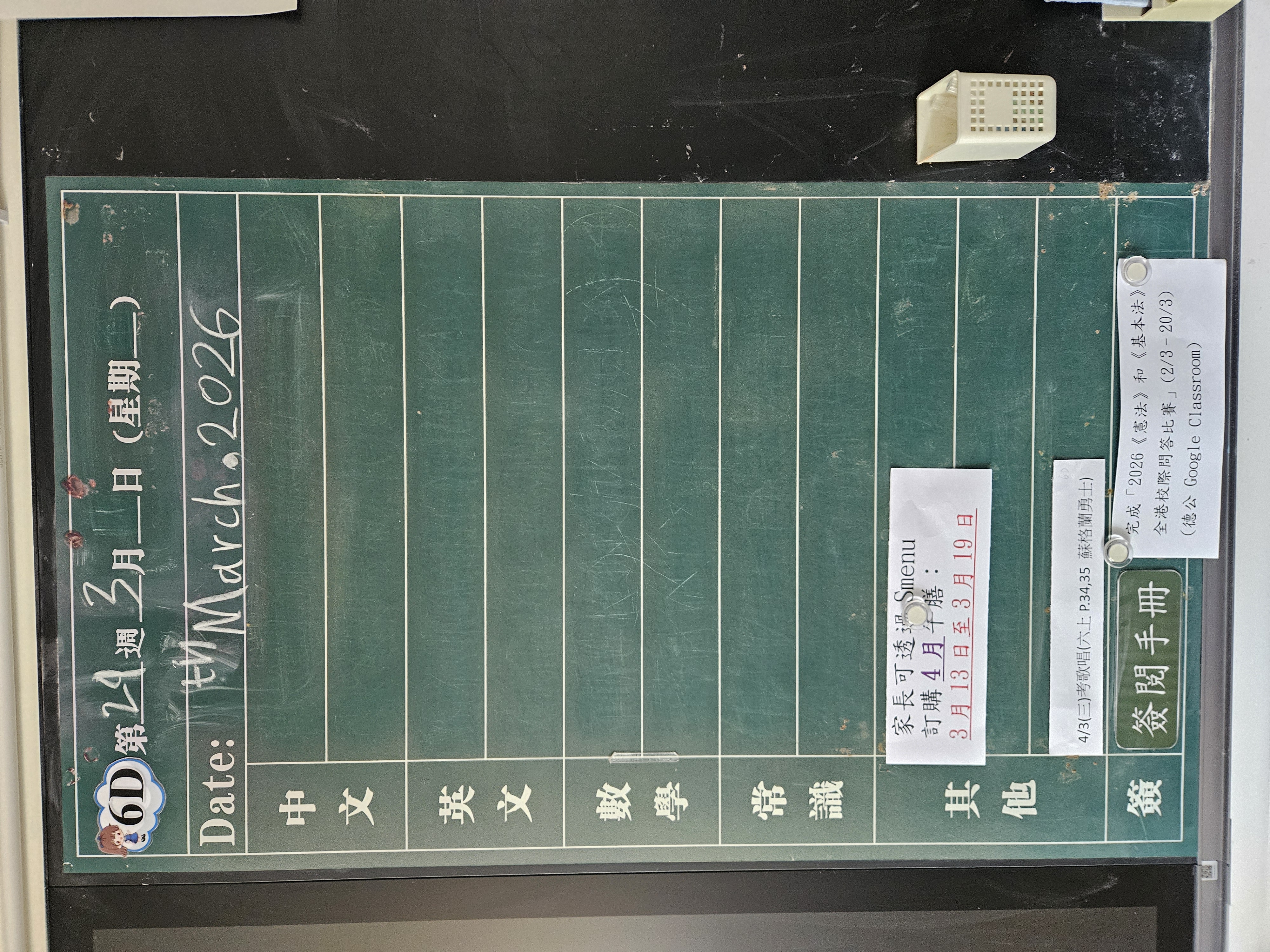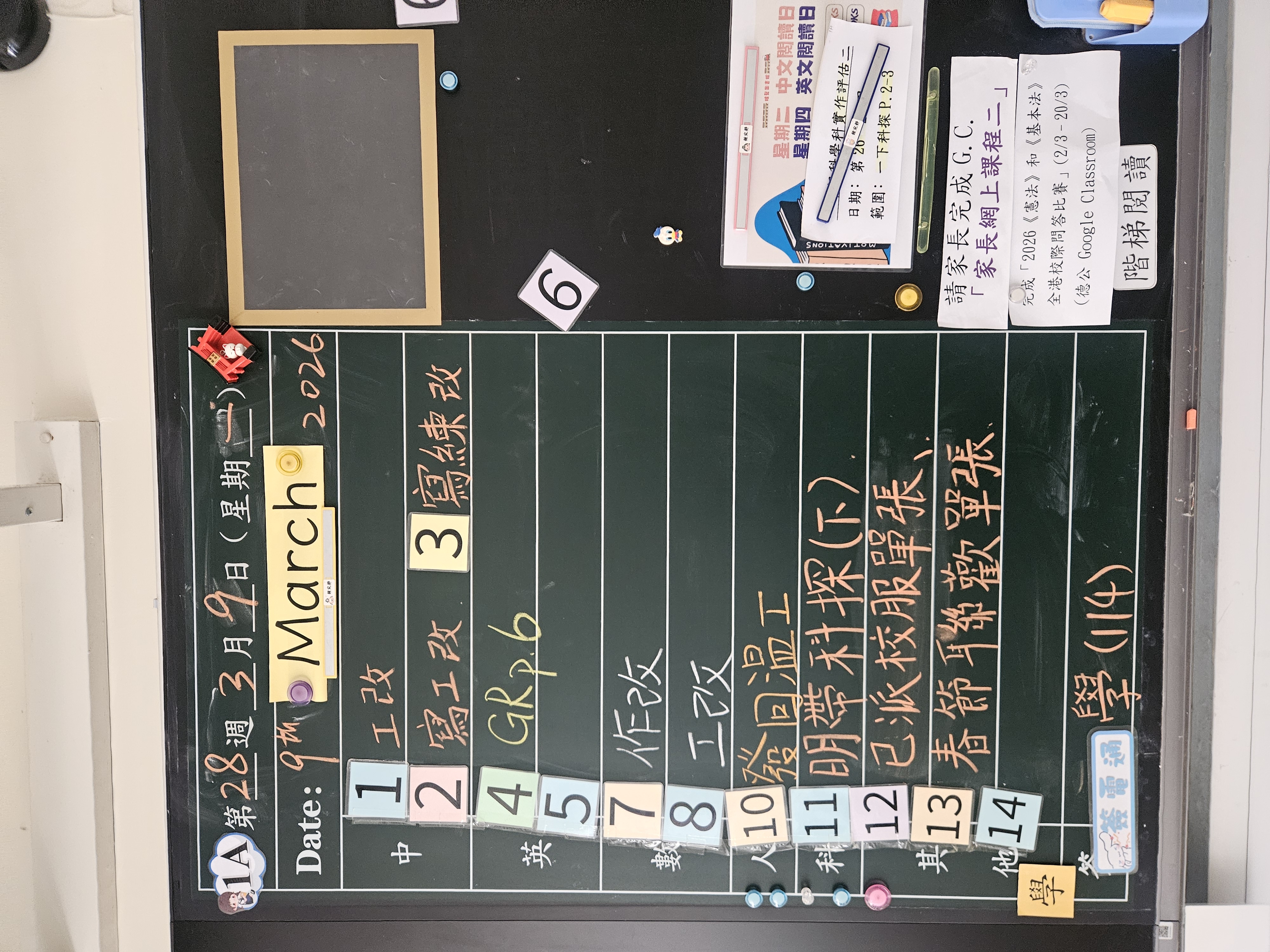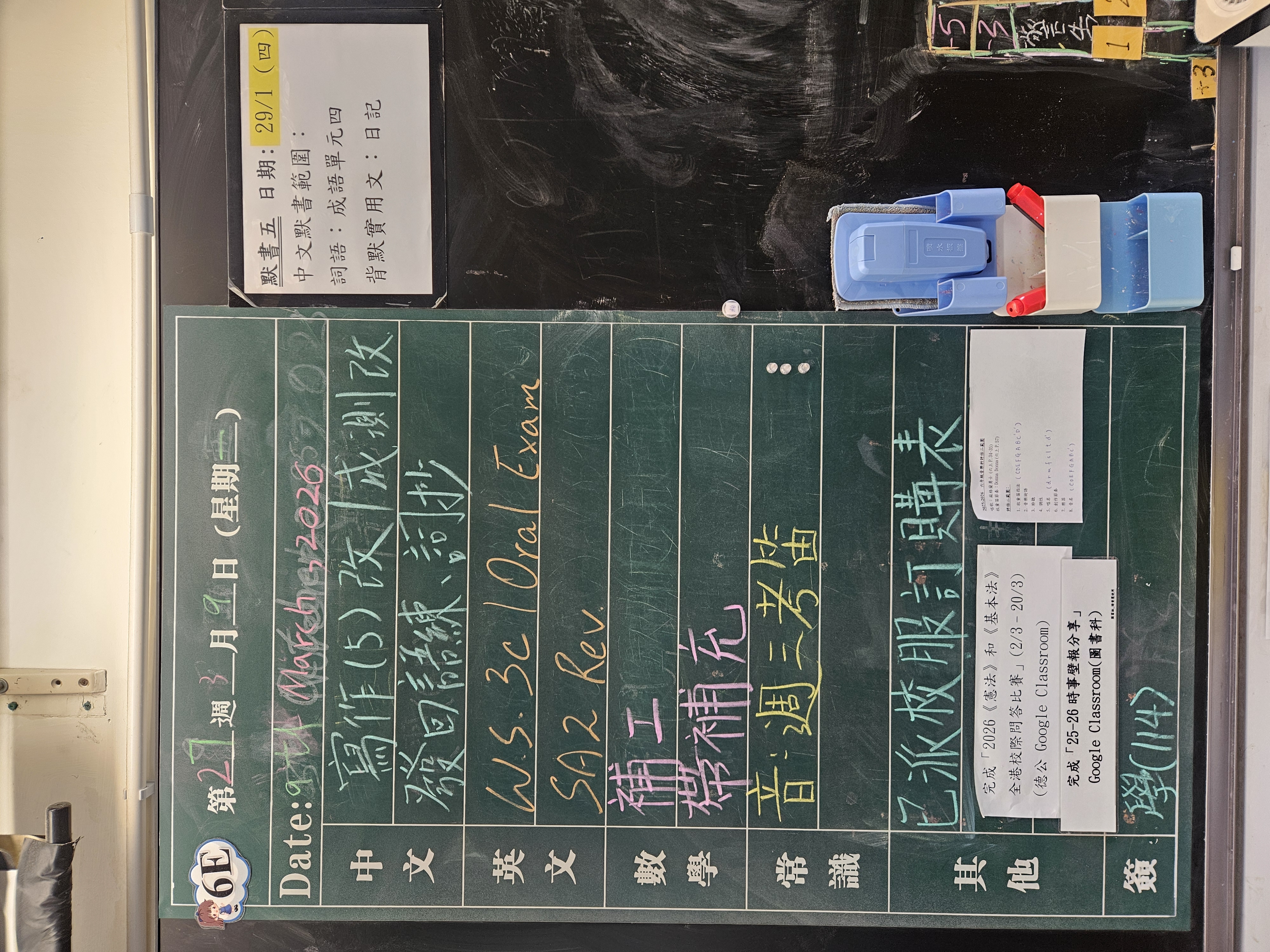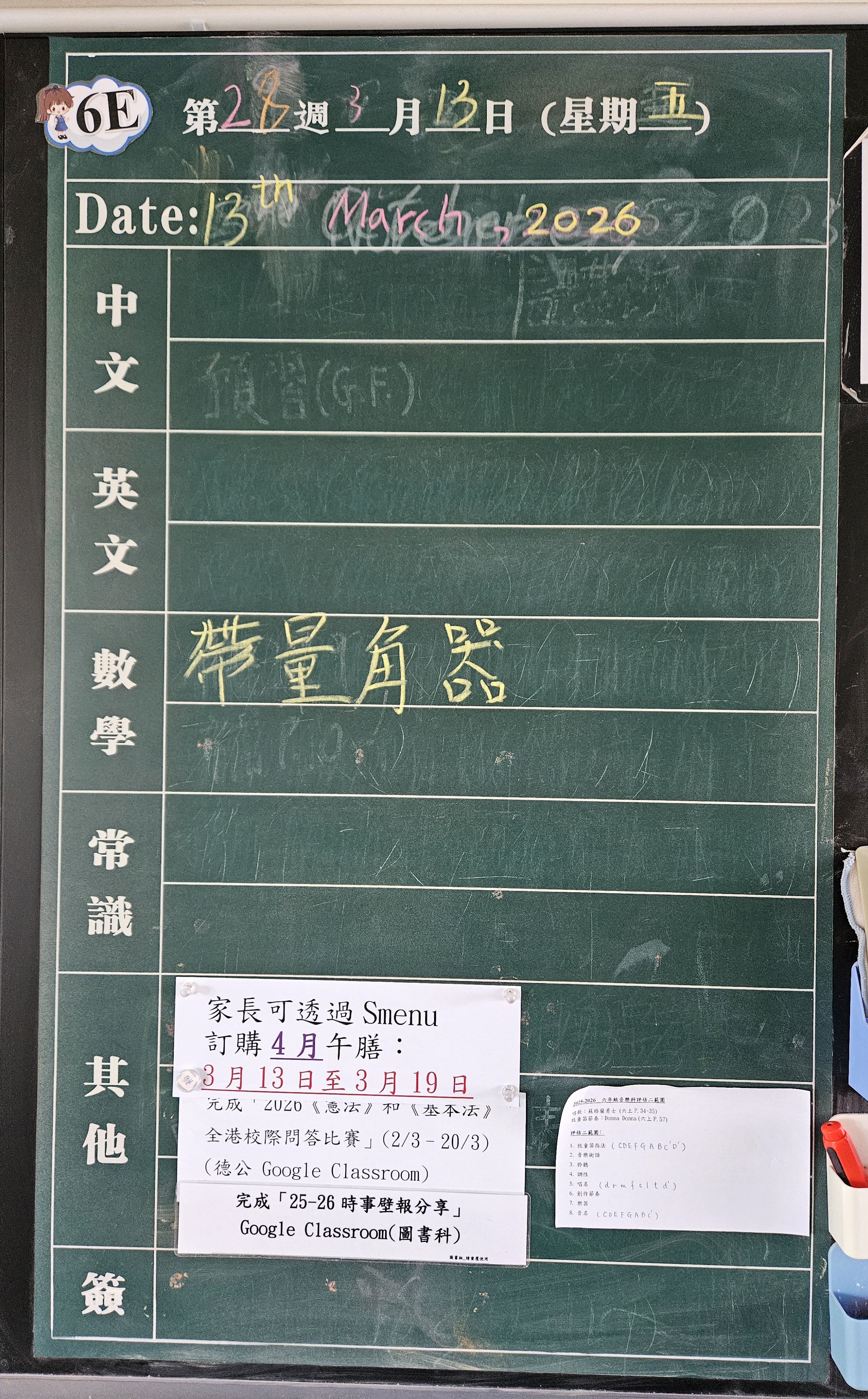 | 6A | 星期一 | 星期二 | 星期三 | 星期四 | 星期五 |