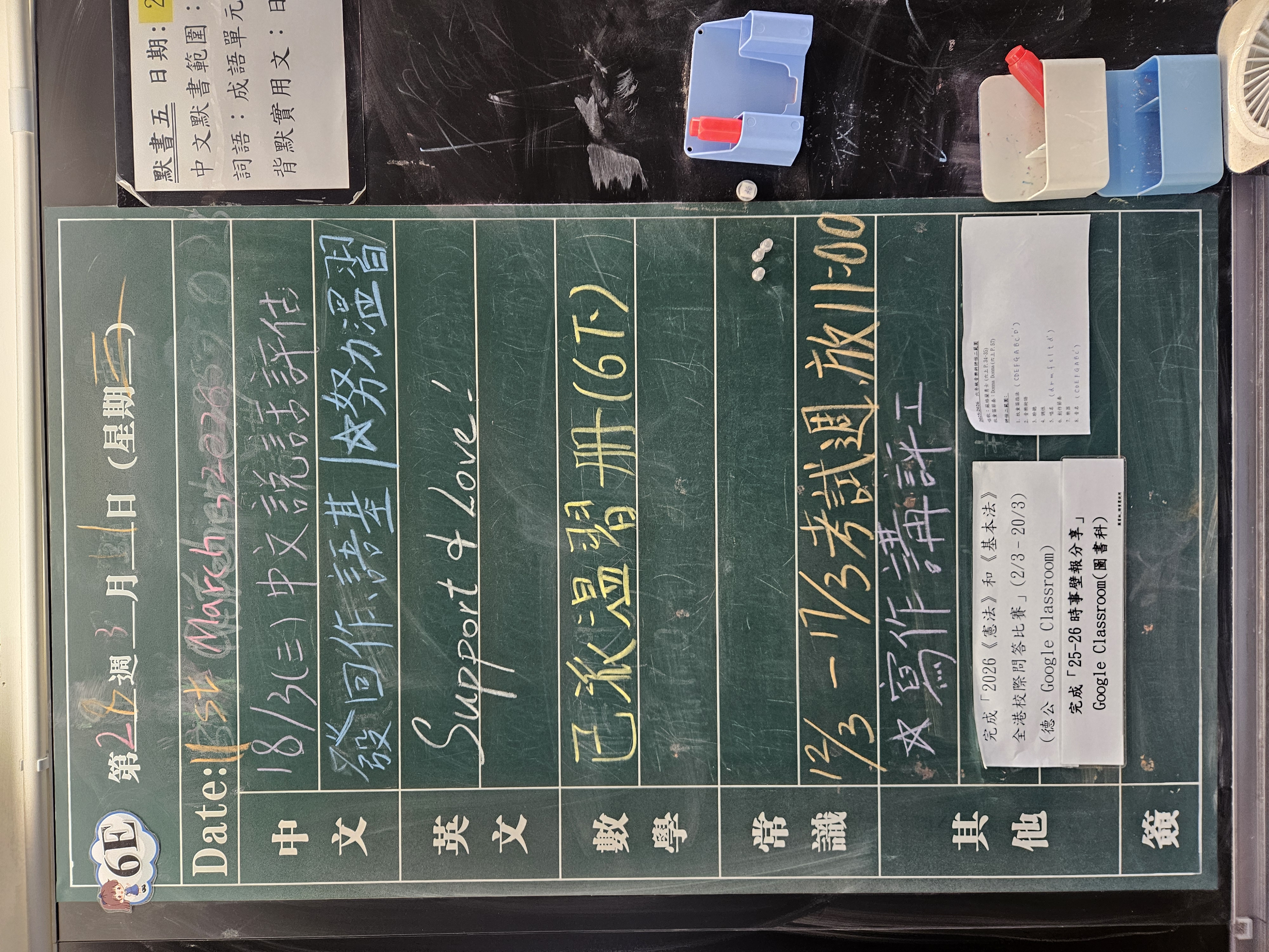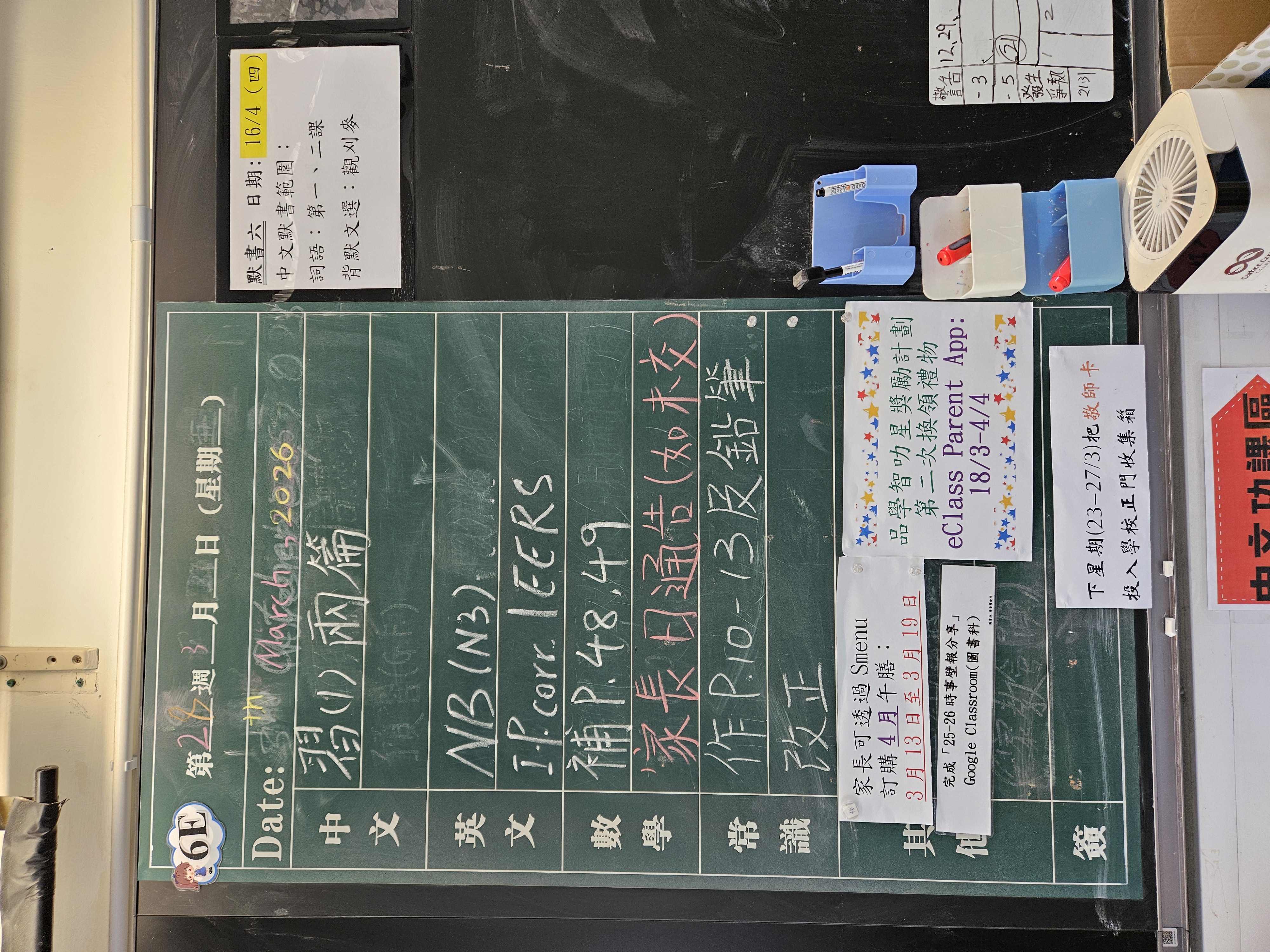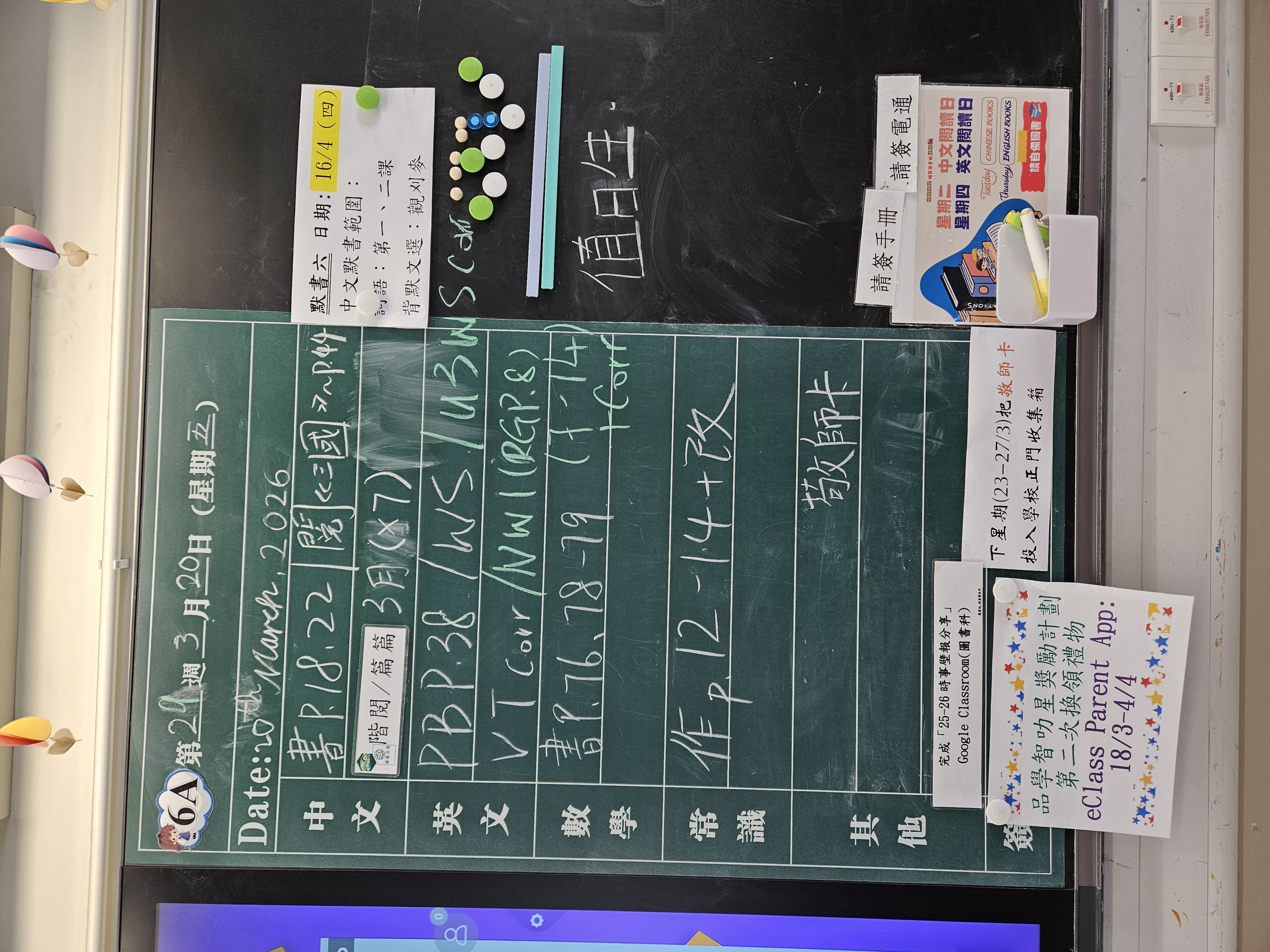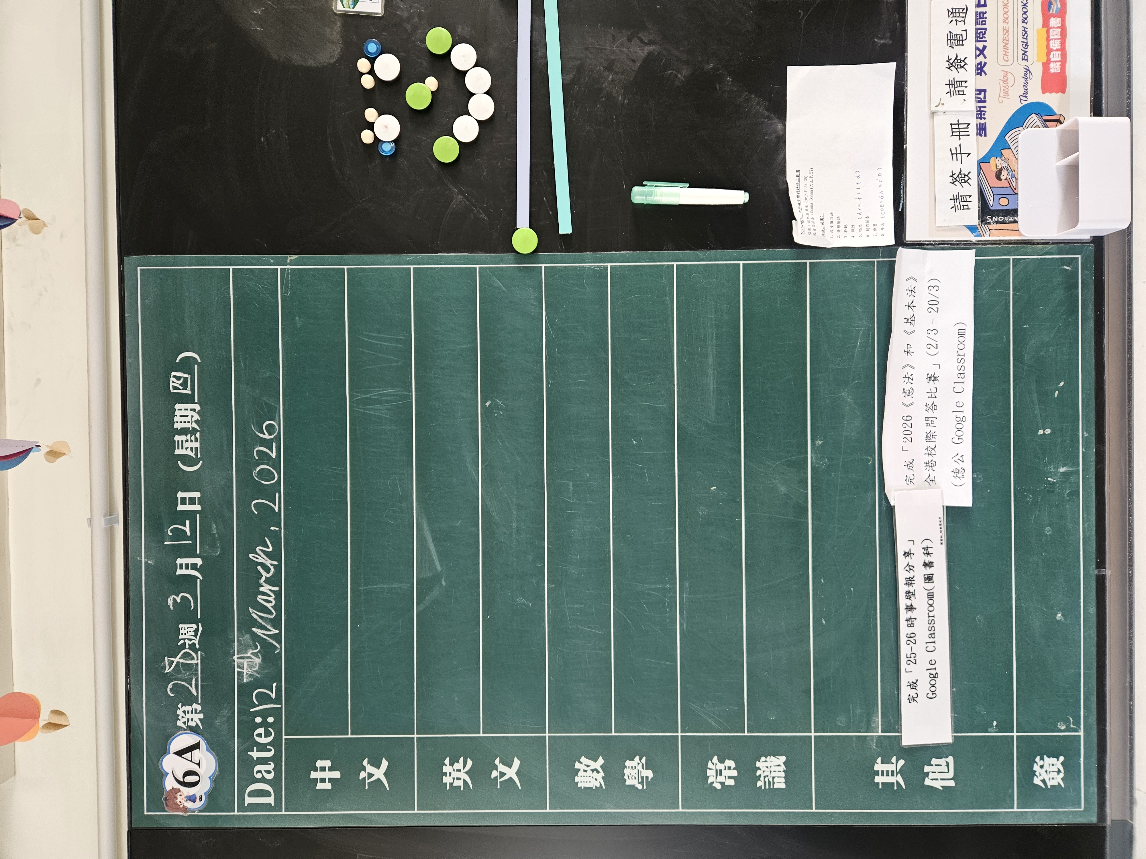| 6A | 星期一 | 星期二 | 星期三 | 星期四 | 星期五 |