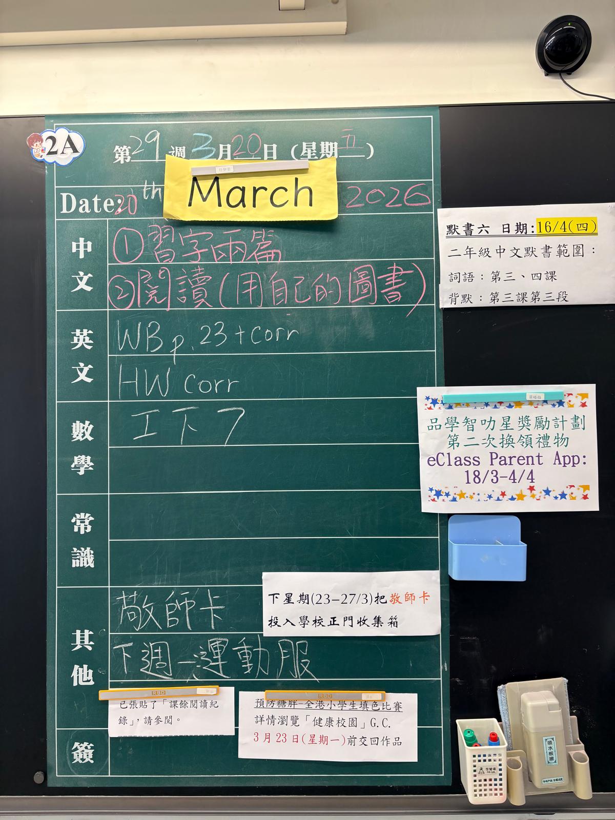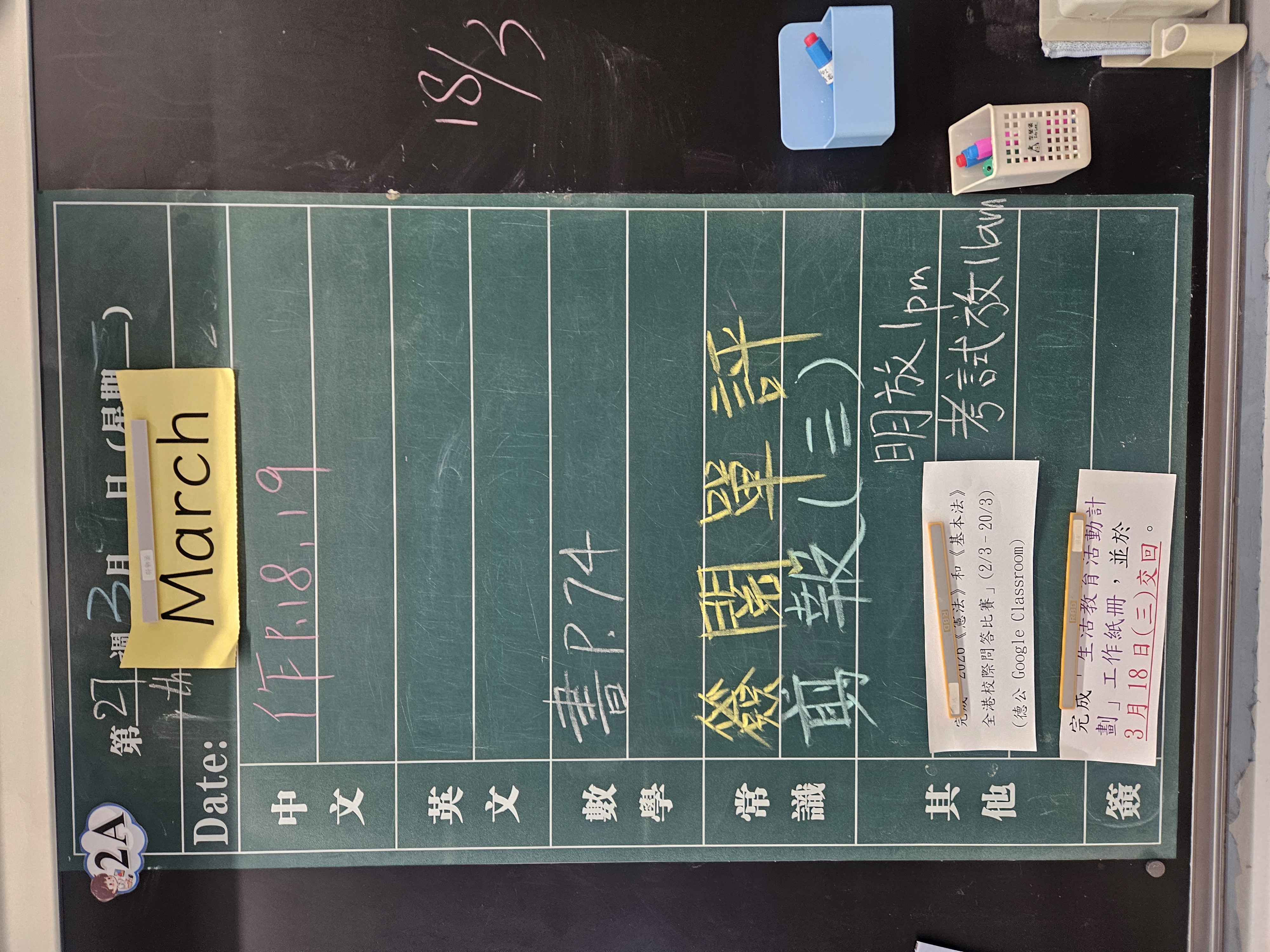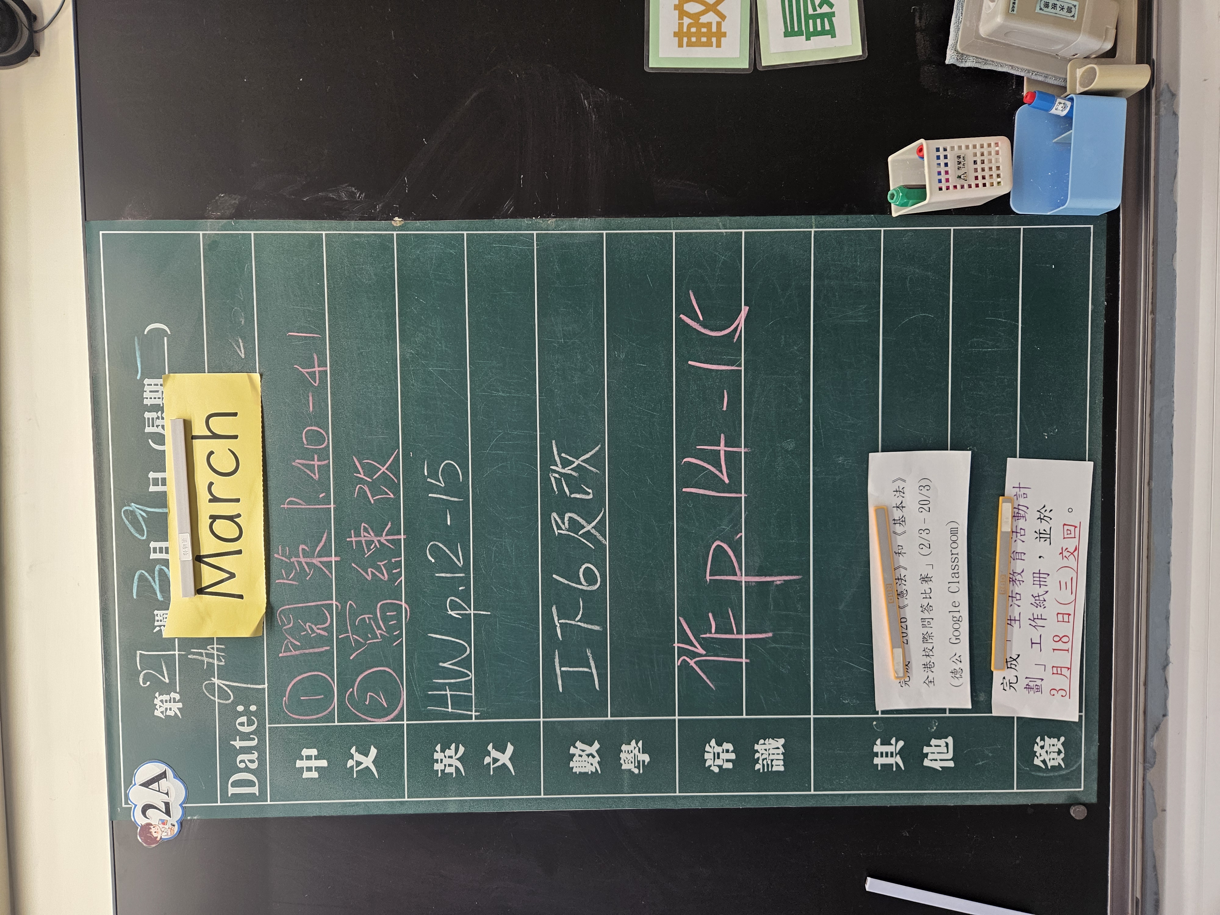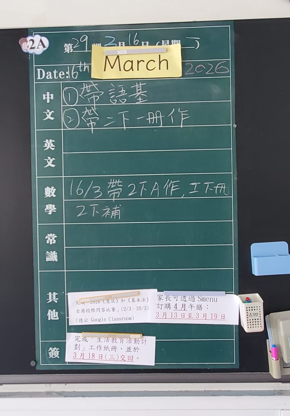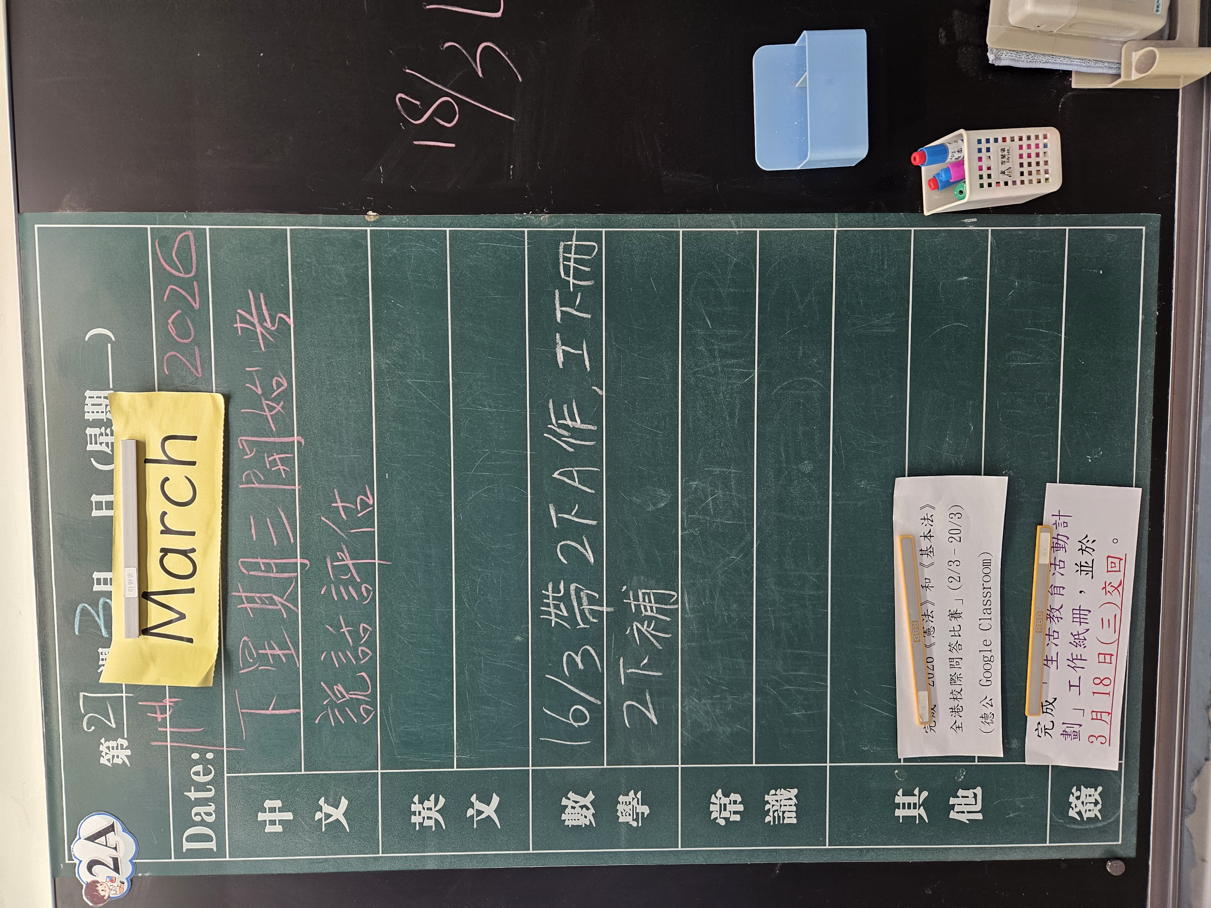 | 2A | 星期一 | 星期二 | 星期三 | 星期四 | 星期五 |