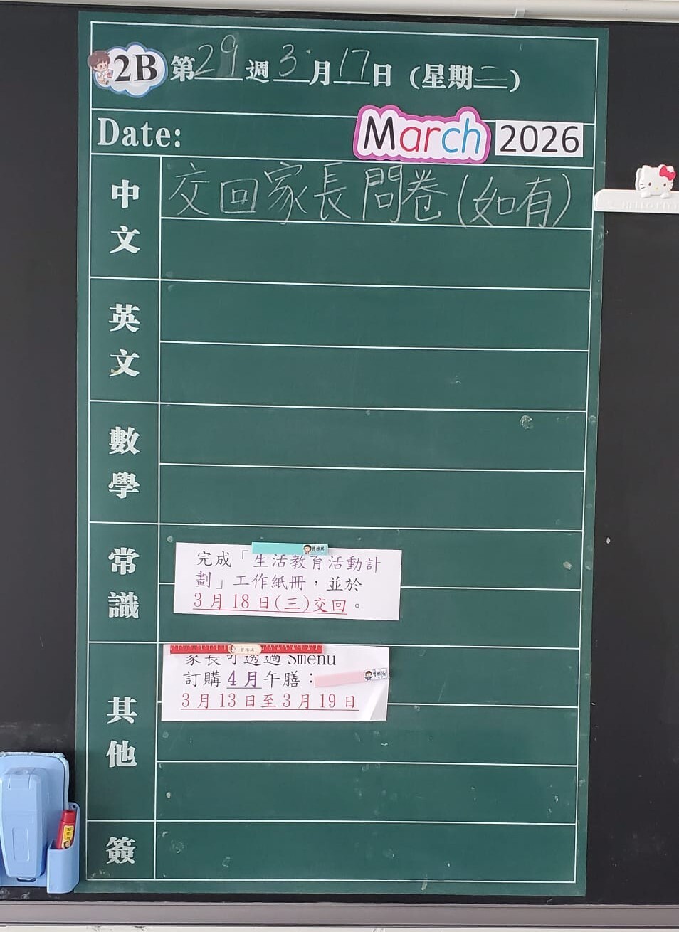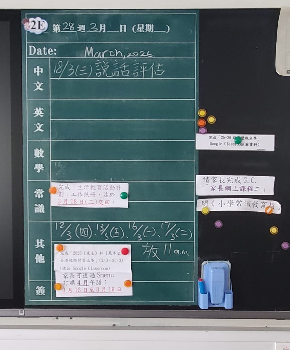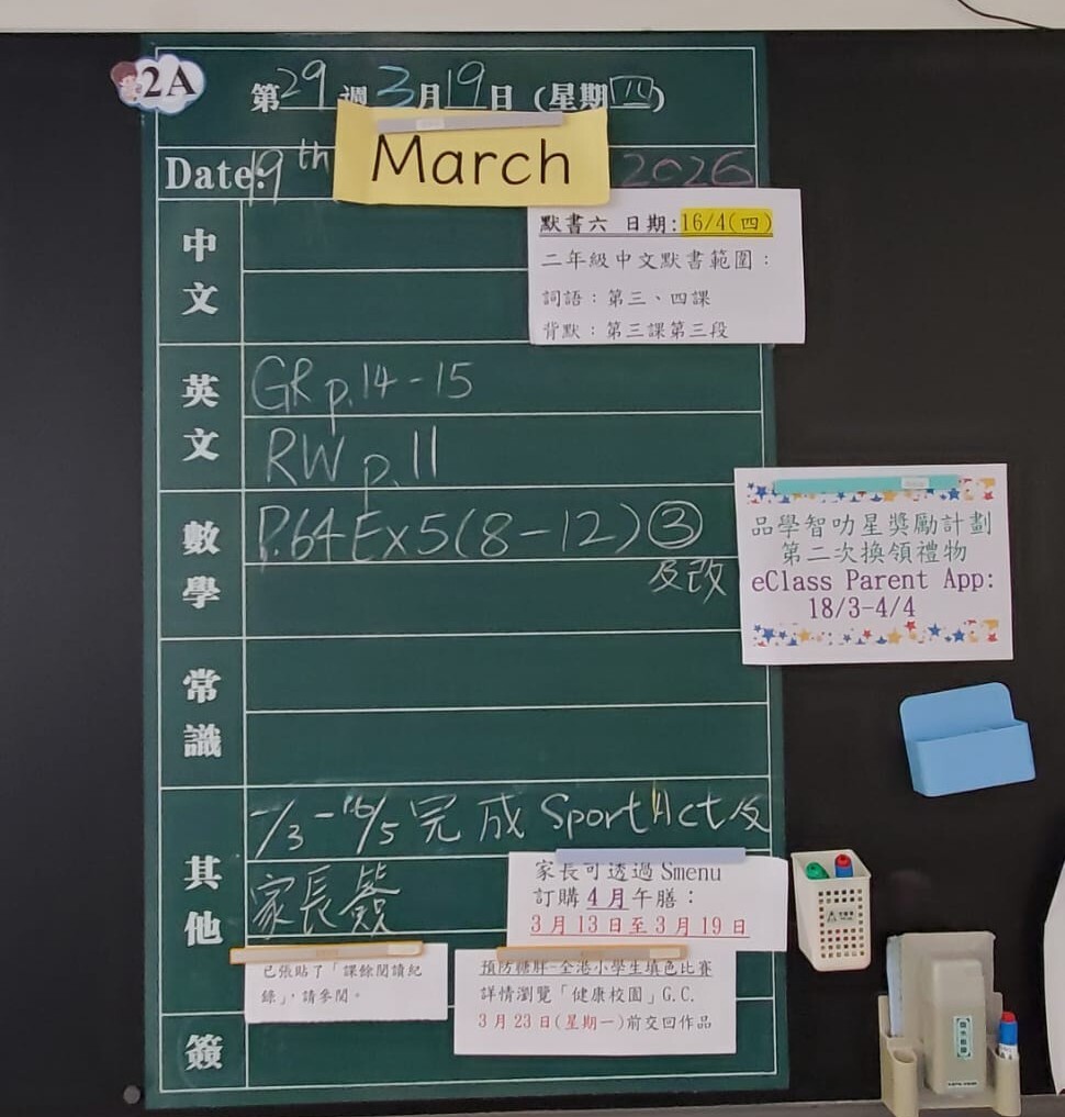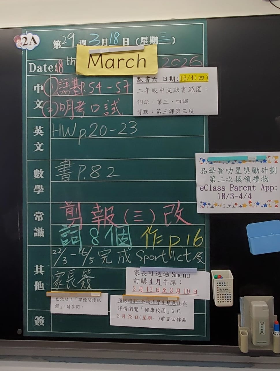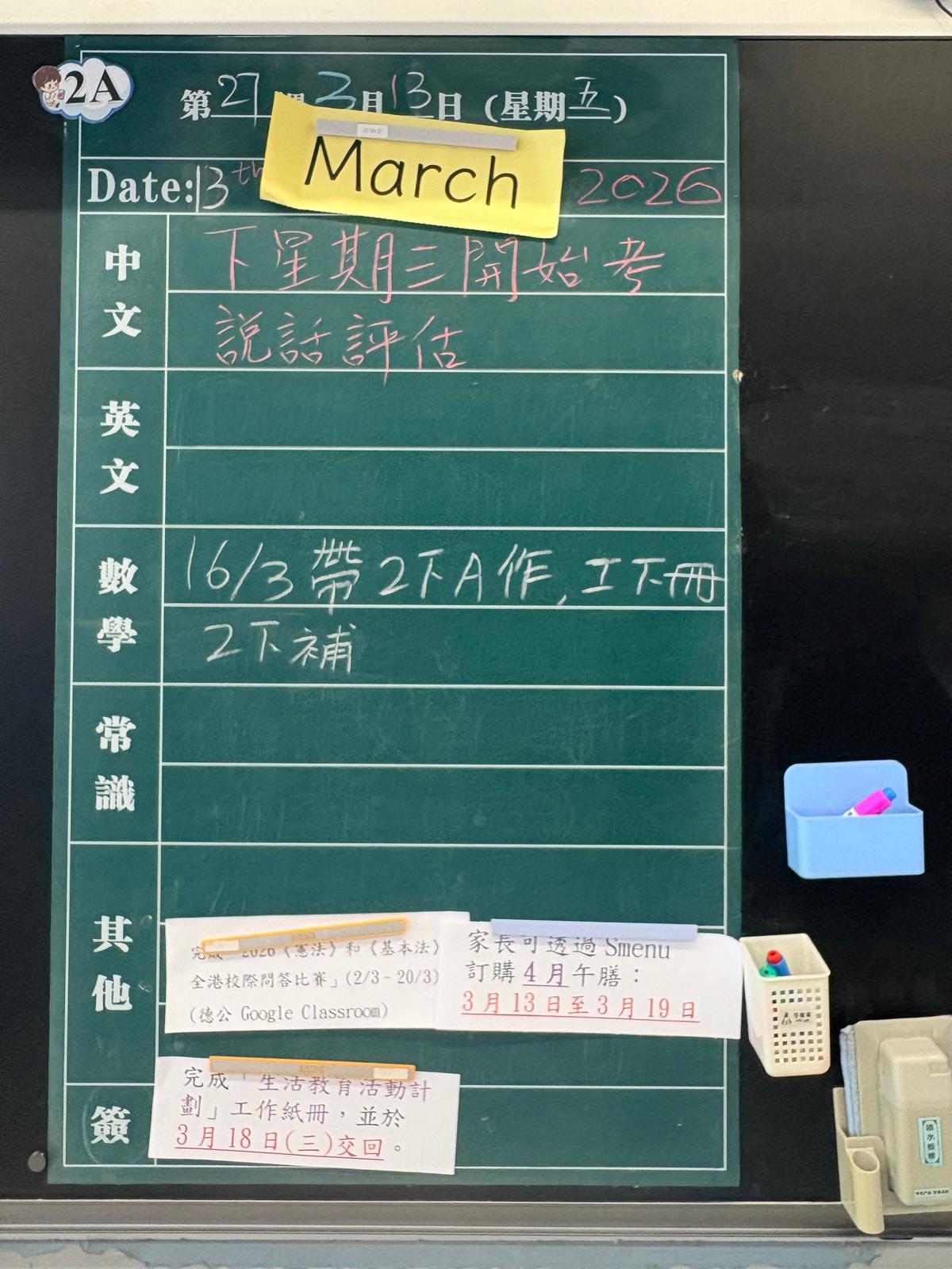 | 2A | 星期一 | 星期二 | 星期三 | 星期四 | 星期五 |