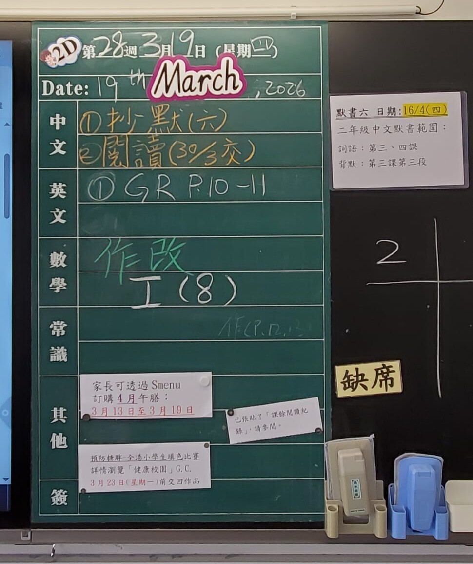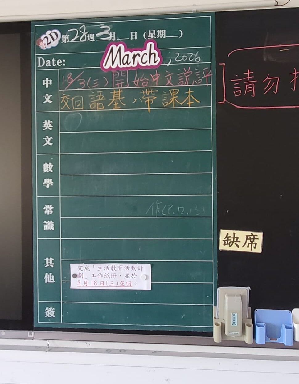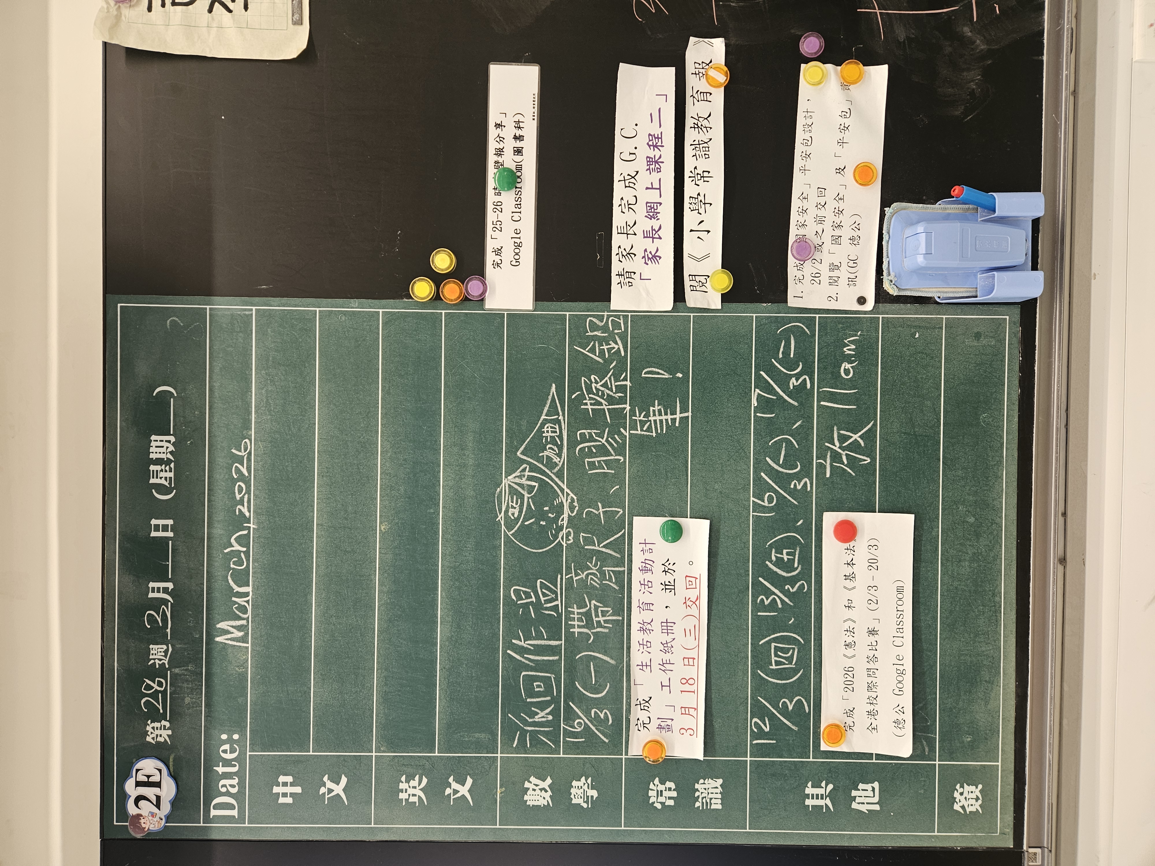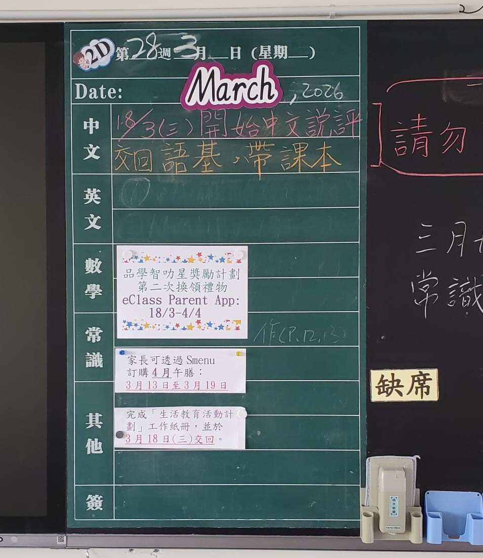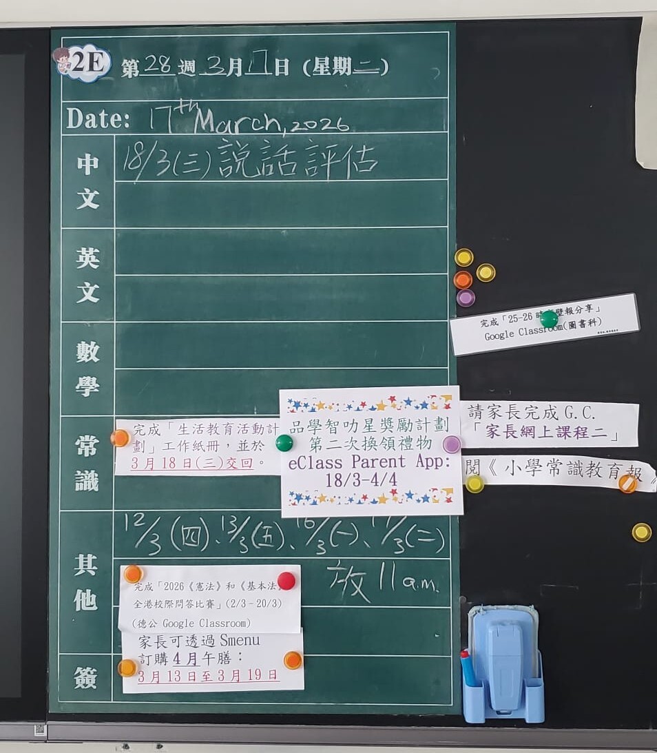 | 2A | 星期一 | 星期二 | 星期三 | 星期四 | 星期五 |