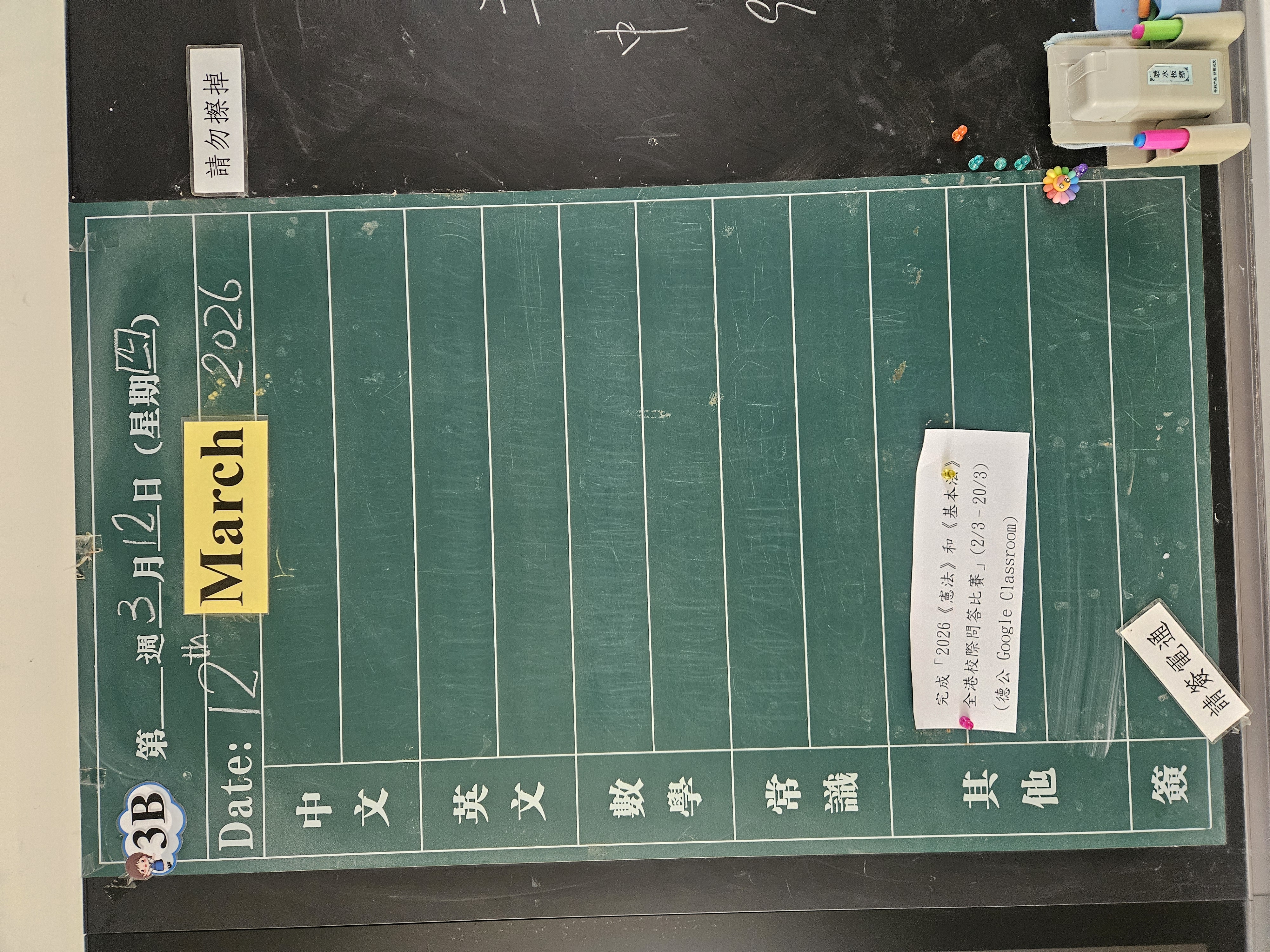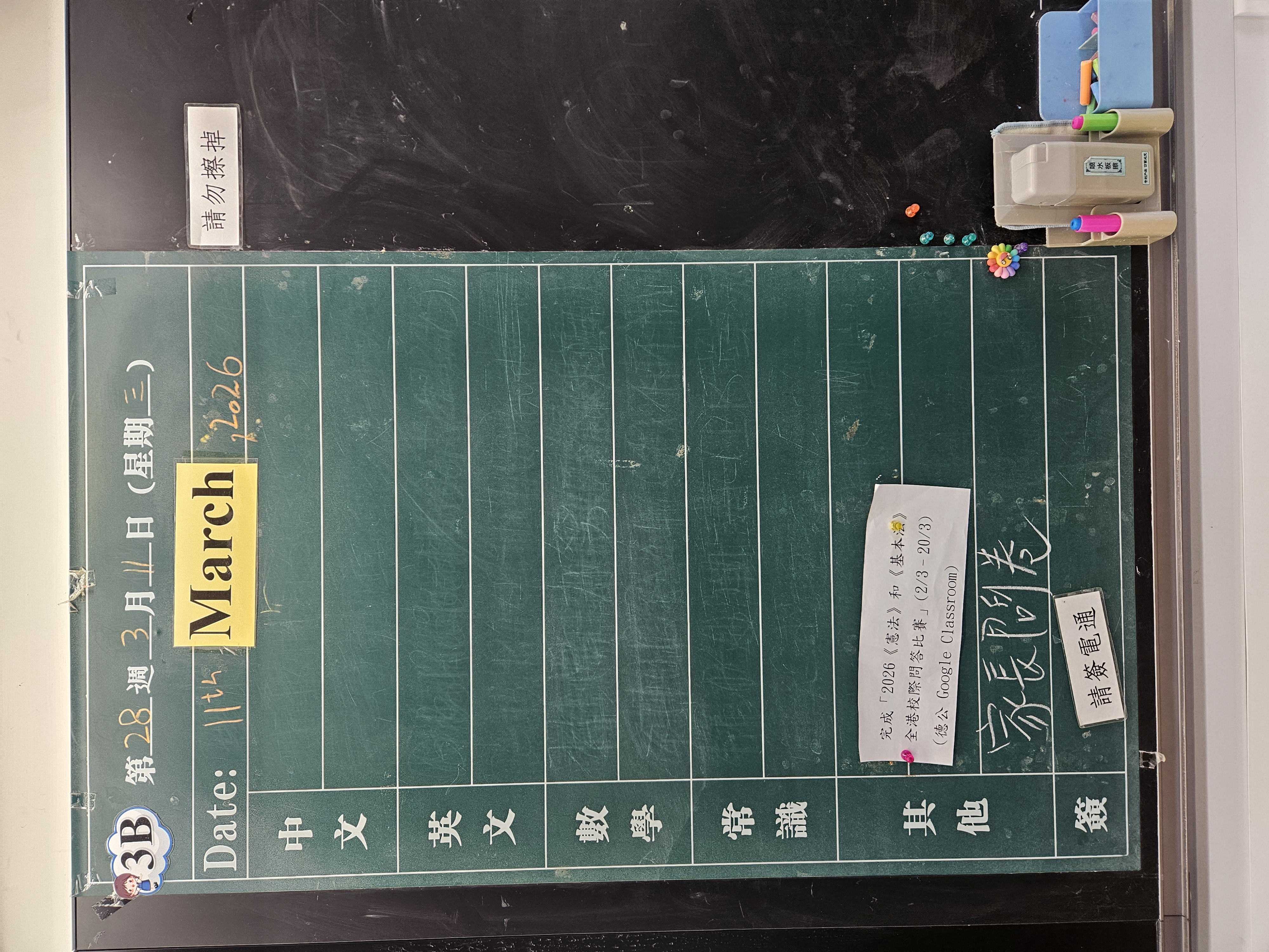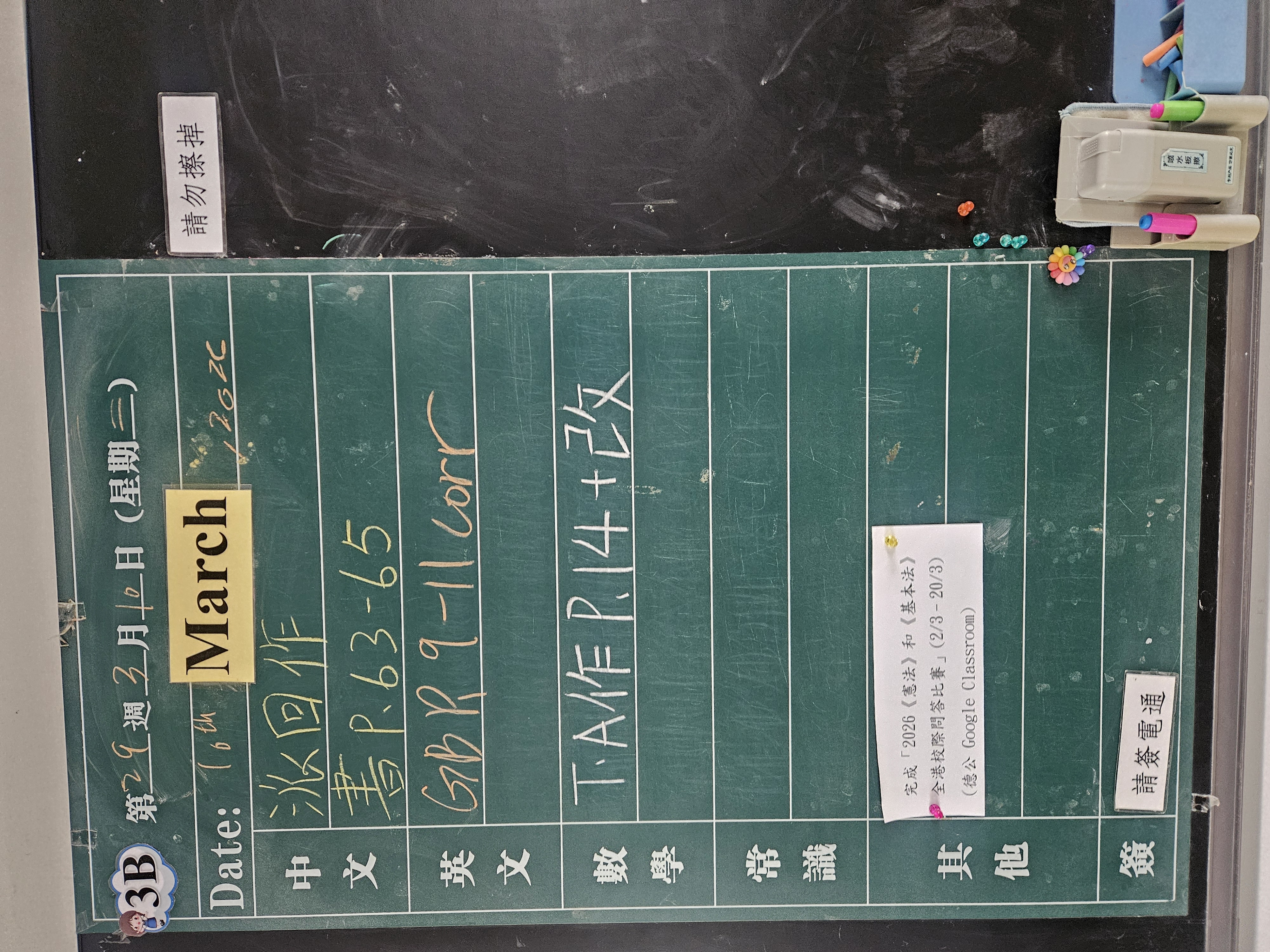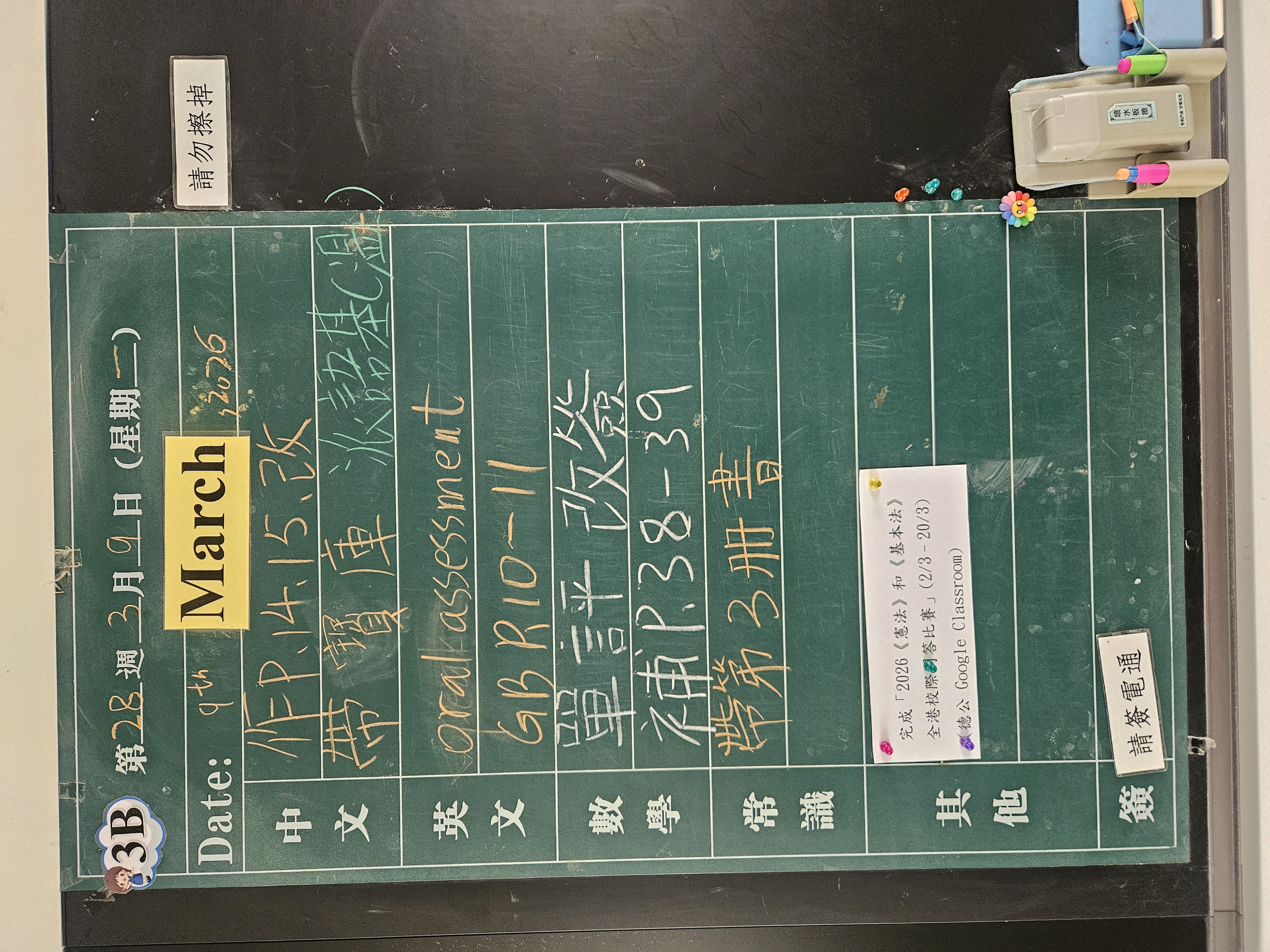 | 3B | 星期一 | 星期二 | 星期三 | 星期四 | 星期五 |