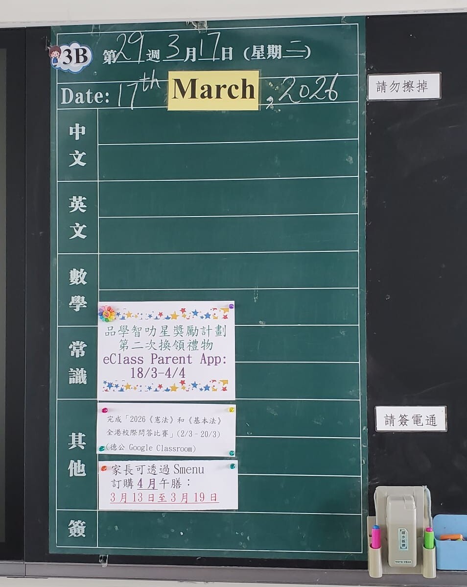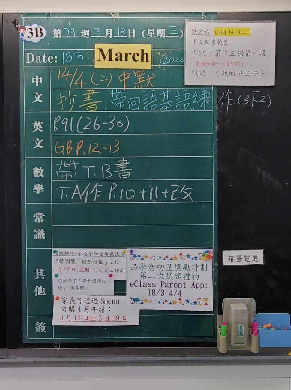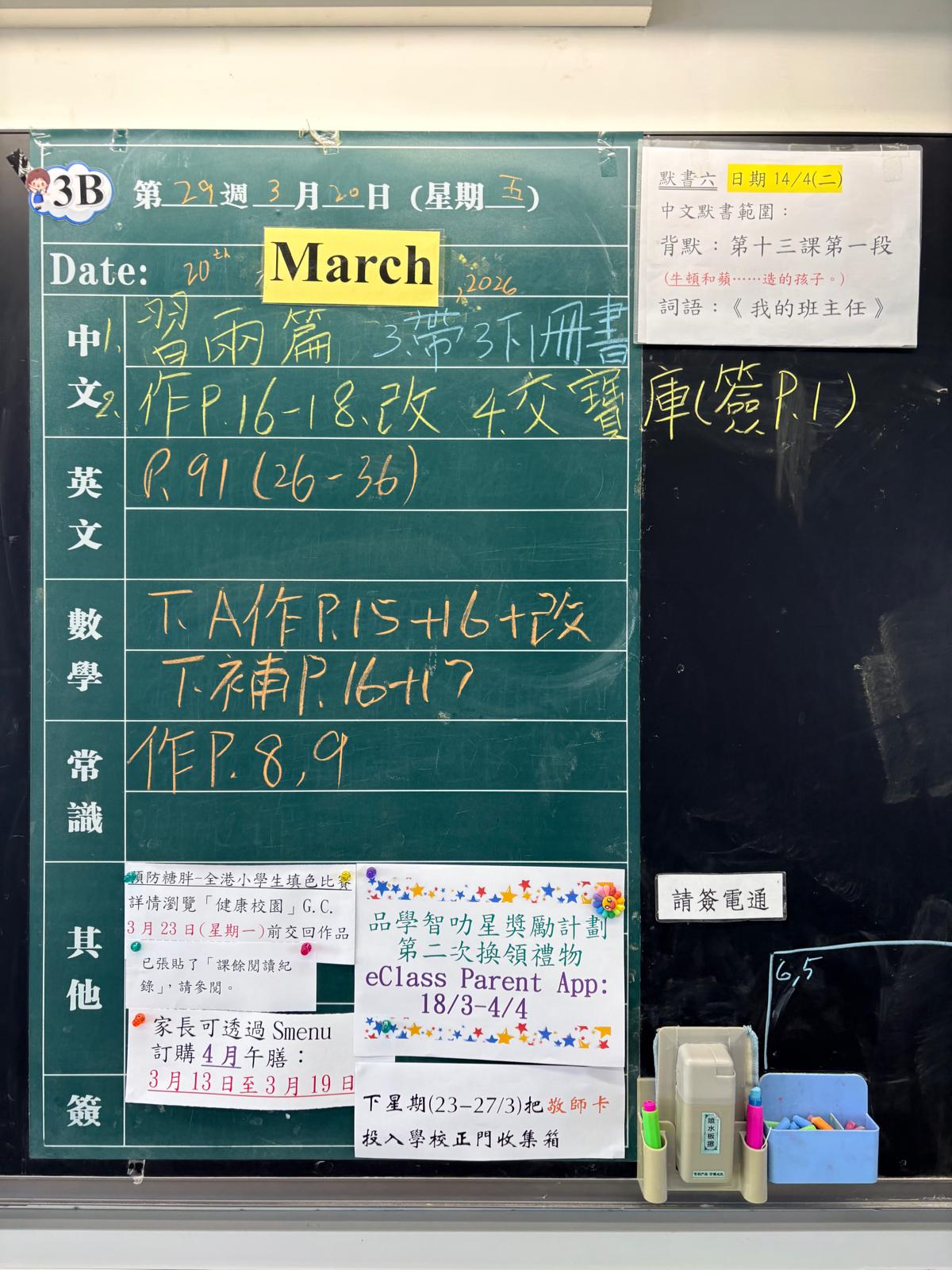 | 3B | 星期一 | 星期二 | 星期三 | 星期四 | 星期五 |
