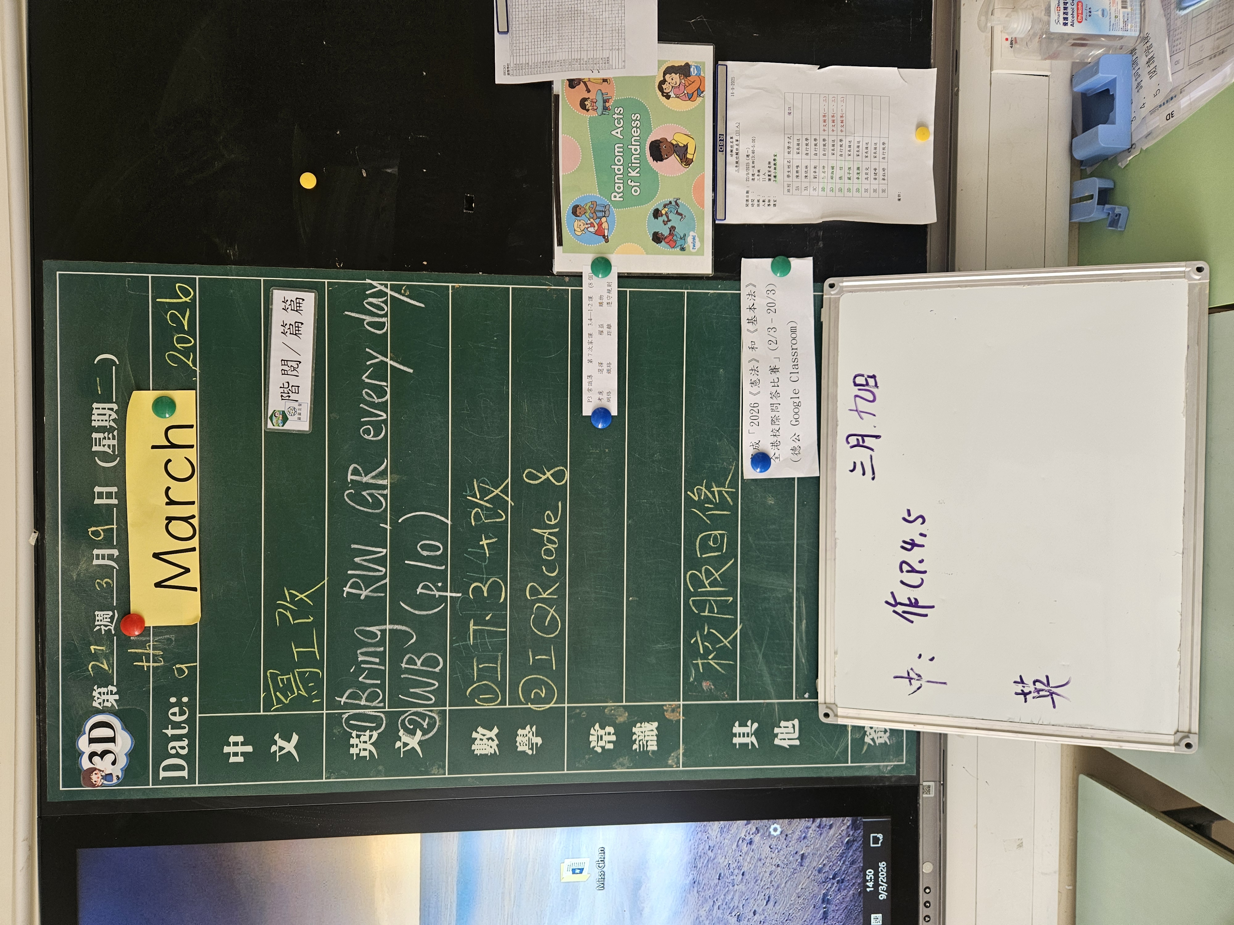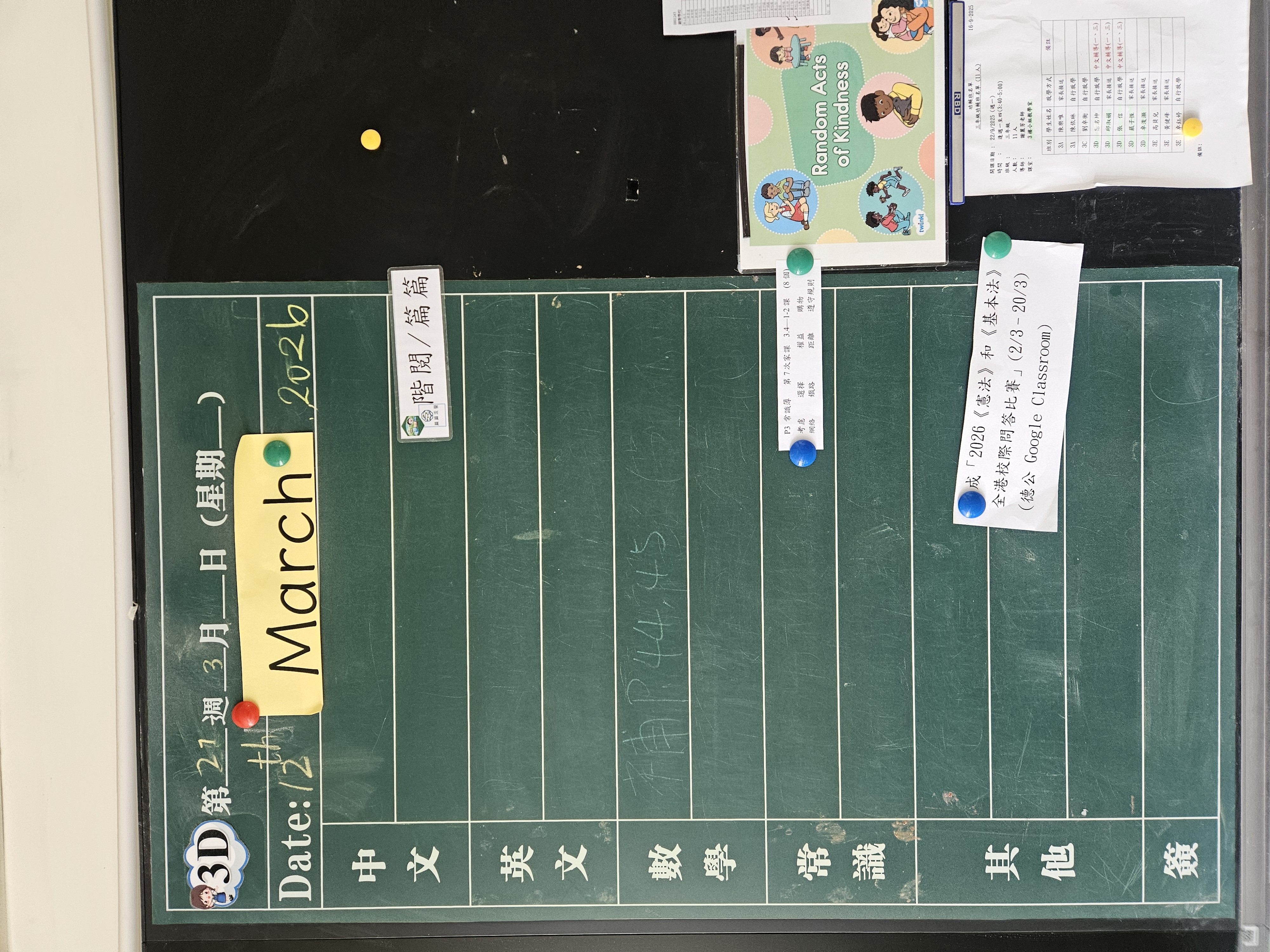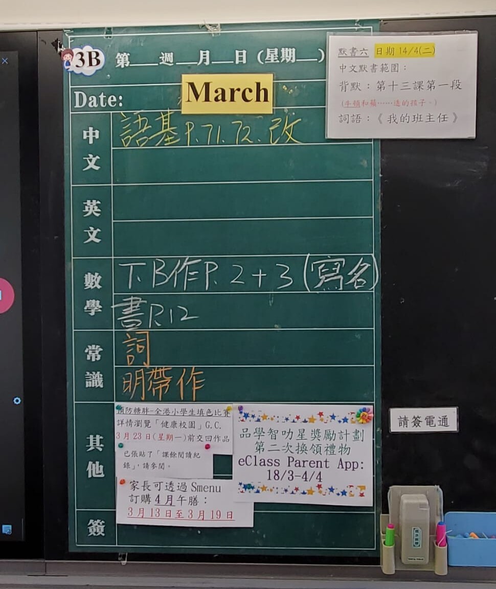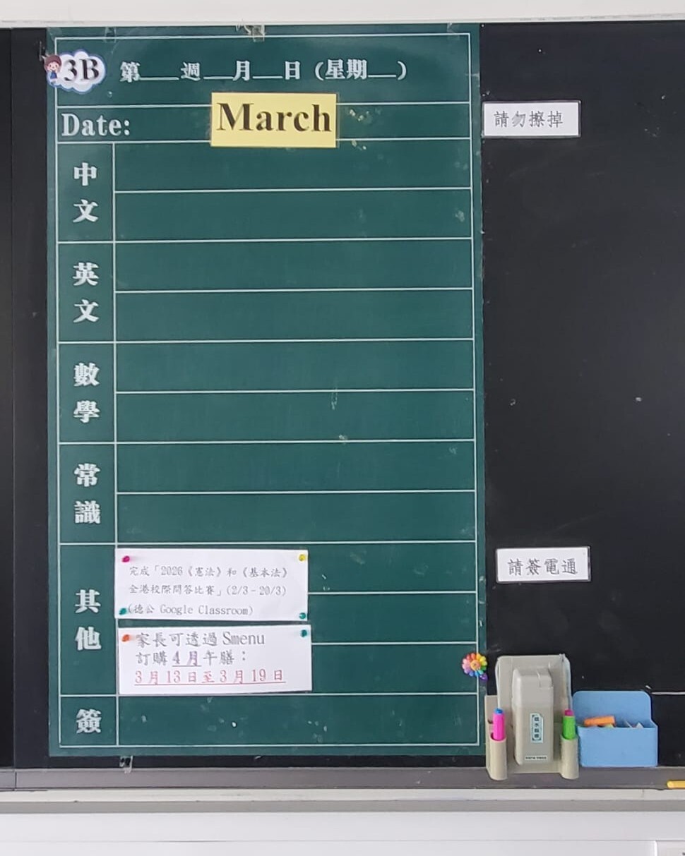 | 3B | 星期一 | 星期二 | 星期三 | 星期四 | 星期五 |