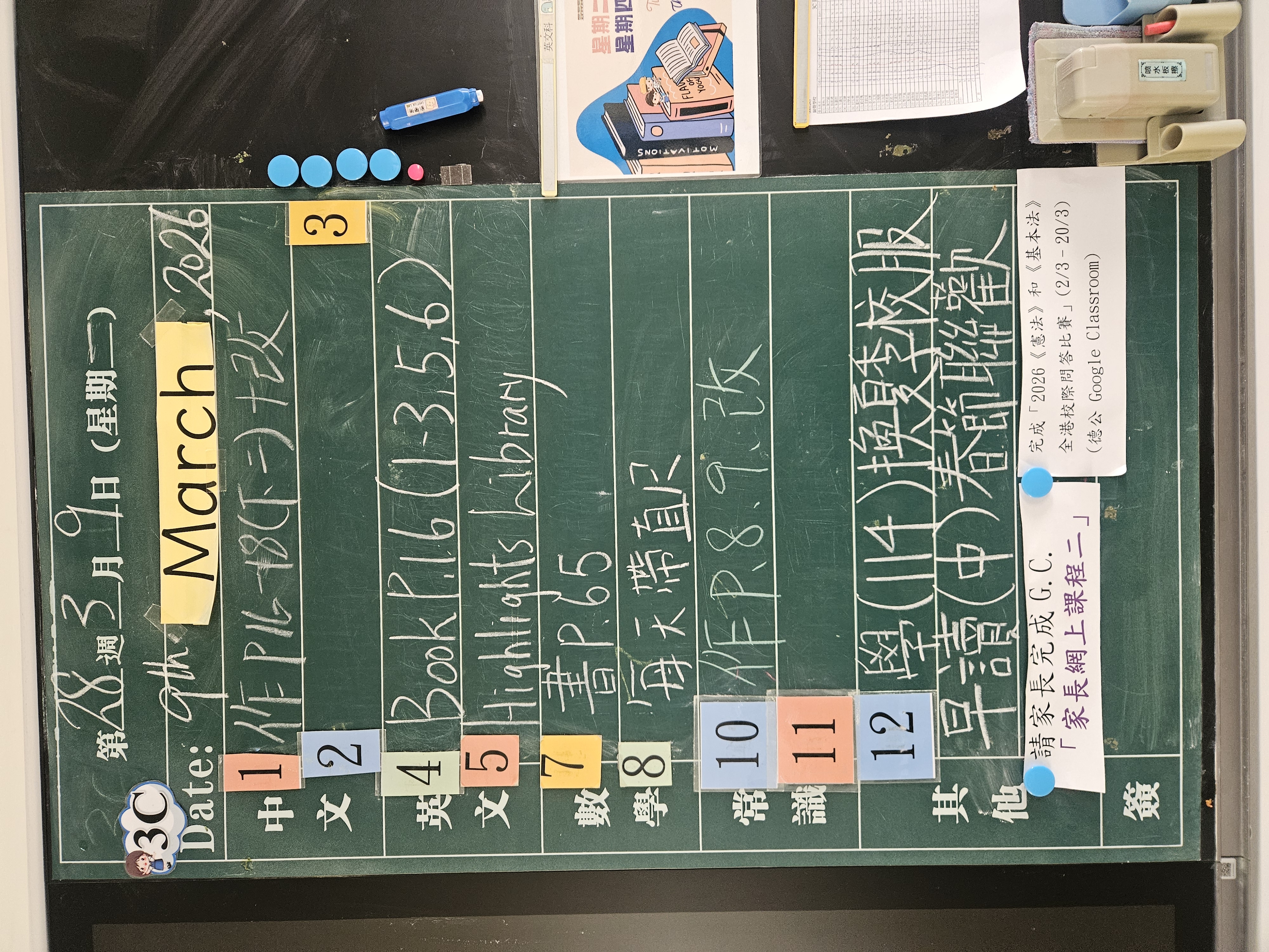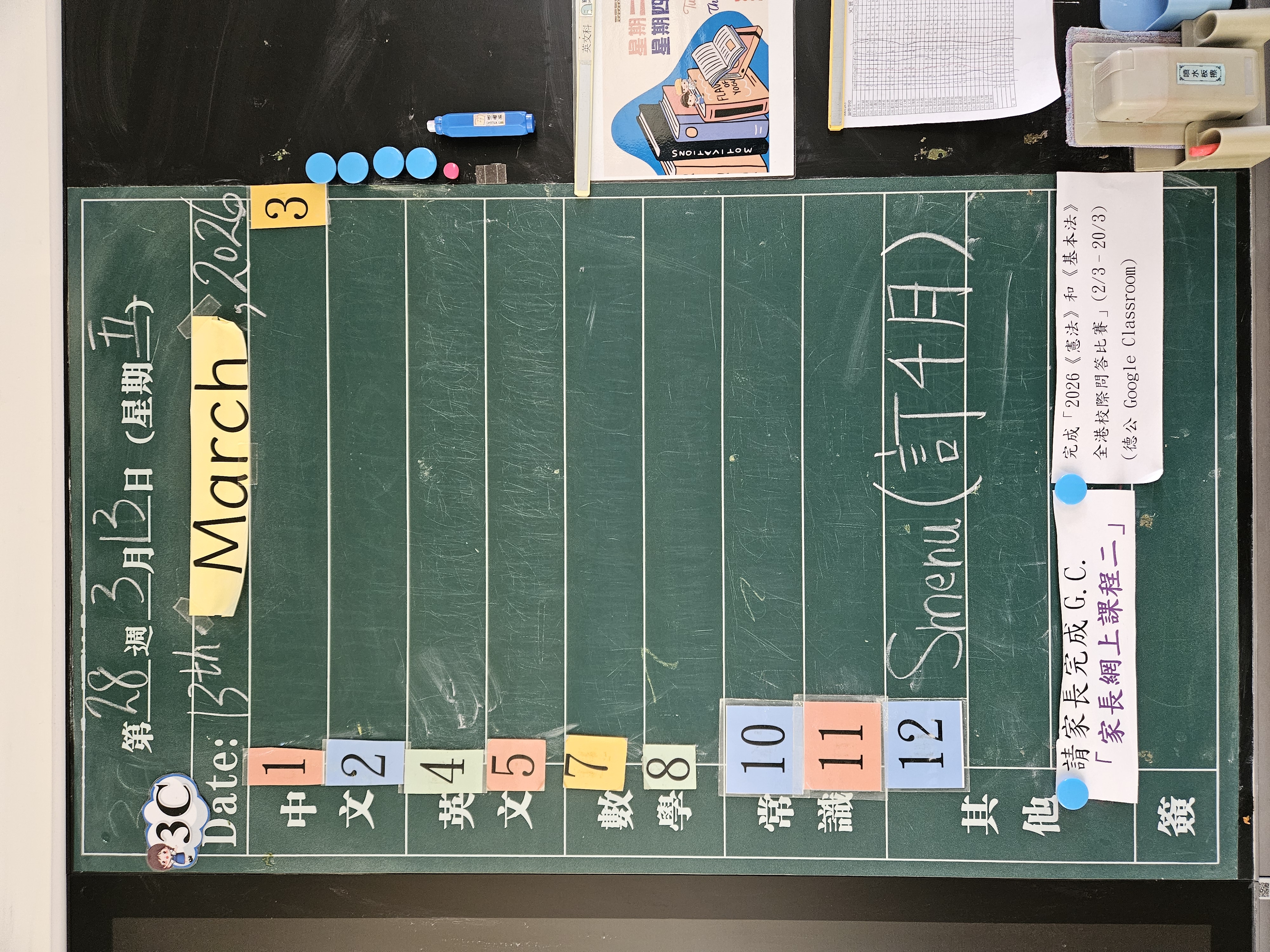 | 3C | 星期一 | 星期二 | 星期三 | 星期四 | 星期五 |