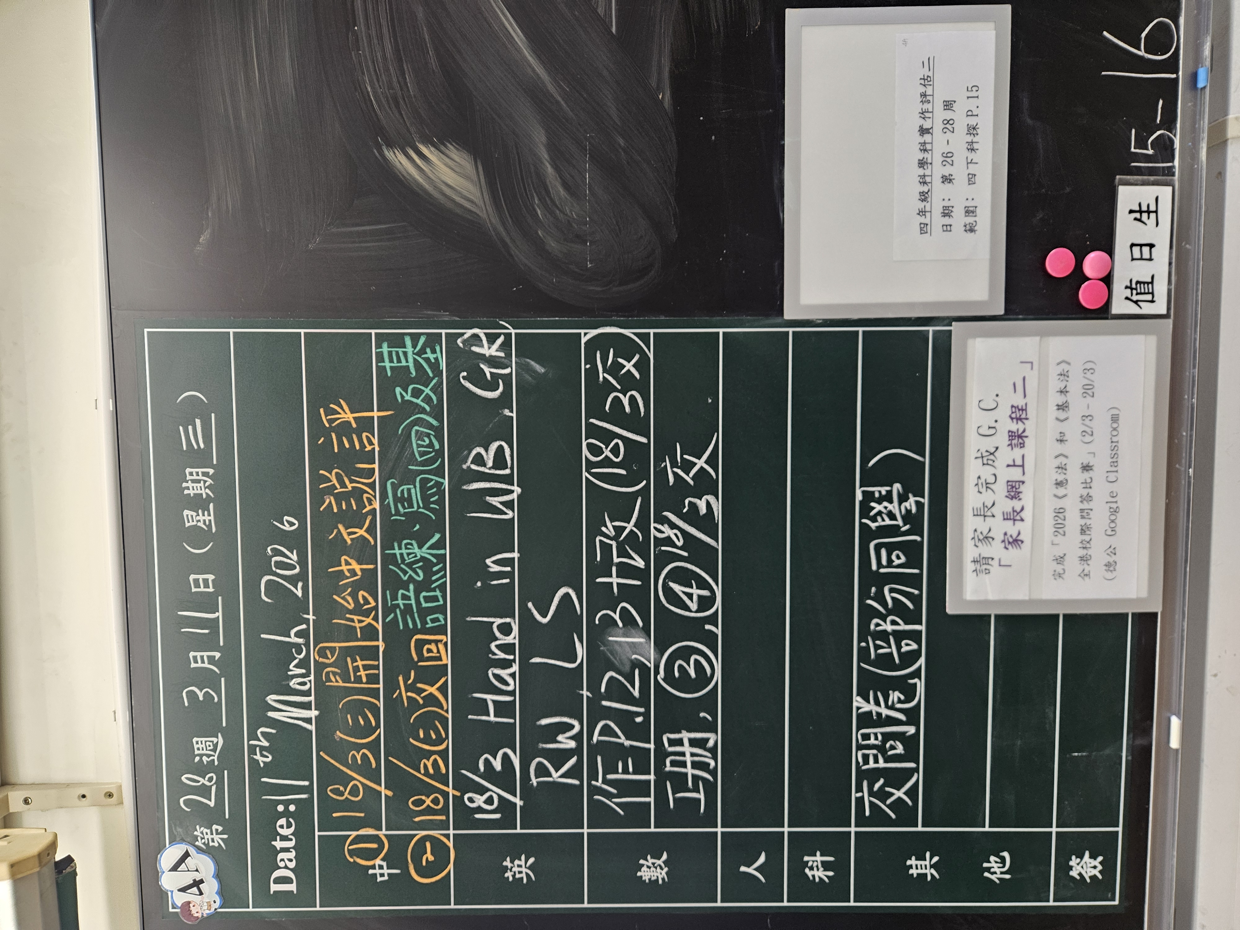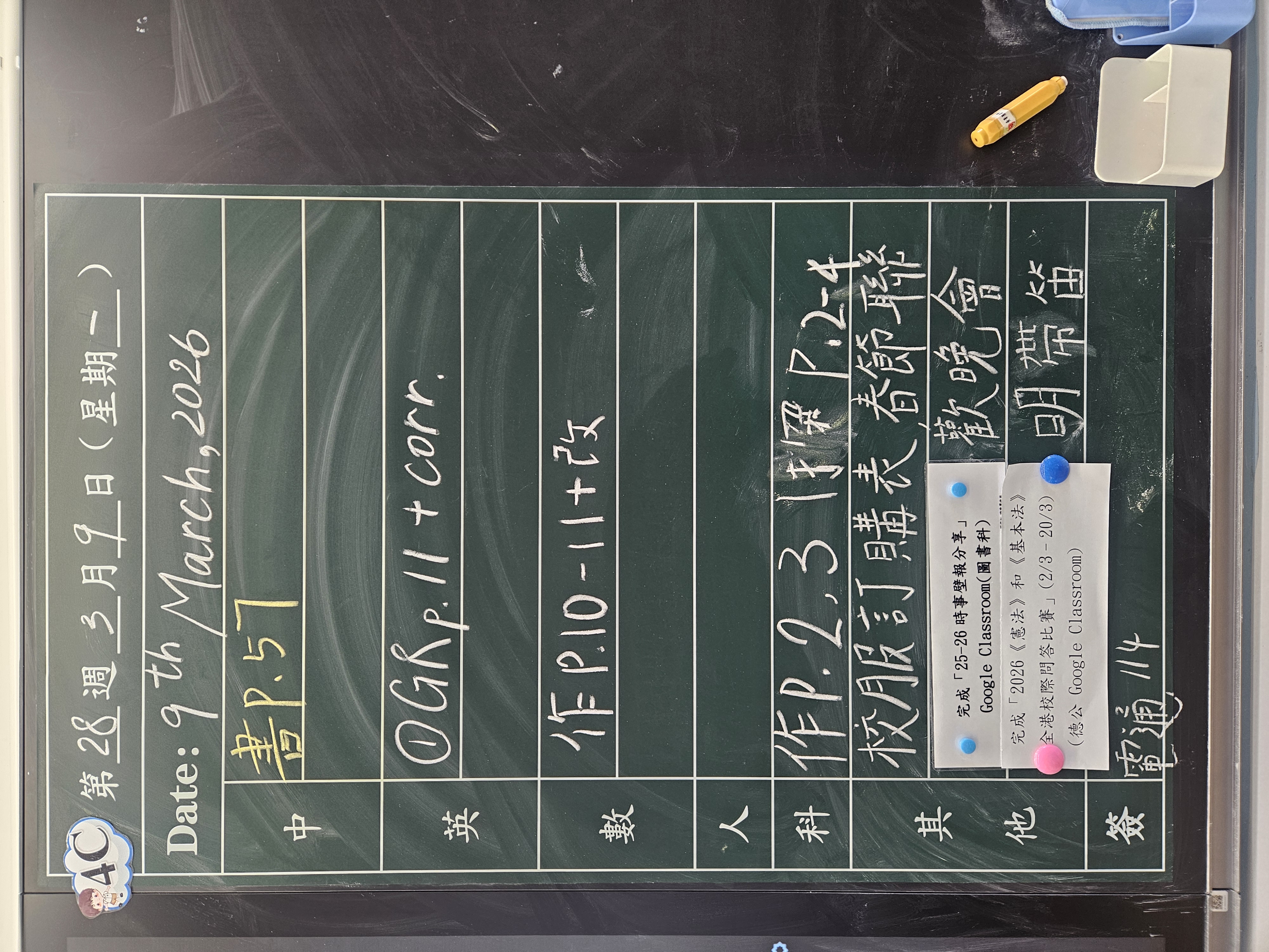 本週家課