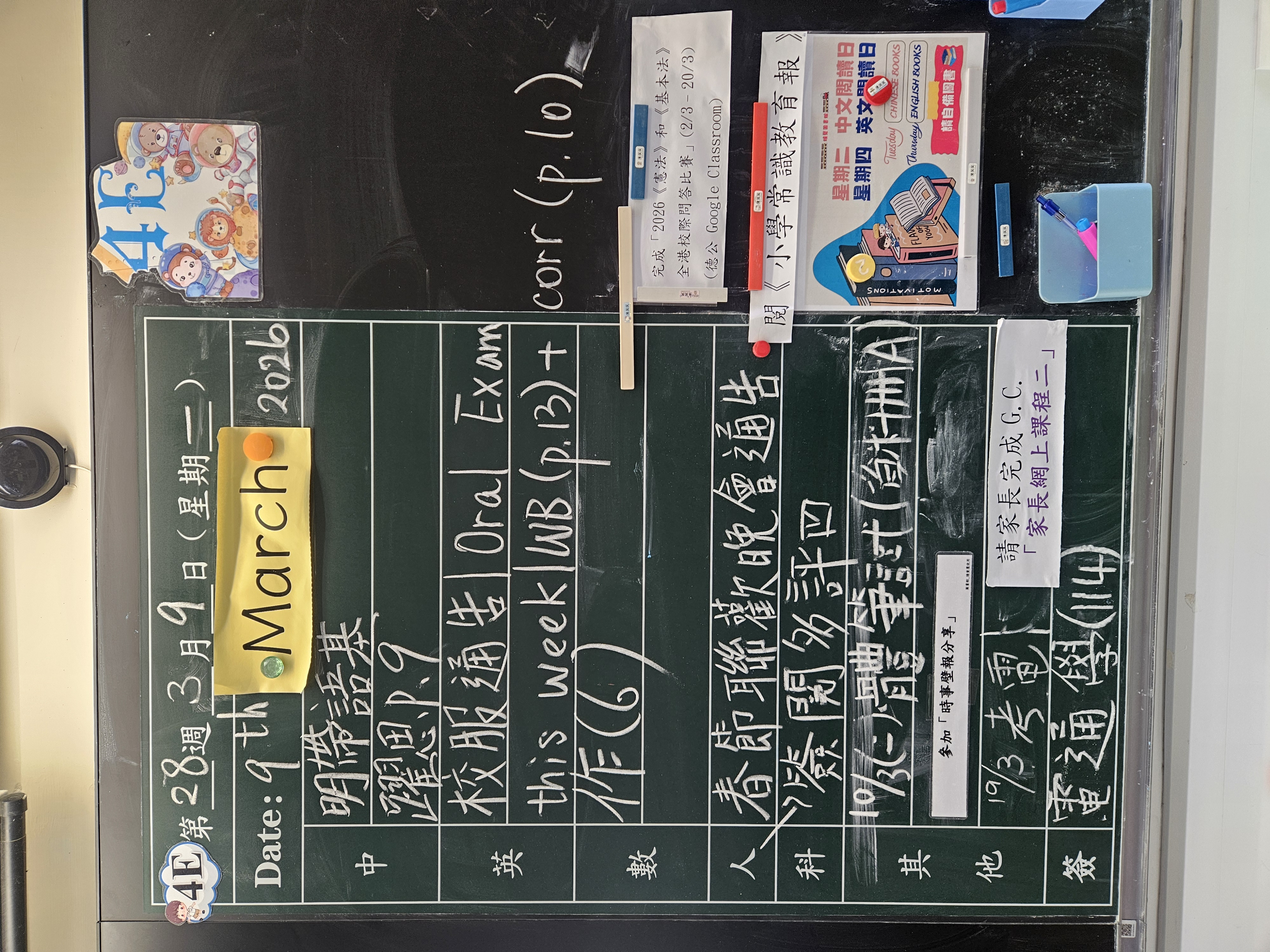 | 4E | 星期一 | 星期二 | 星期三 | 星期四 | 星期五 |