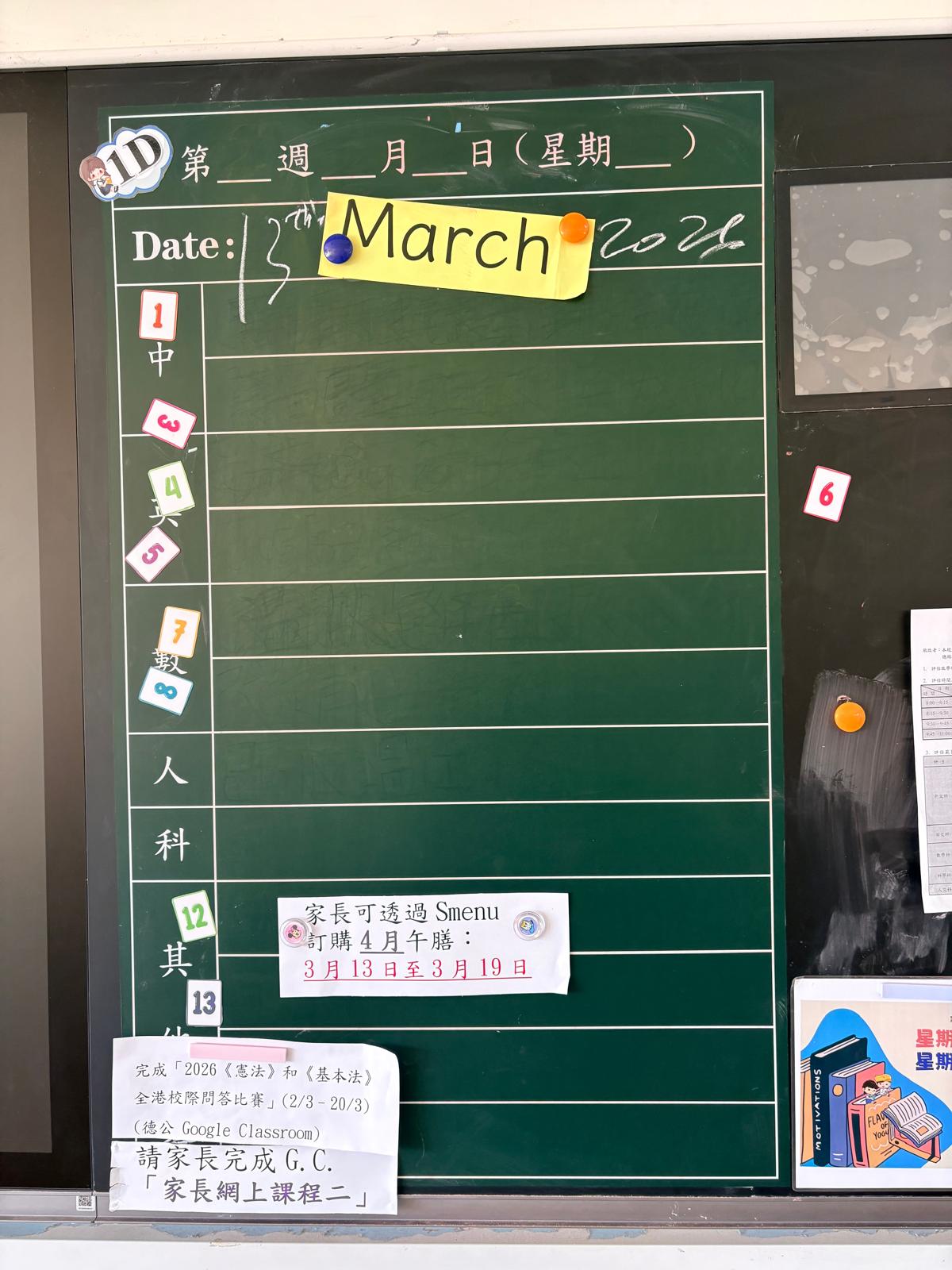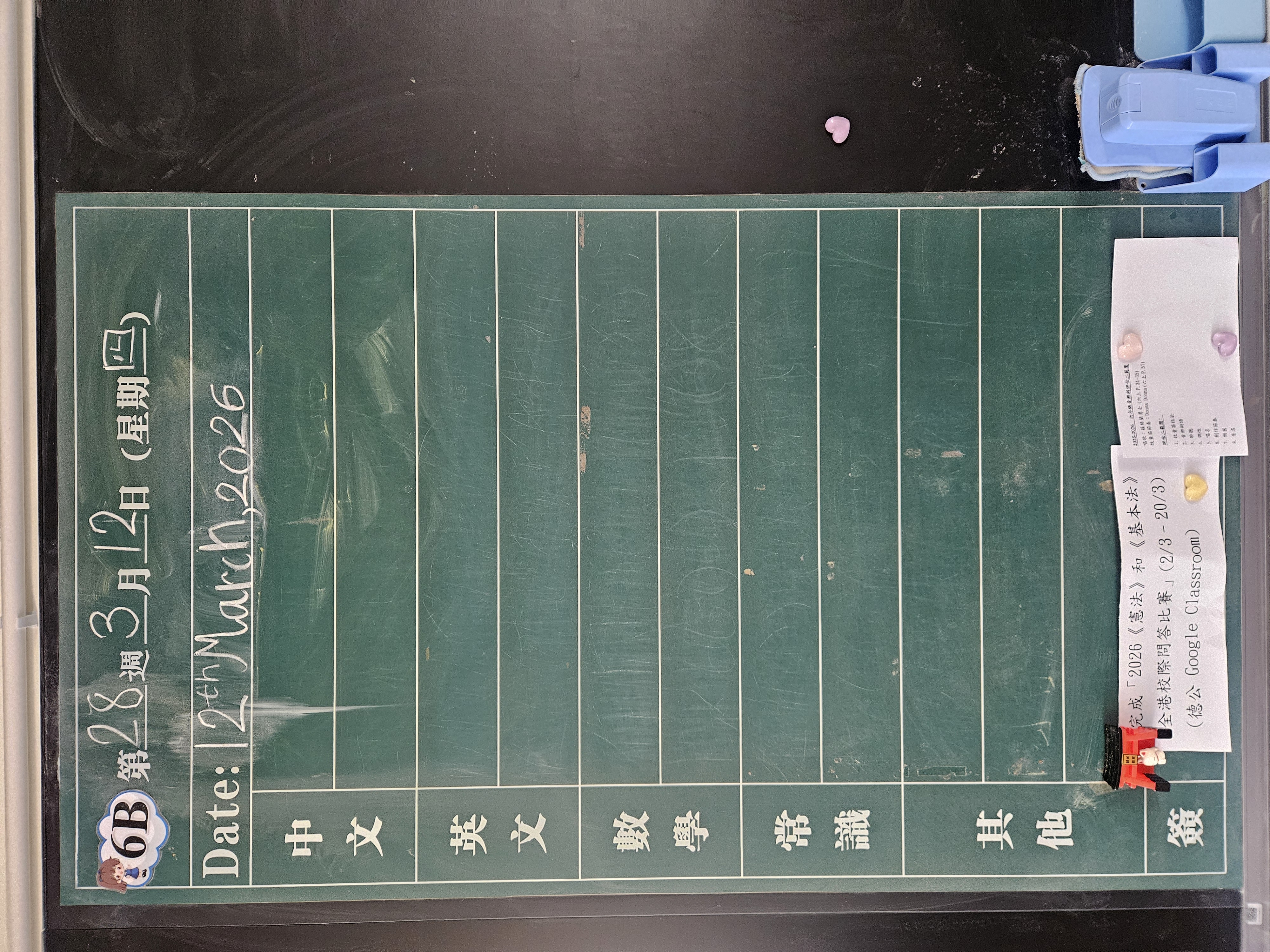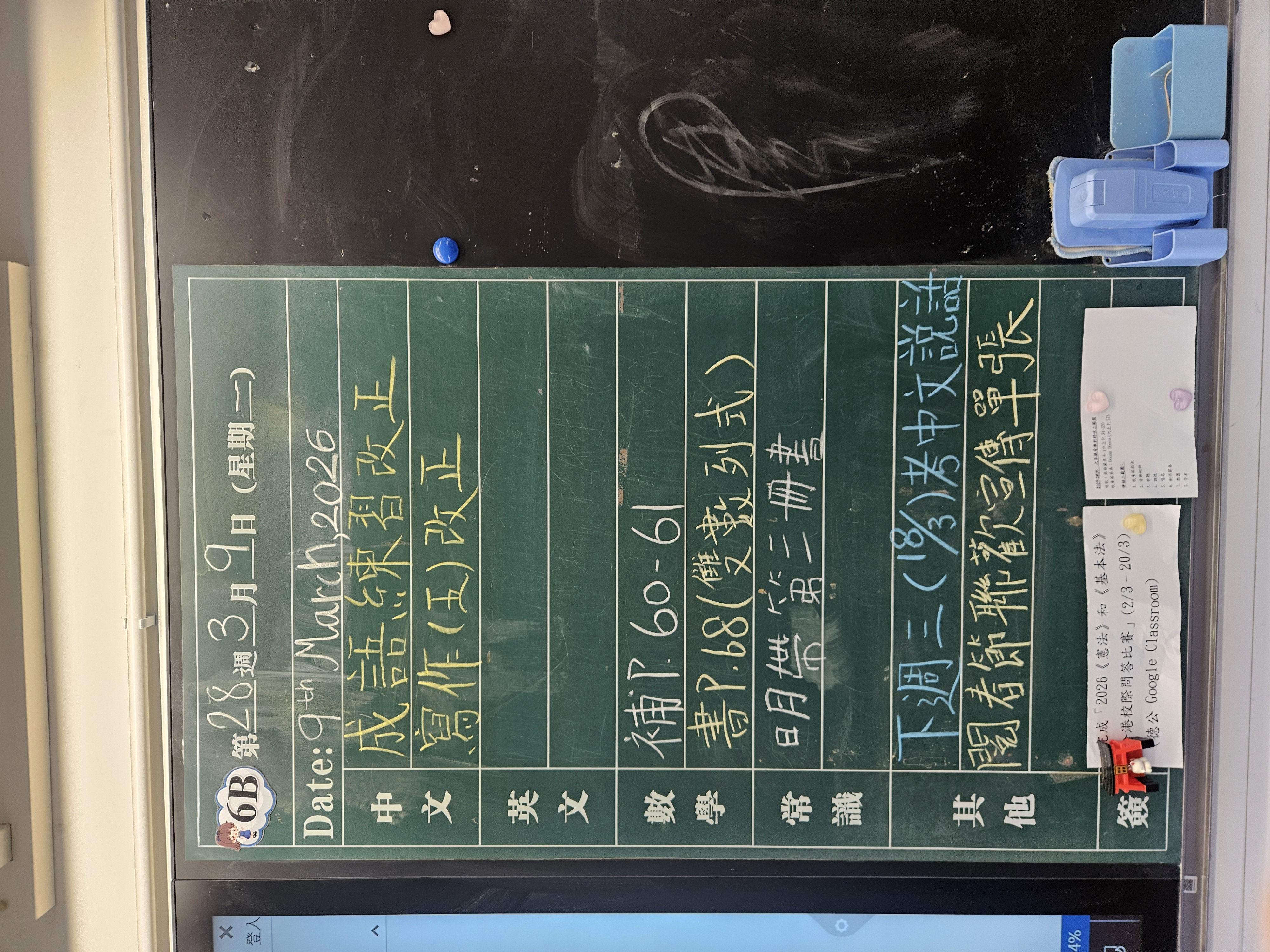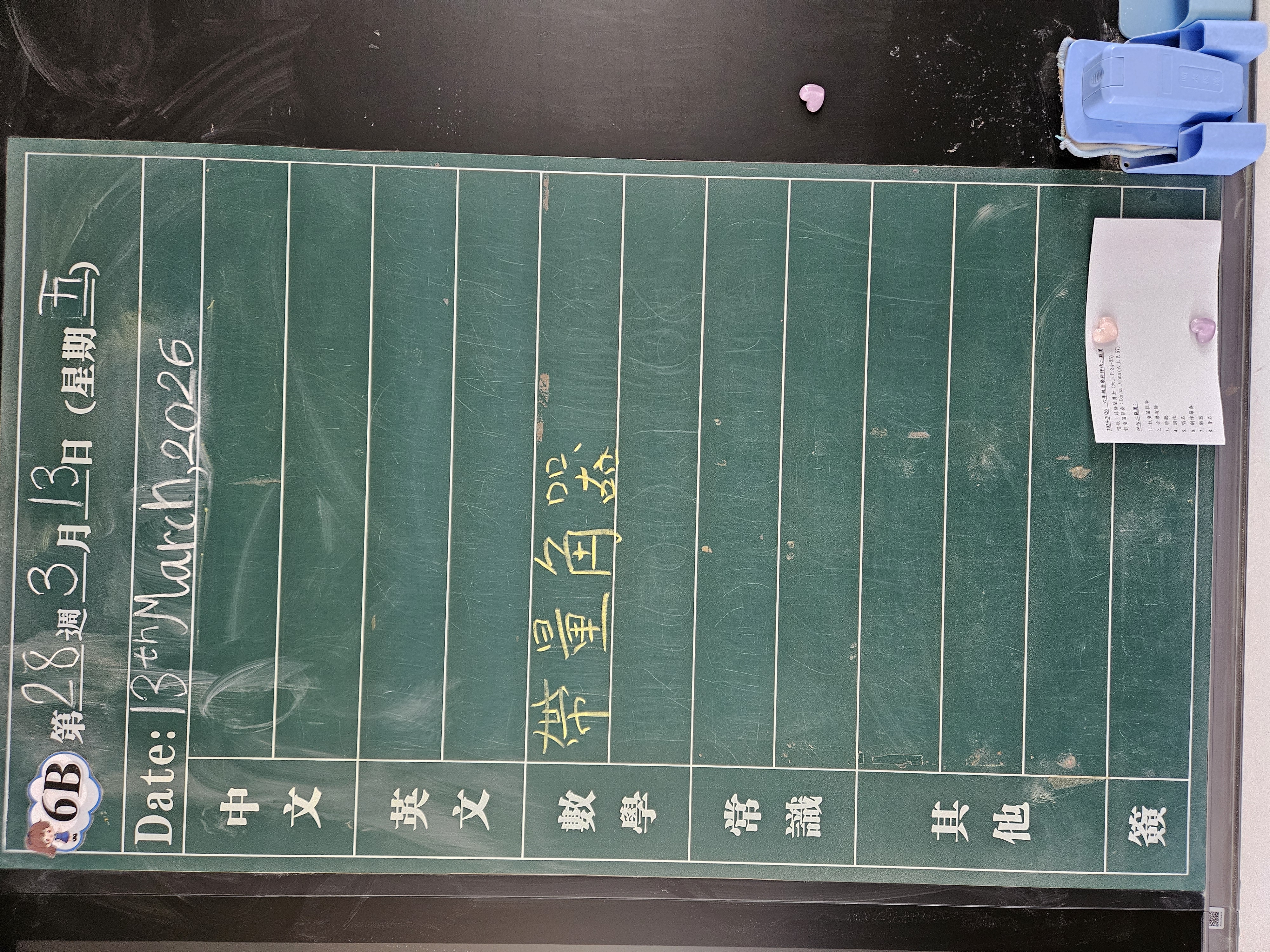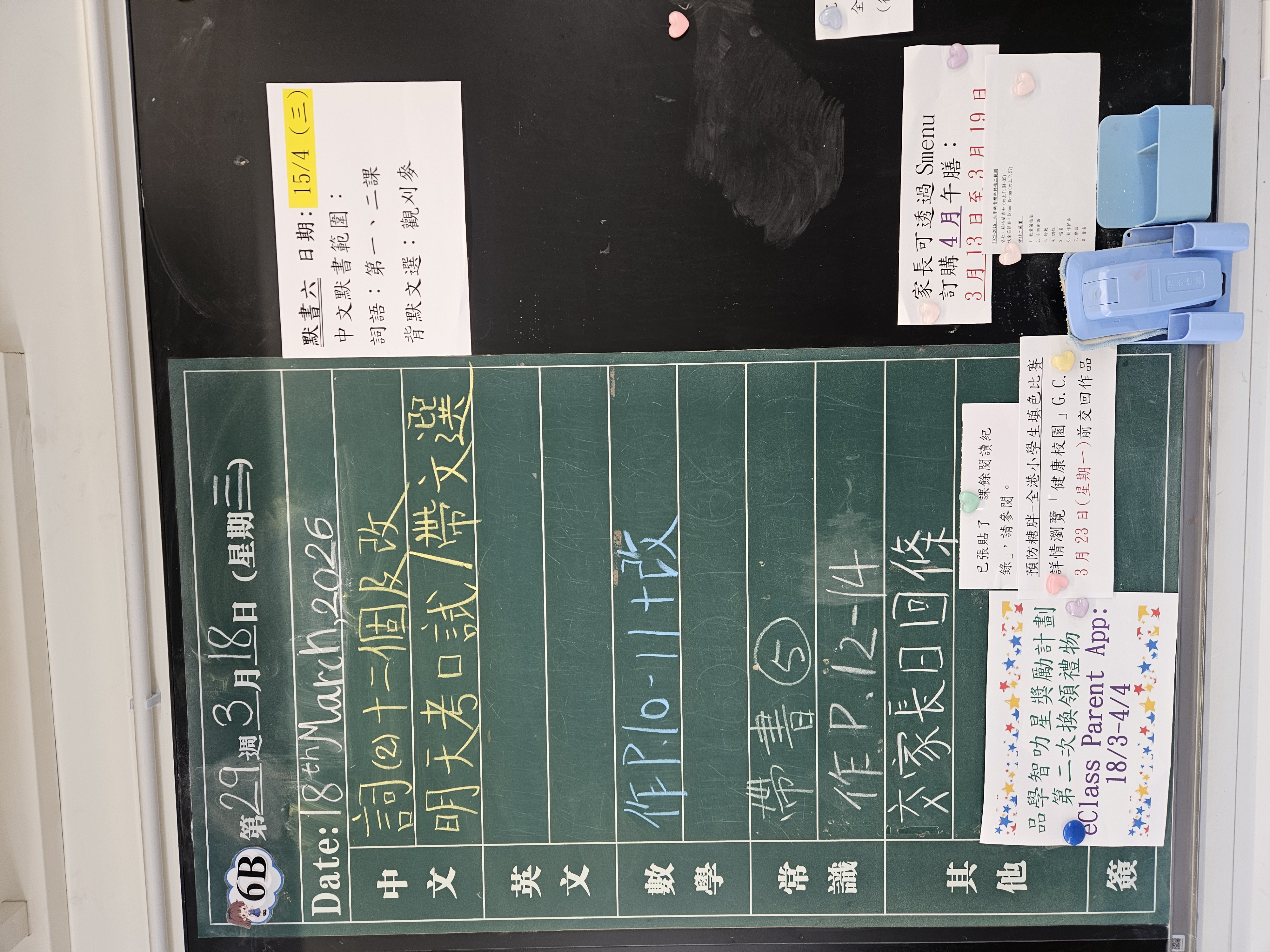 | 6B | 星期一 | 星期二 | 星期三 | 星期四 | 星期五 |