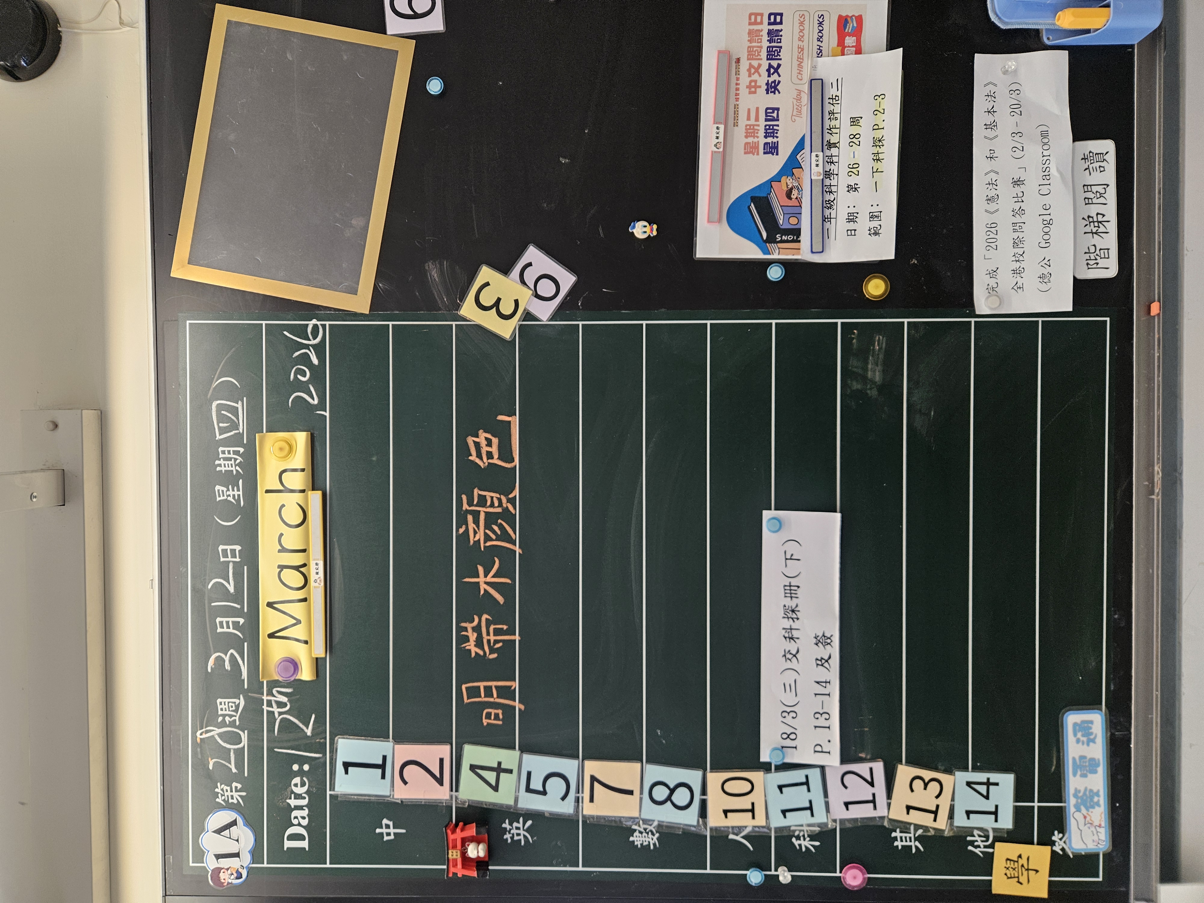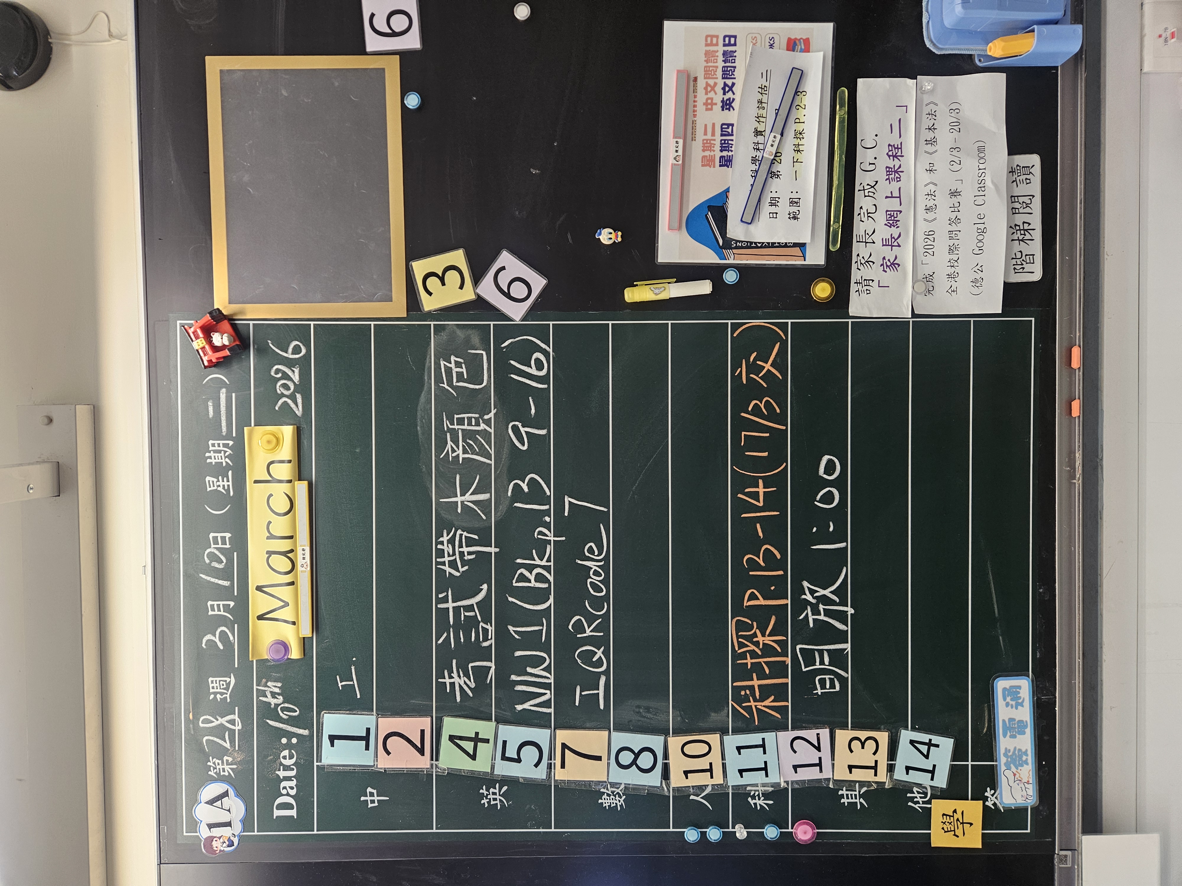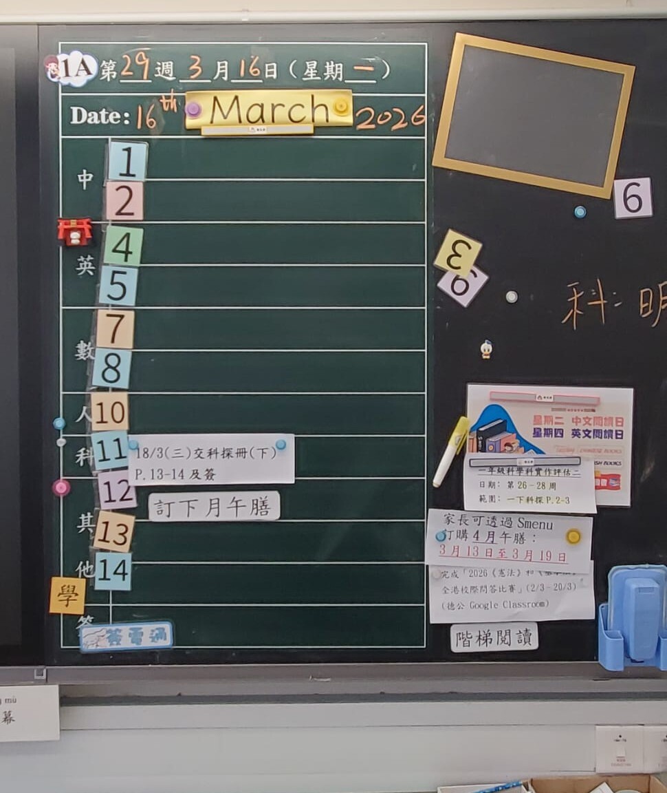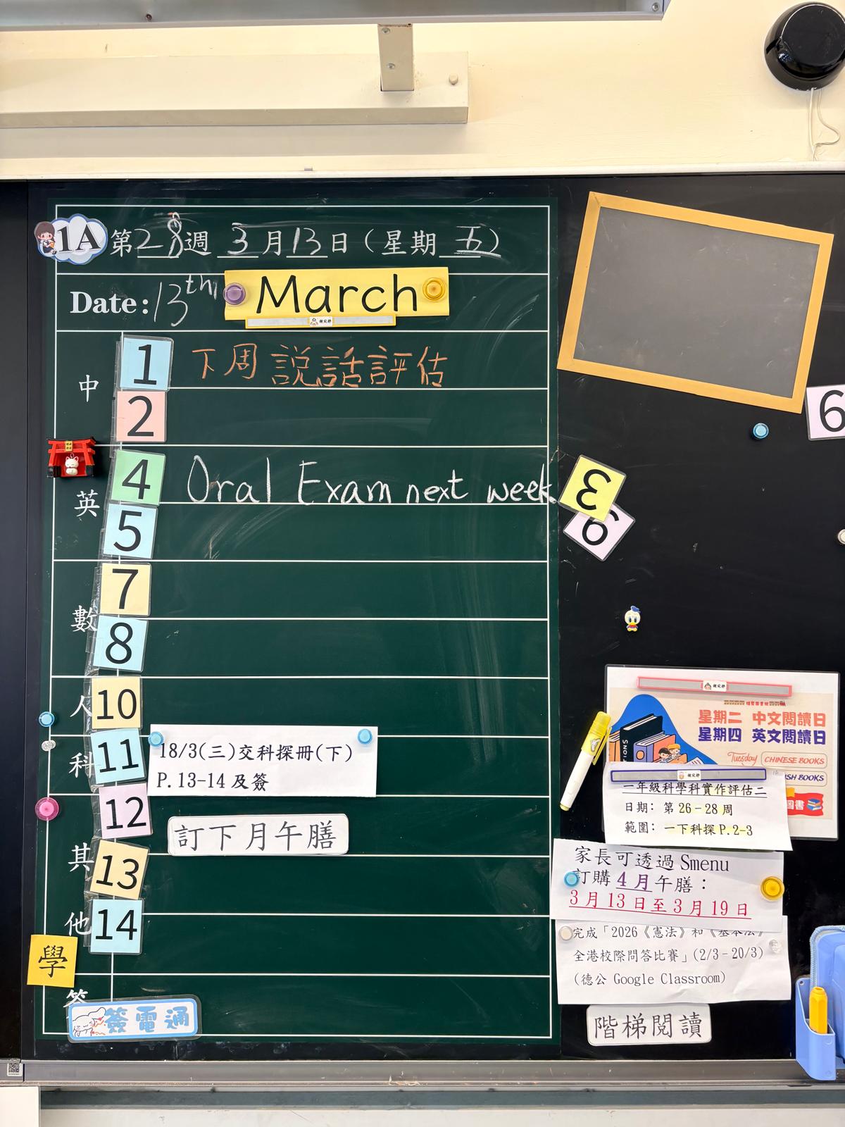 | 1A | 星期一 | 星期二 | 星期三 | 星期四 | 星期五 |