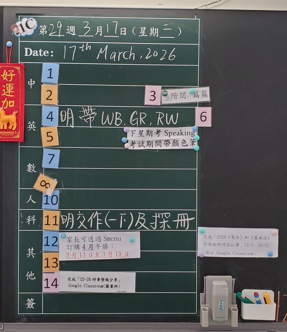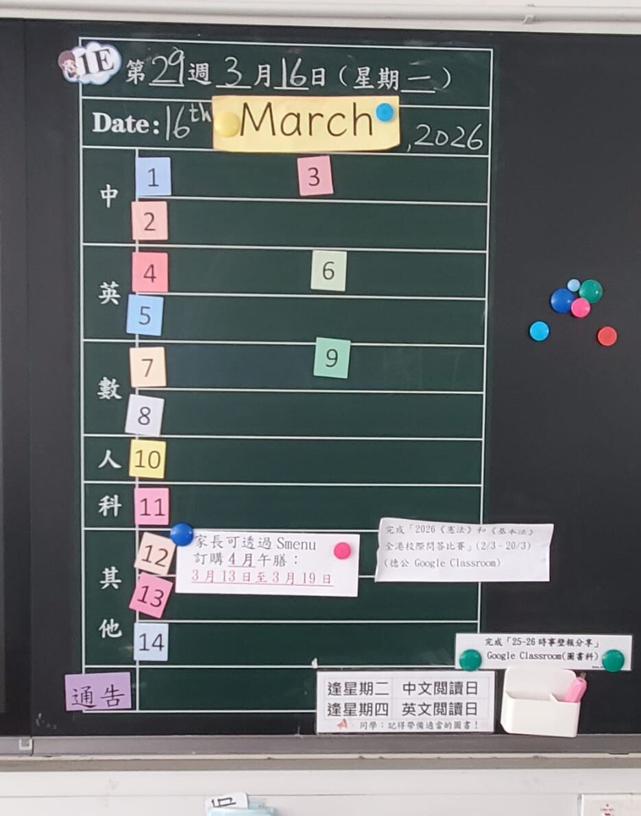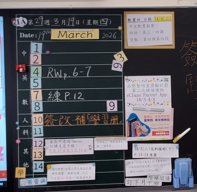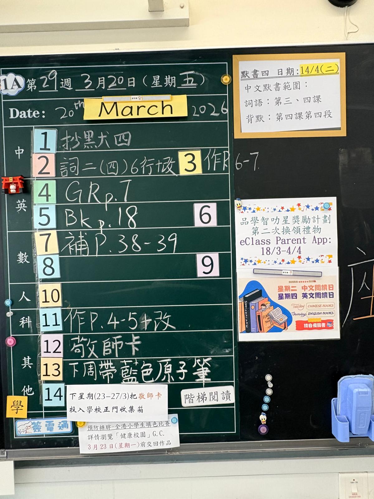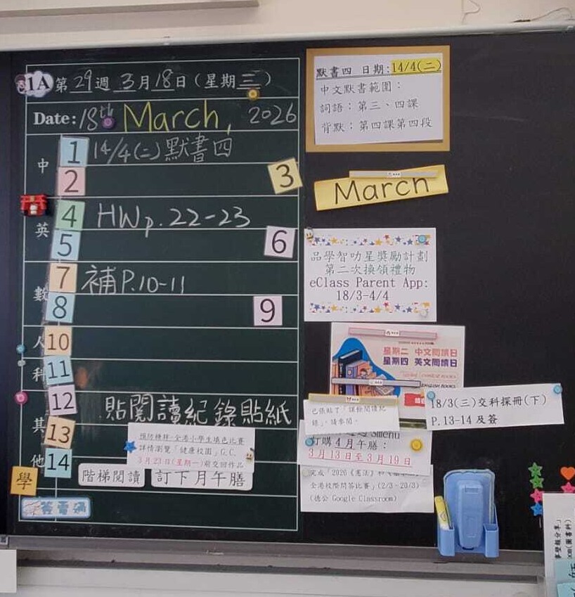 | 1A | 星期一 | 星期二 | 星期三 | 星期四 | 星期五 |