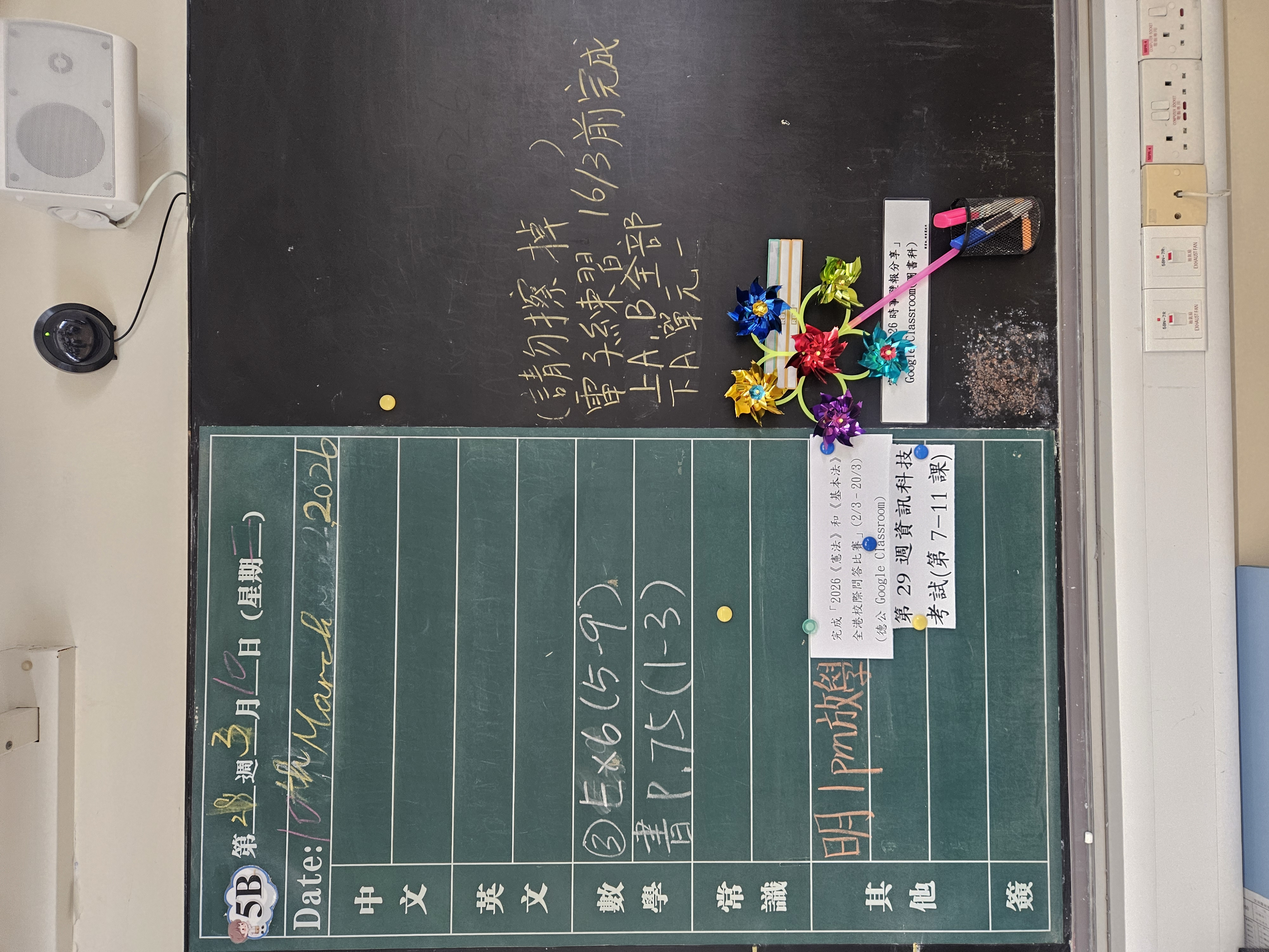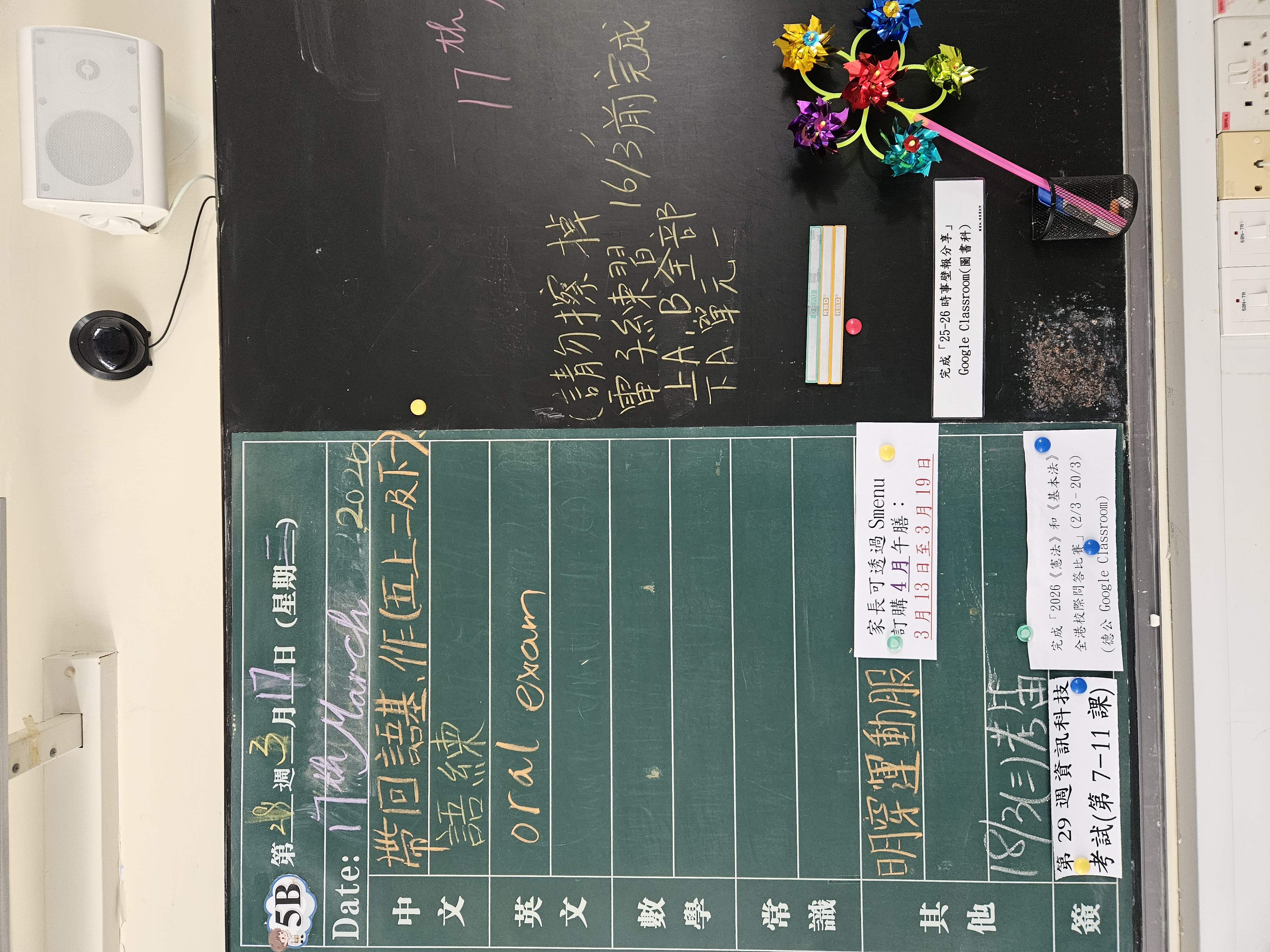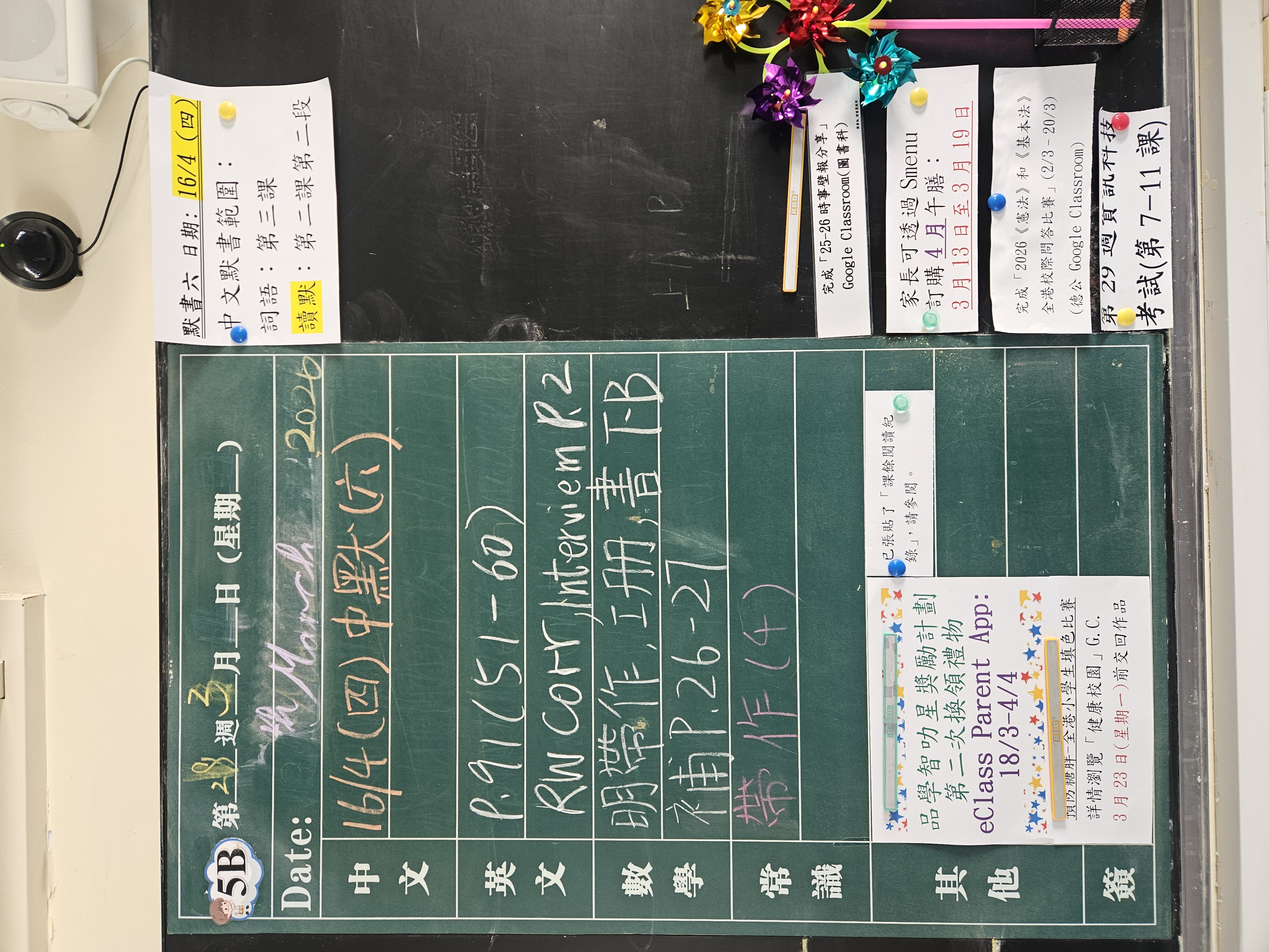 | 5B | 星期一 | 星期二 | 星期三 | 星期四 | 星期五 |