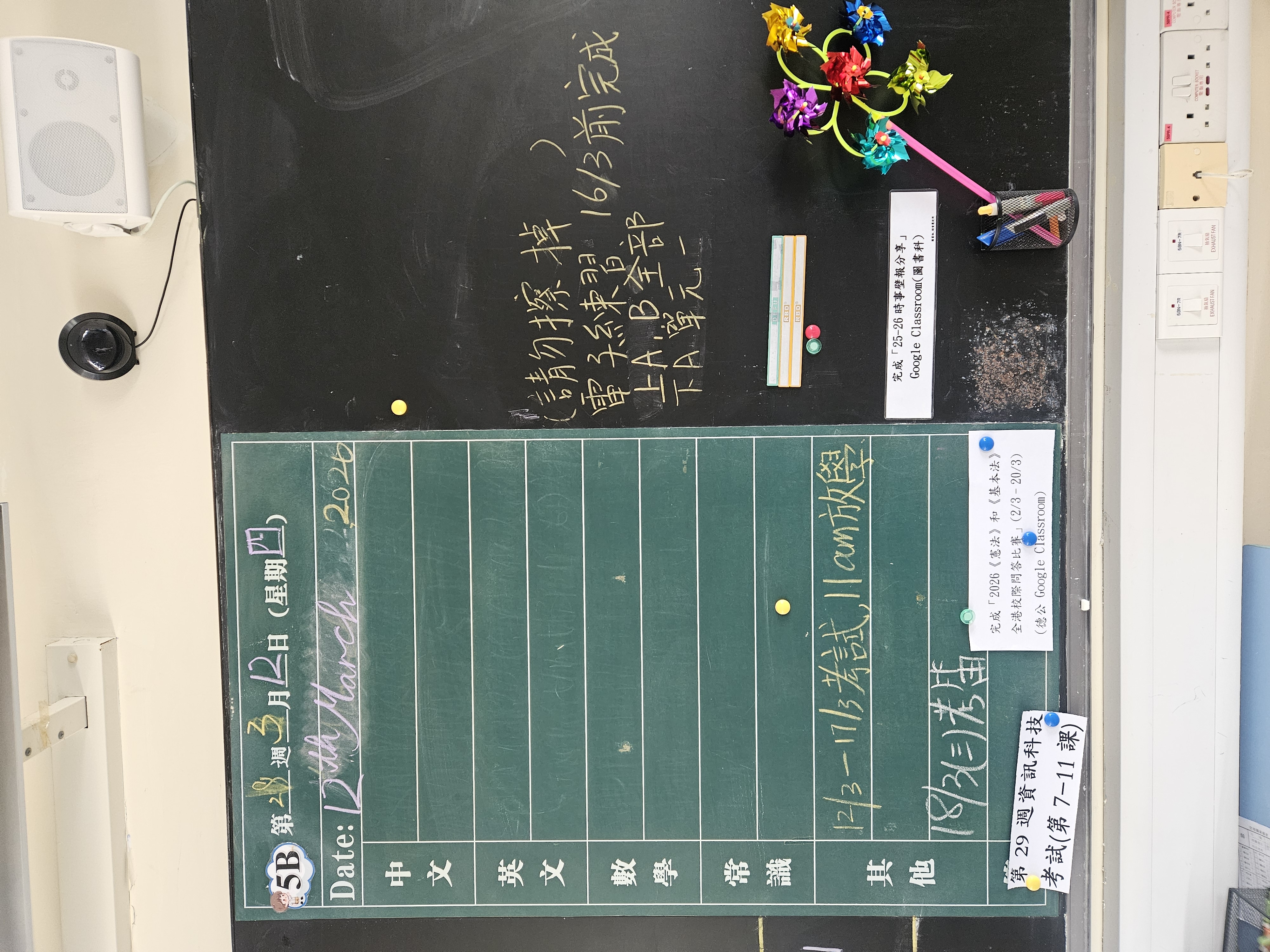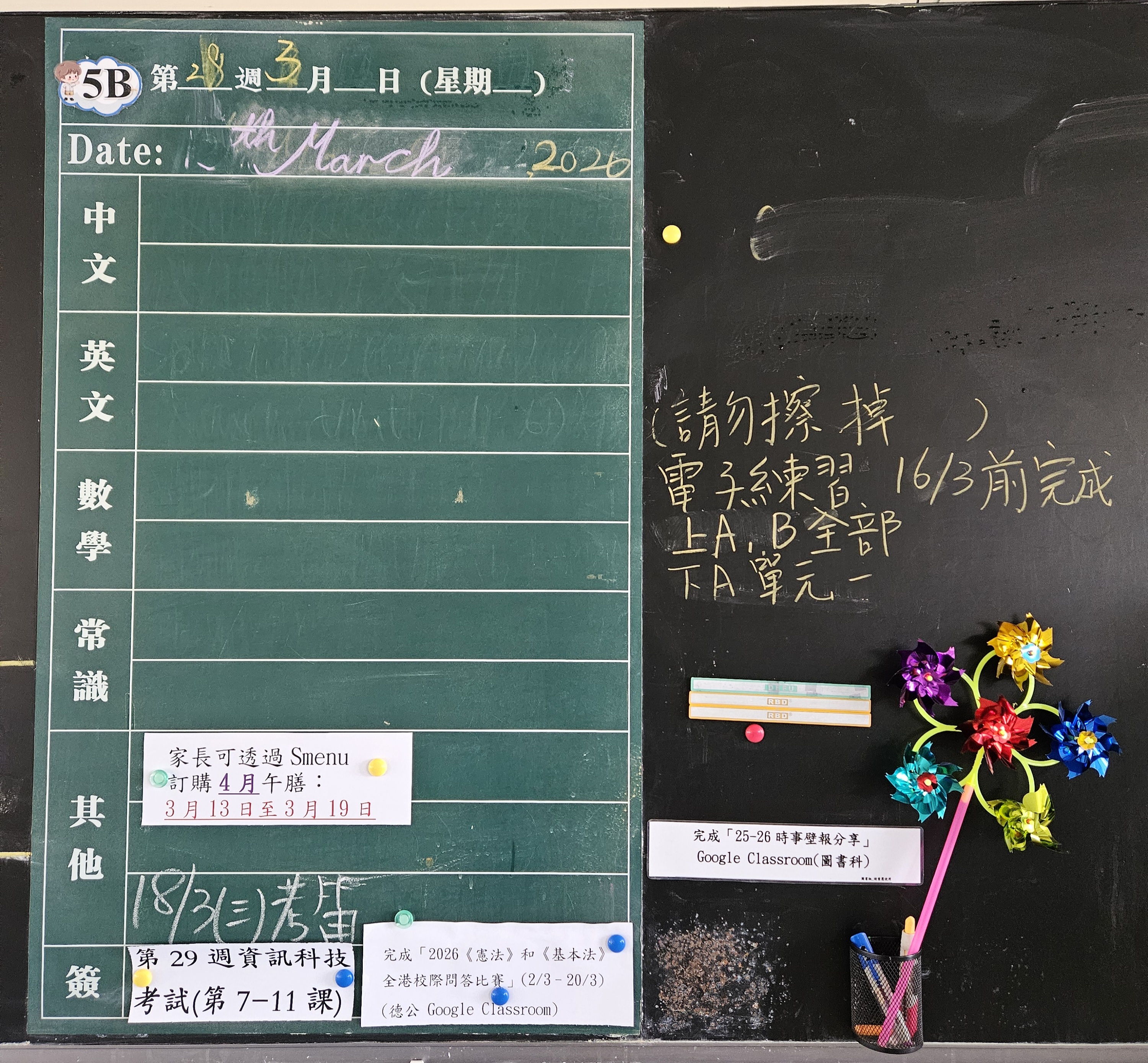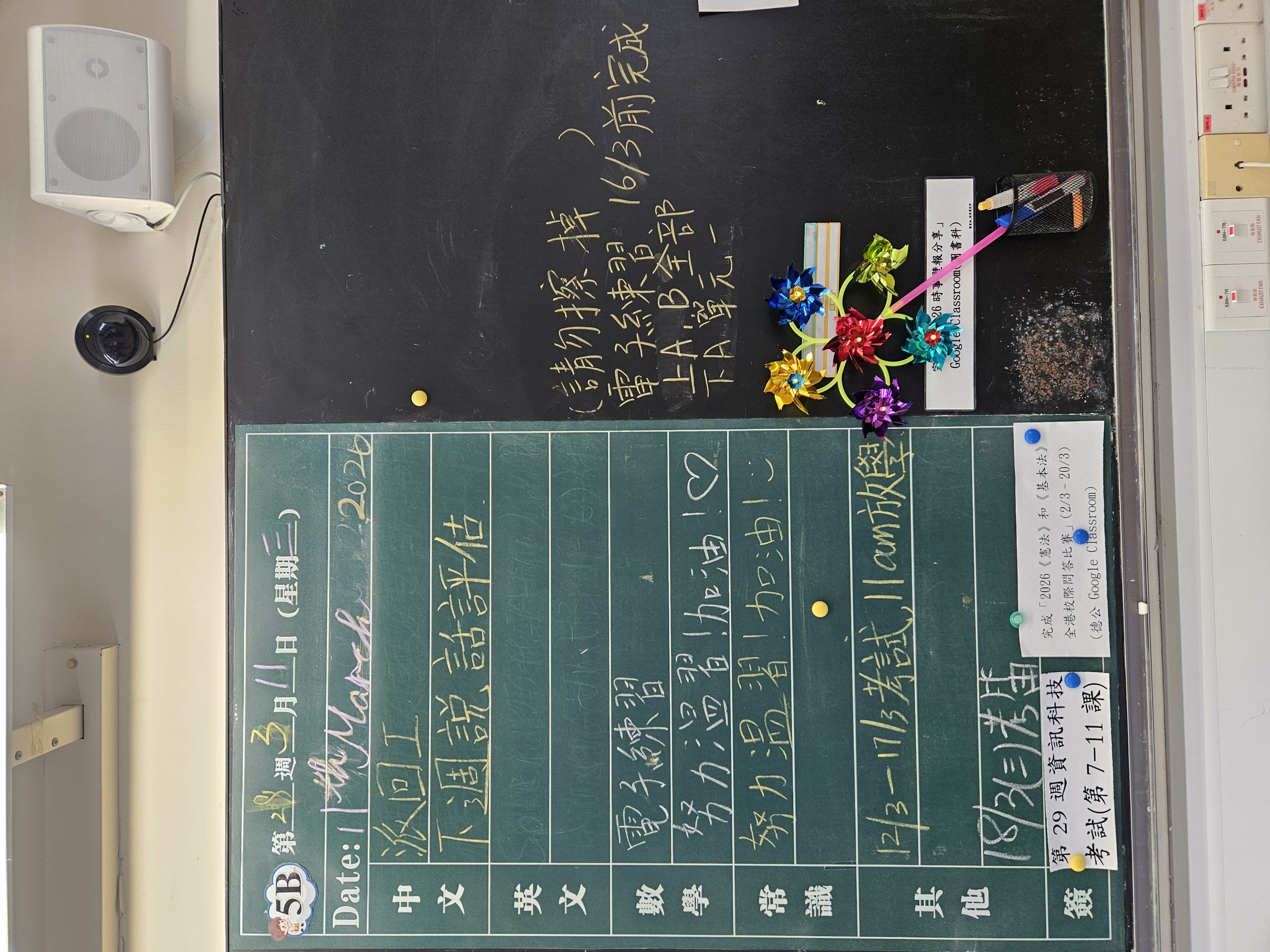 | 5B | 星期一 | 星期二 | 星期三 | 星期四 | 星期五 |