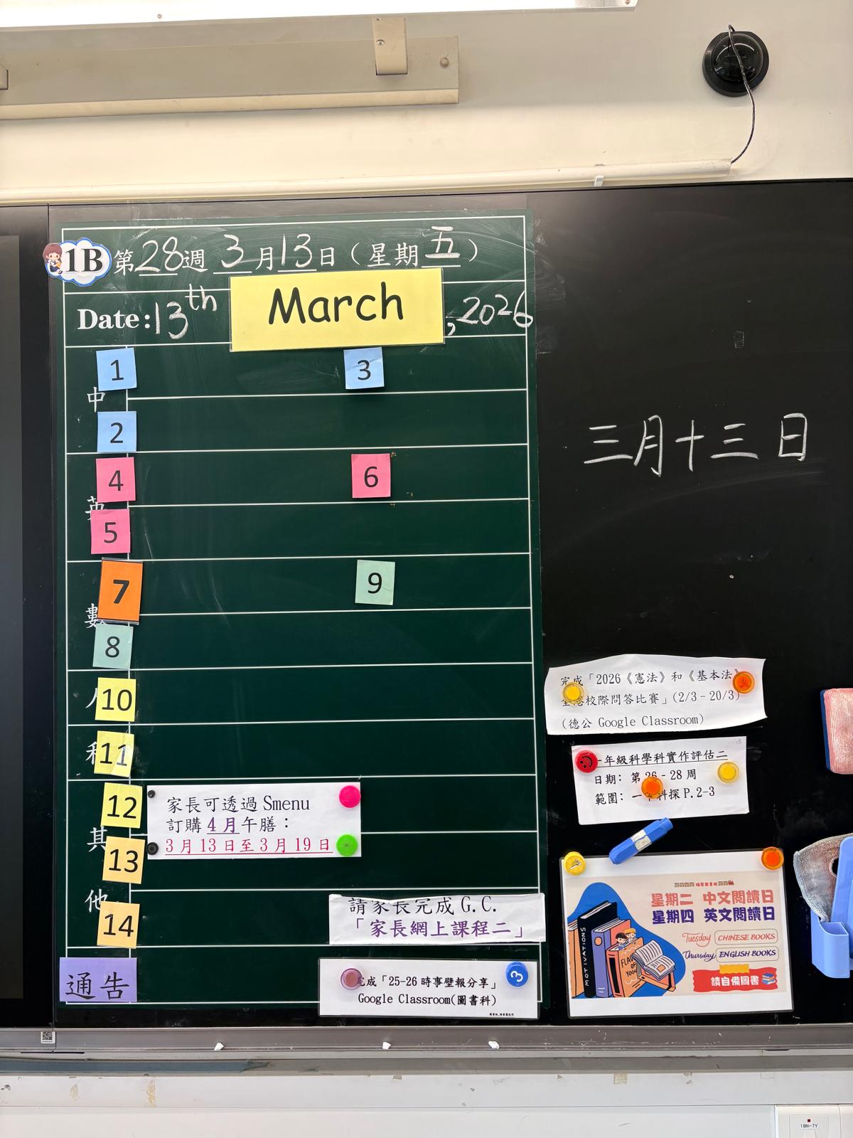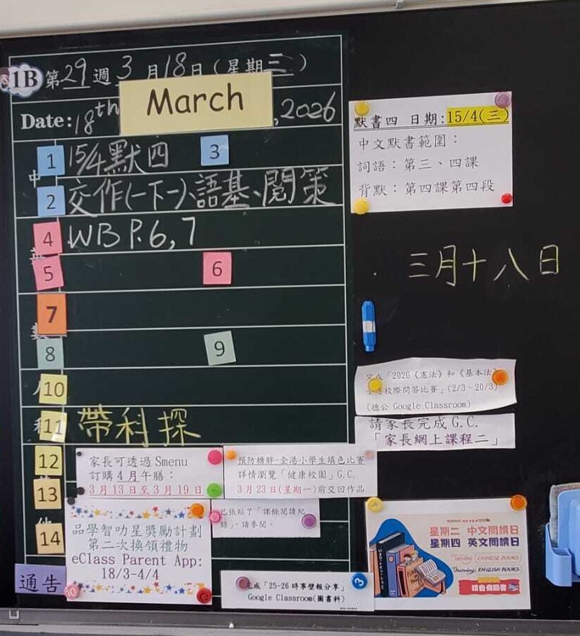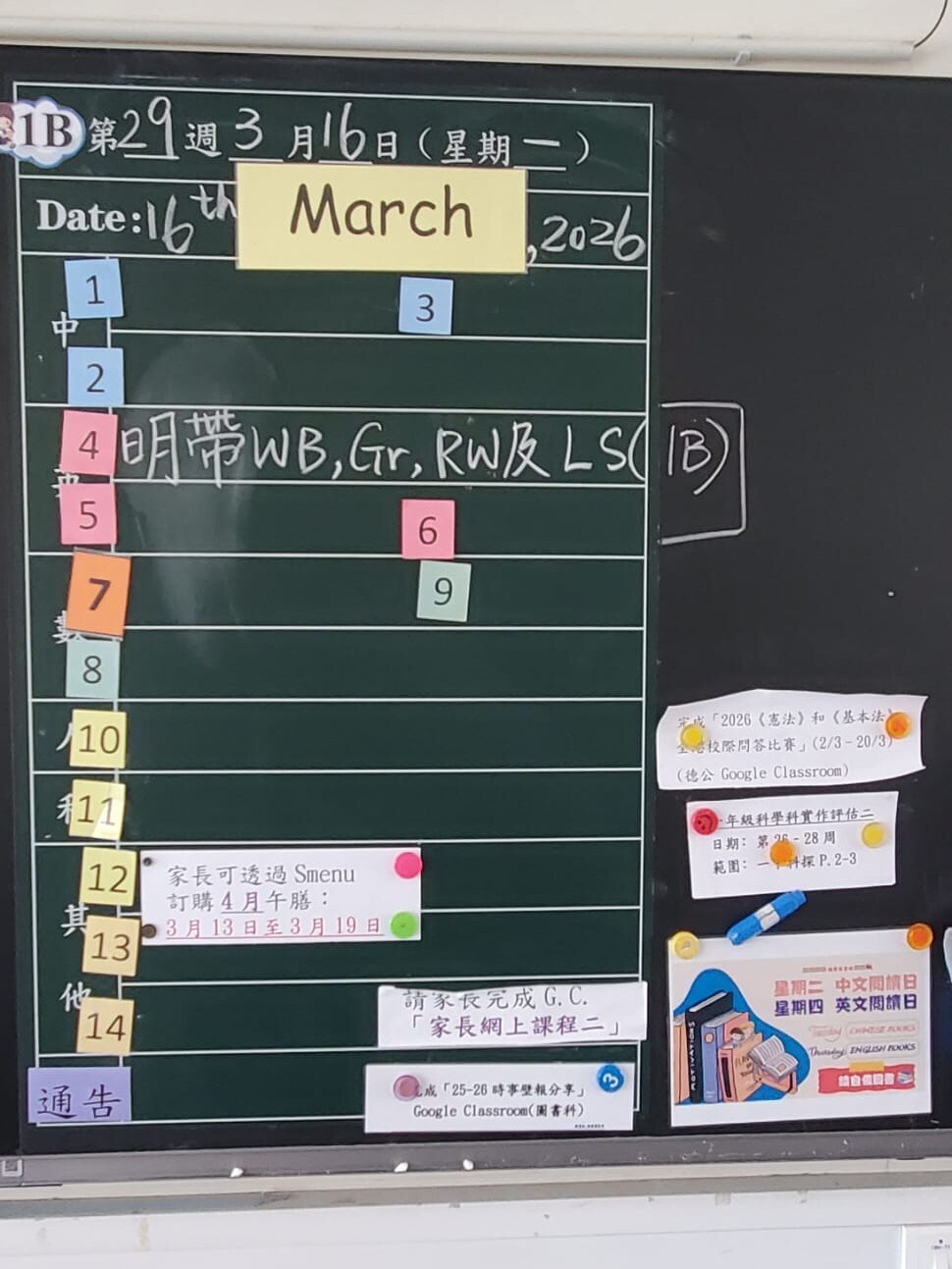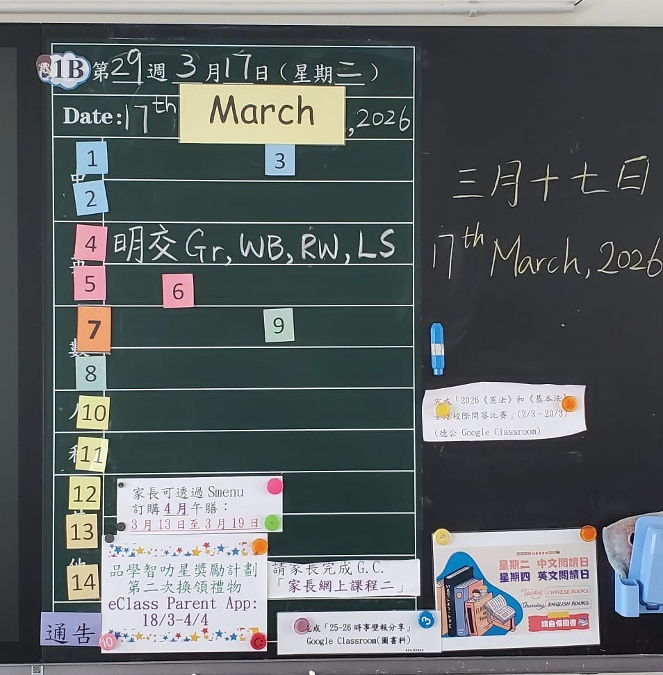| 1B | 星期一 | 星期二 | 星期三 | 星期四 | 星期五 |