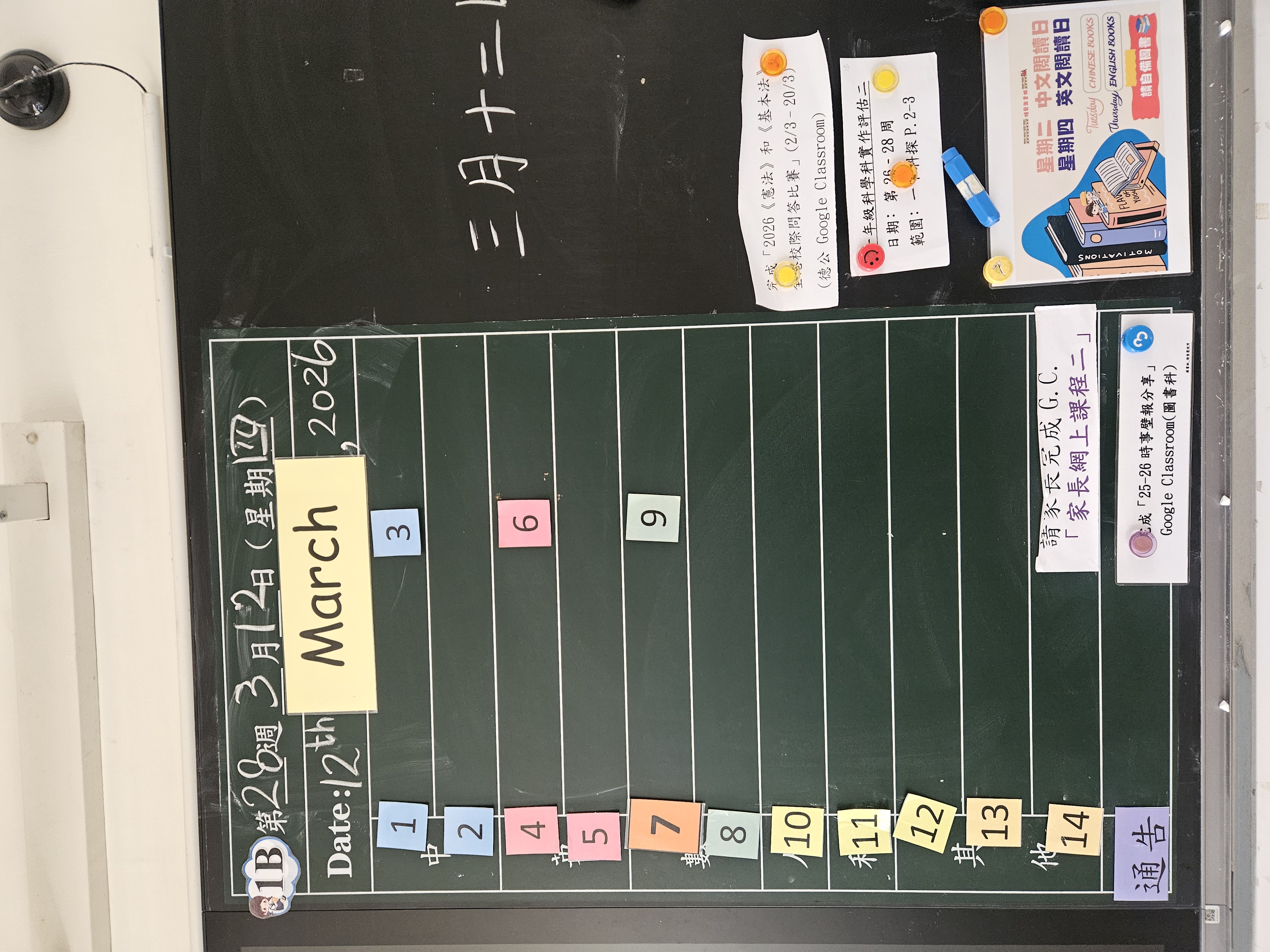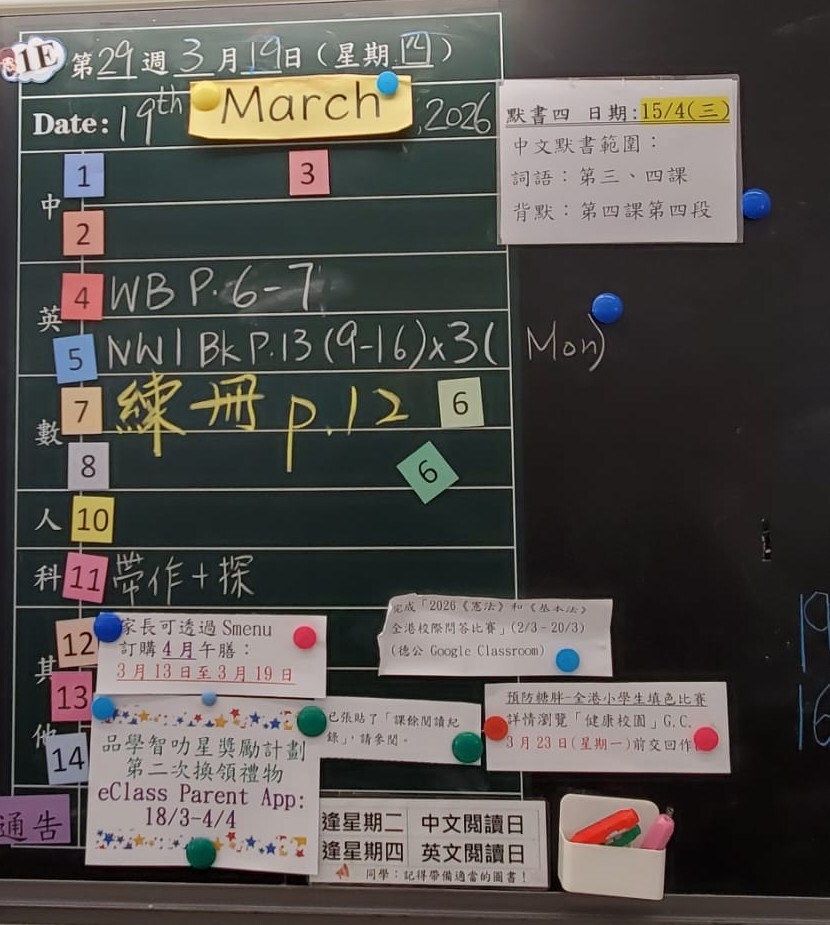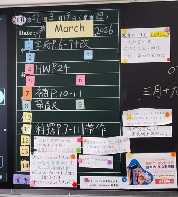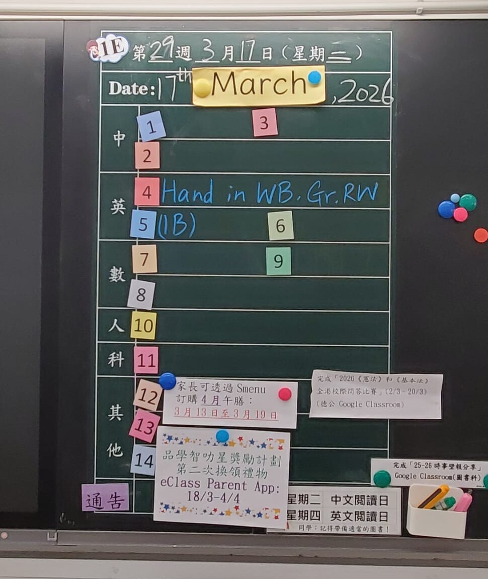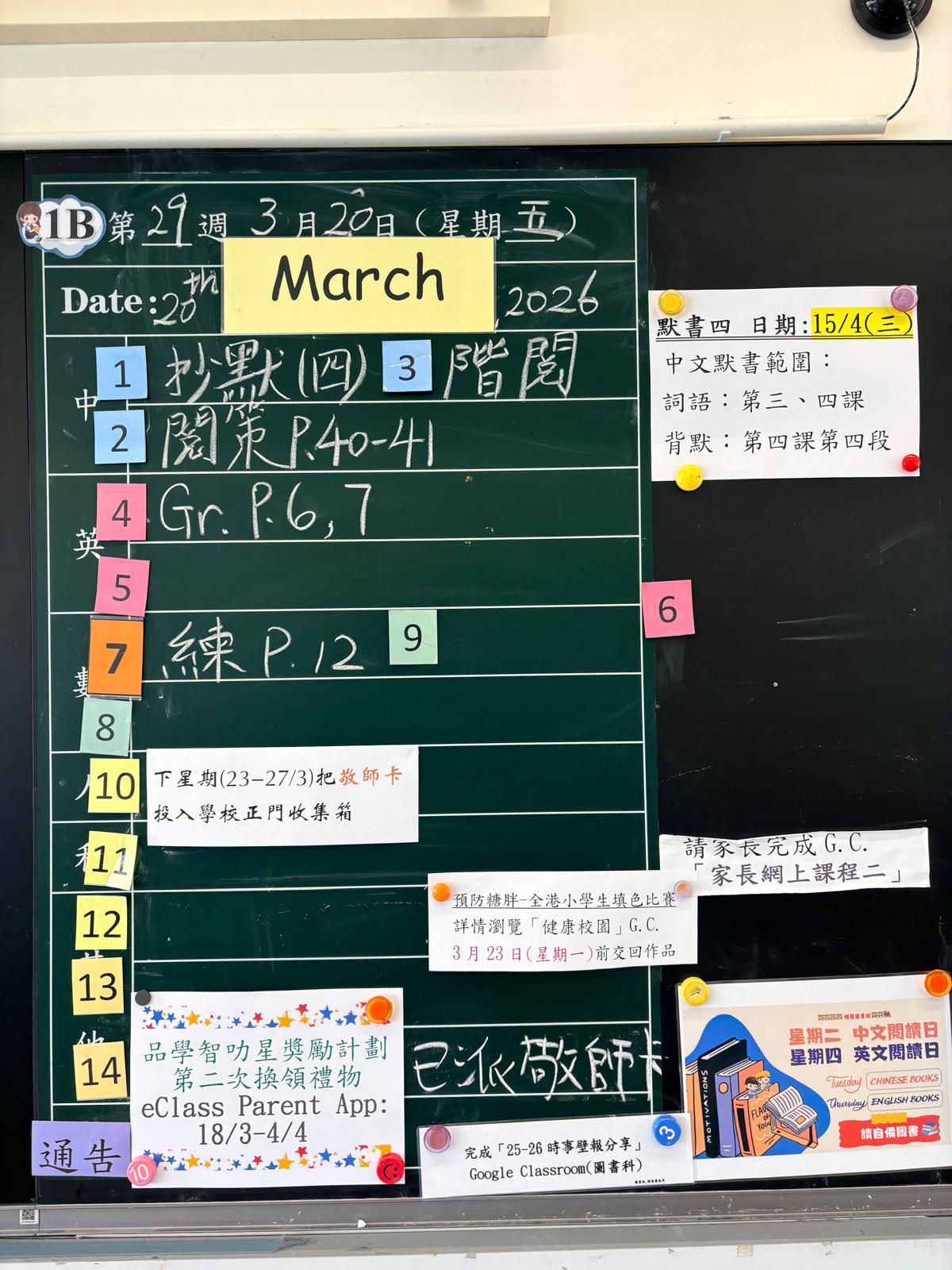 | 1B | 星期一 | 星期二 | 星期三 | 星期四 | 星期五 |