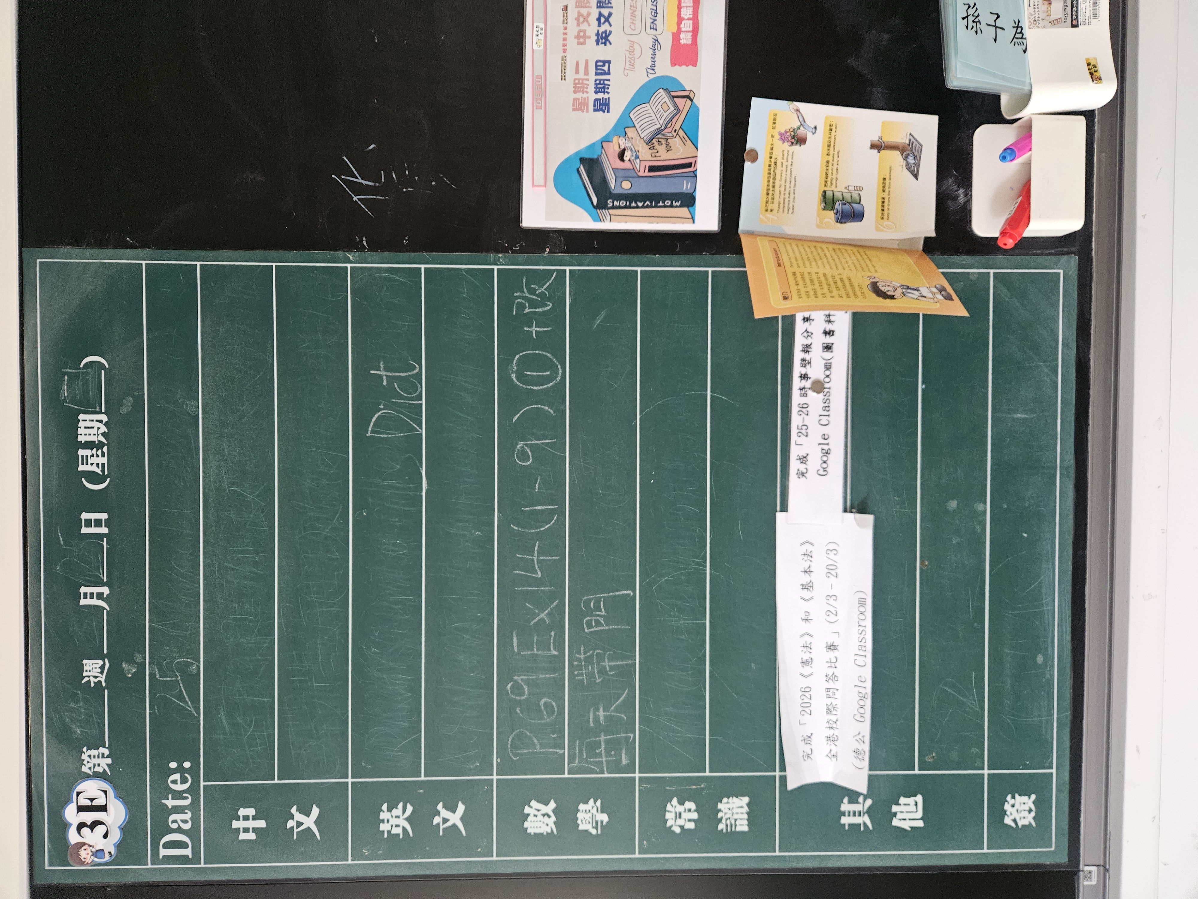 | 3E | 星期一 | 星期二 | 星期三 | 星期四 | 星期五 |