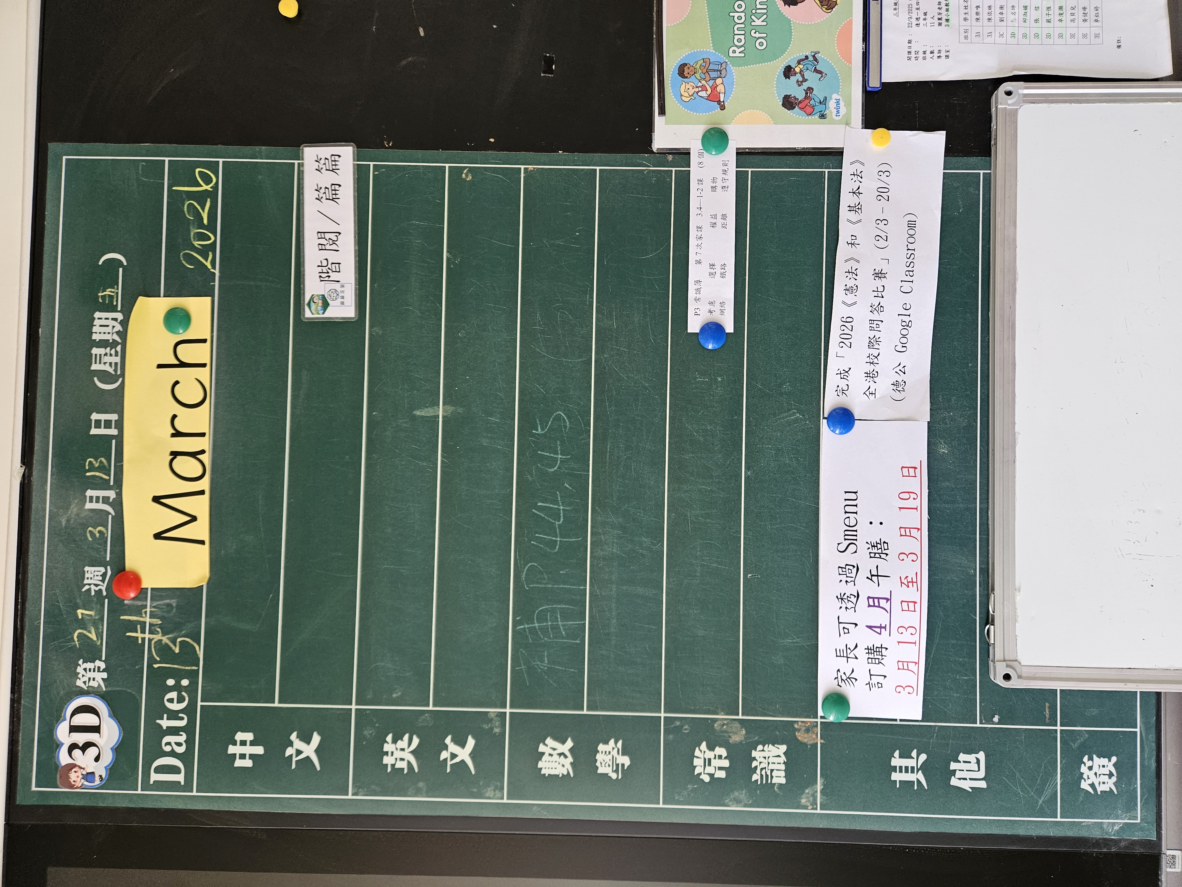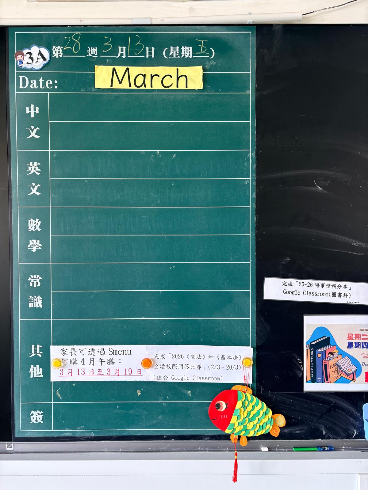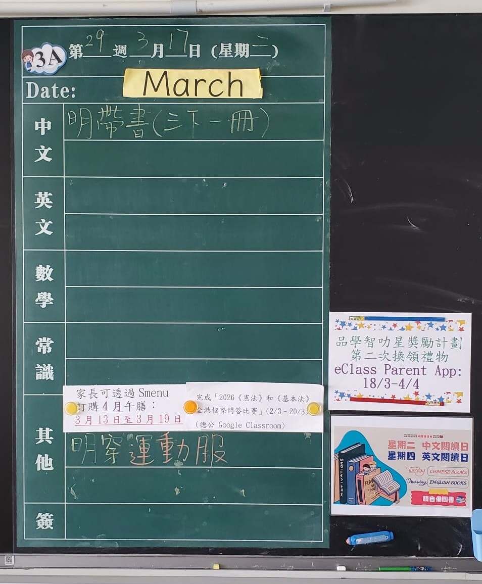 | 3A | 星期一 | 星期二 | 星期三 | 星期四 | 星期五 |