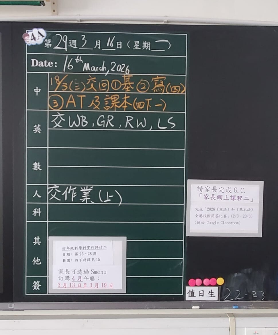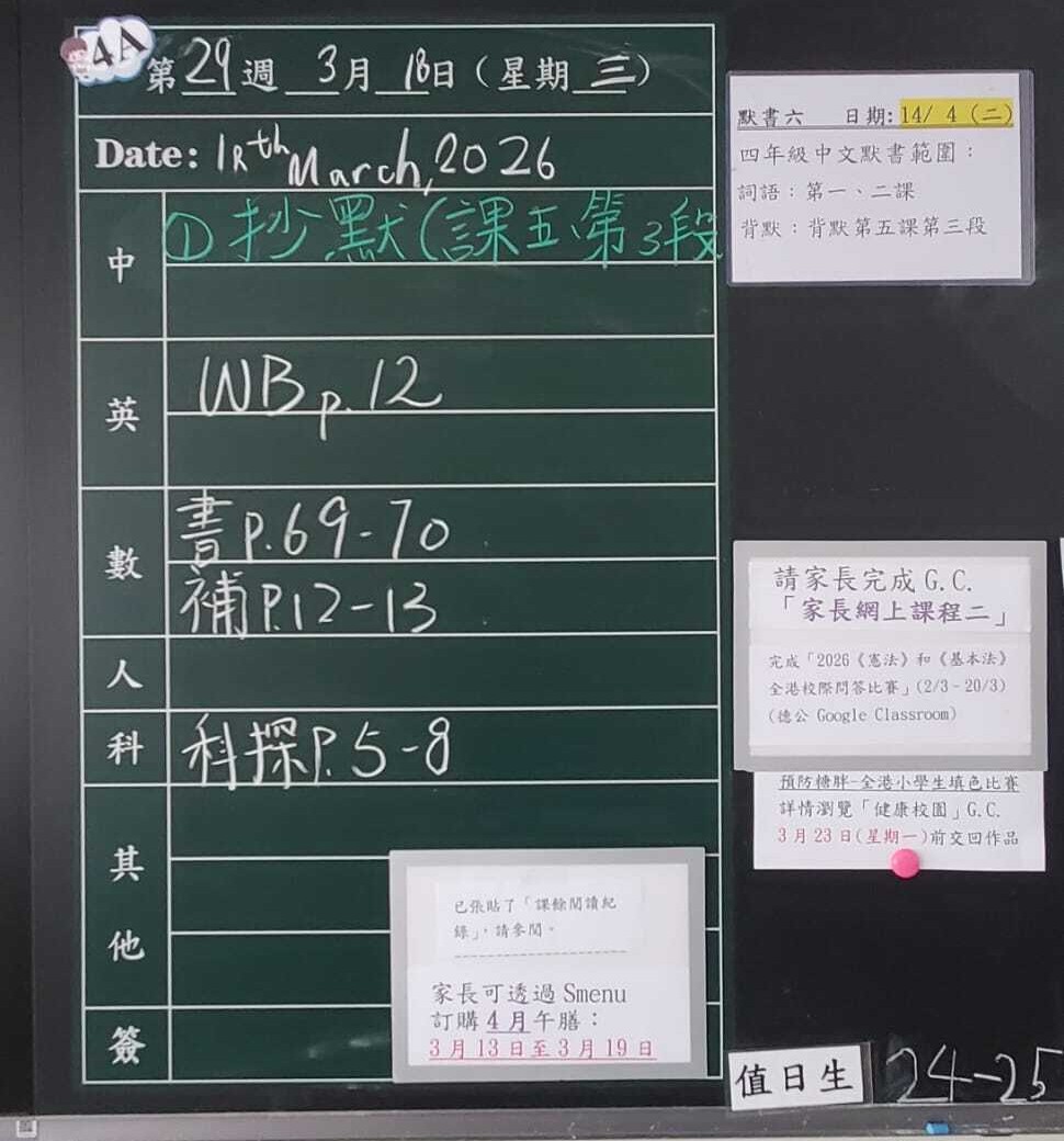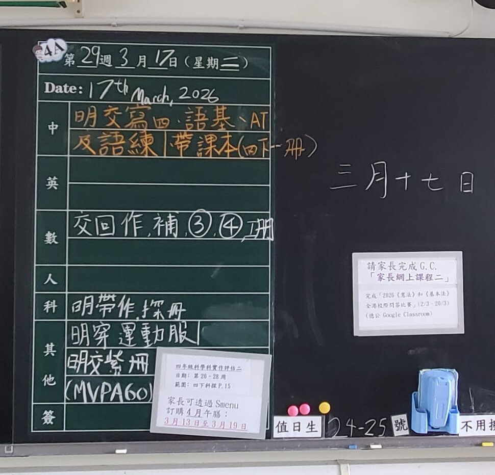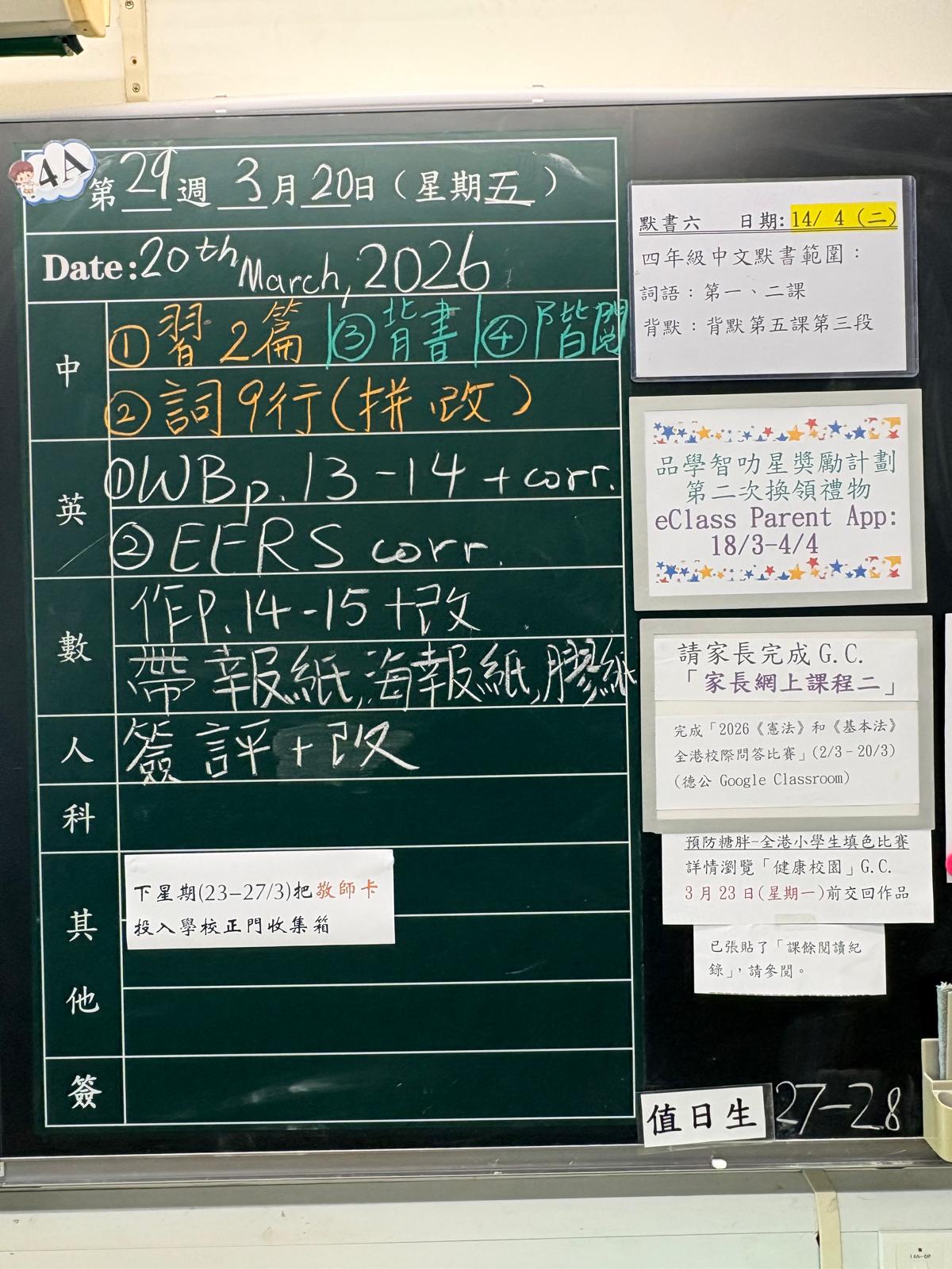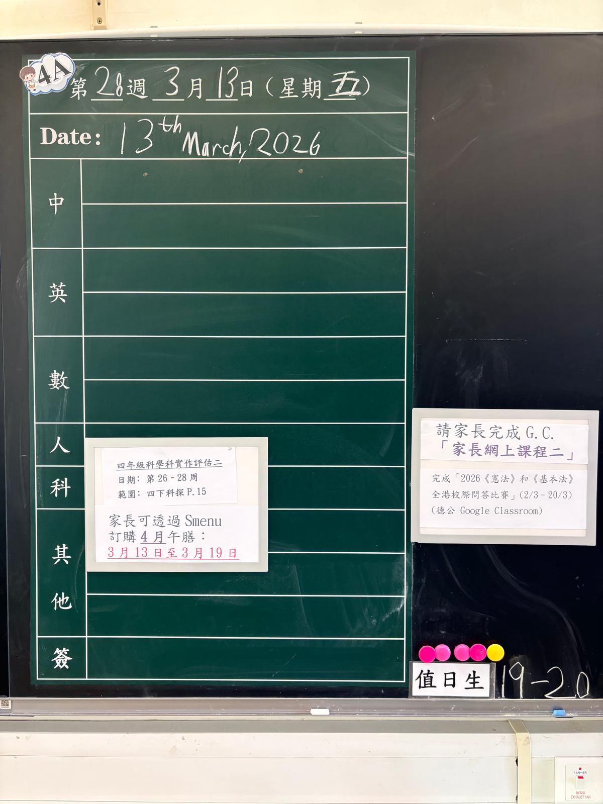 | 4A | 星期一 | 星期二 | 星期三 | 星期四 | 星期五 |