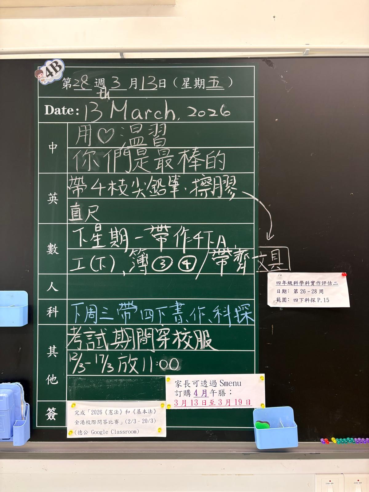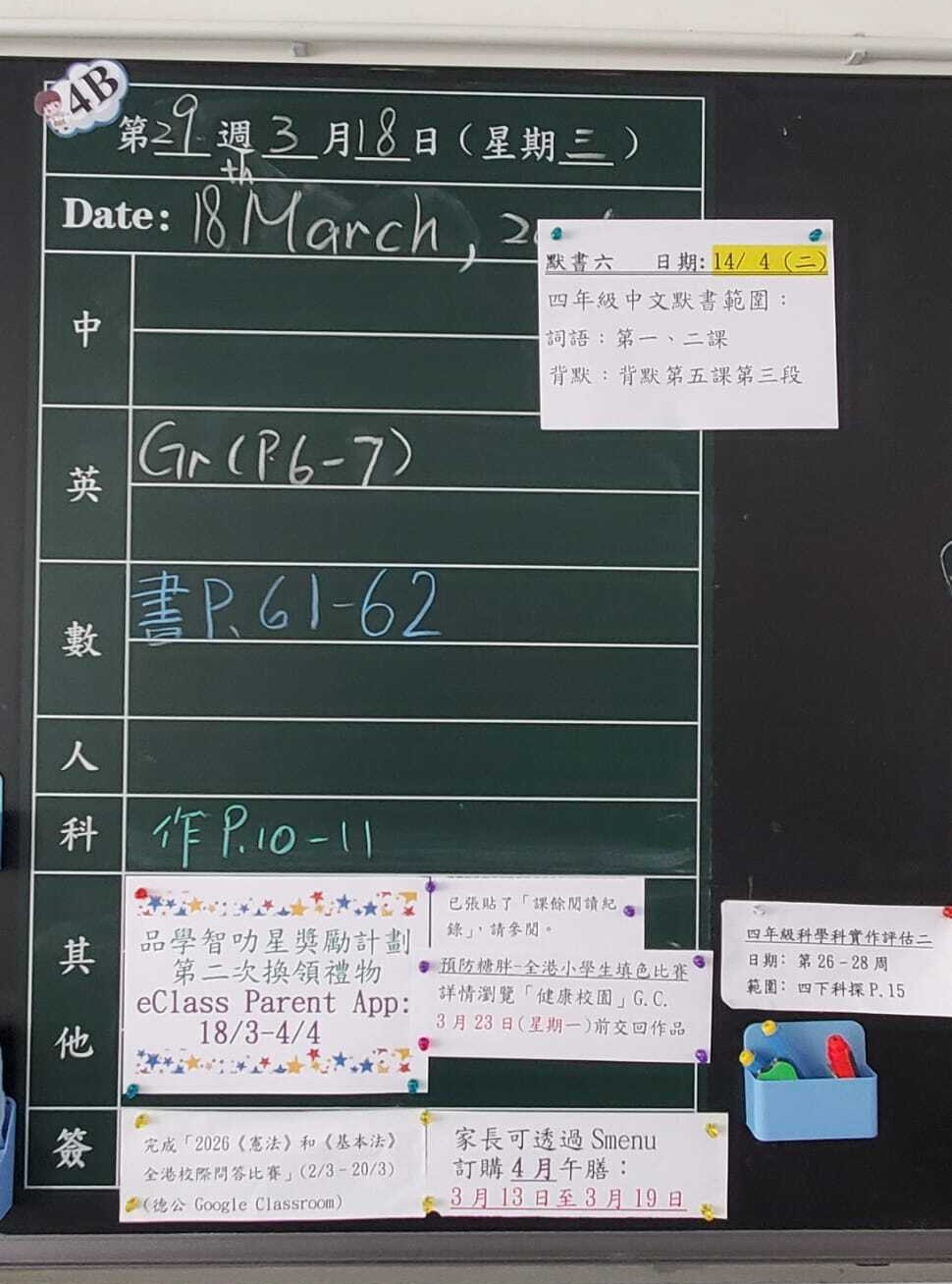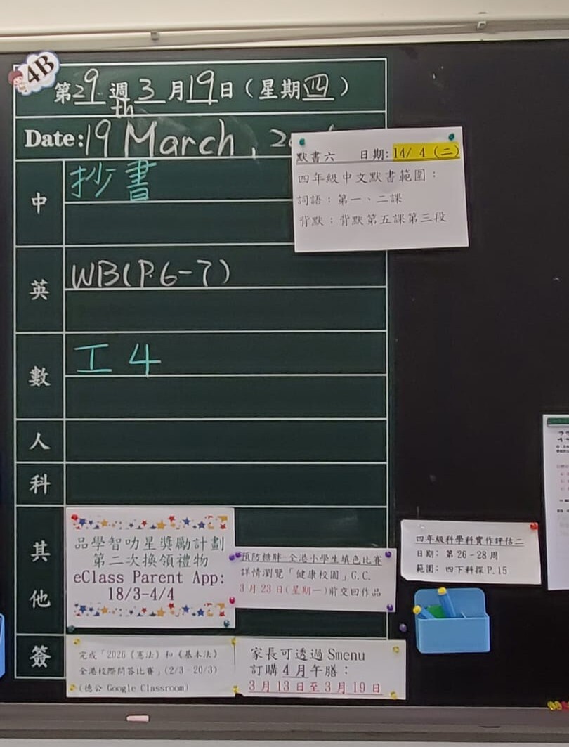 | 4B | 星期一 | 星期二 | 星期三 | 星期四 | 星期五 |