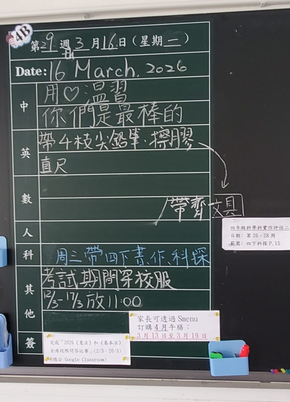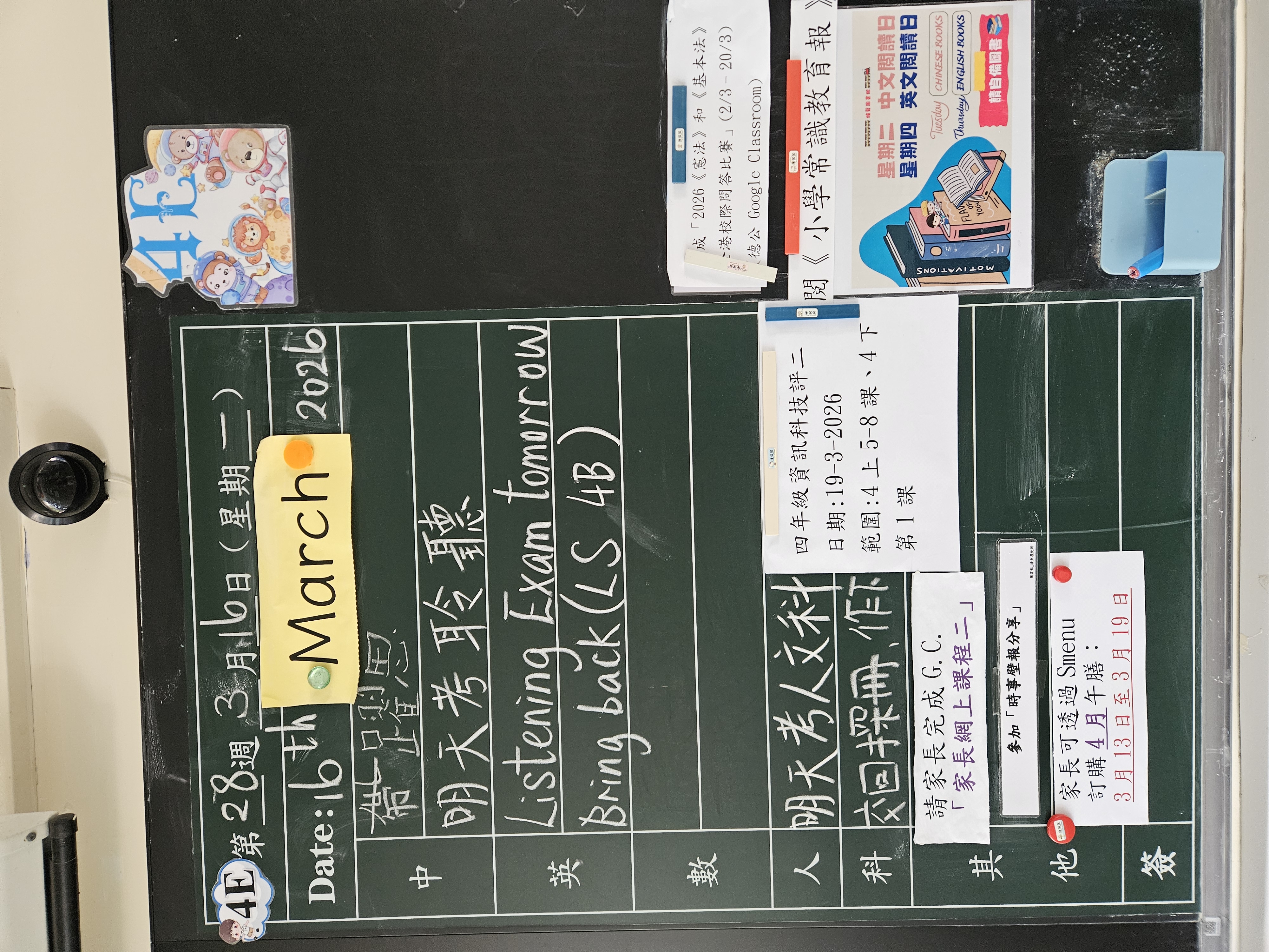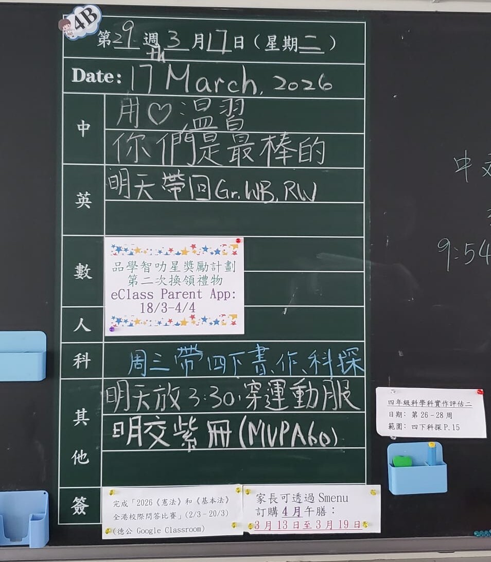 | 4B | 星期一 | 星期二 | 星期三 | 星期四 | 星期五 |