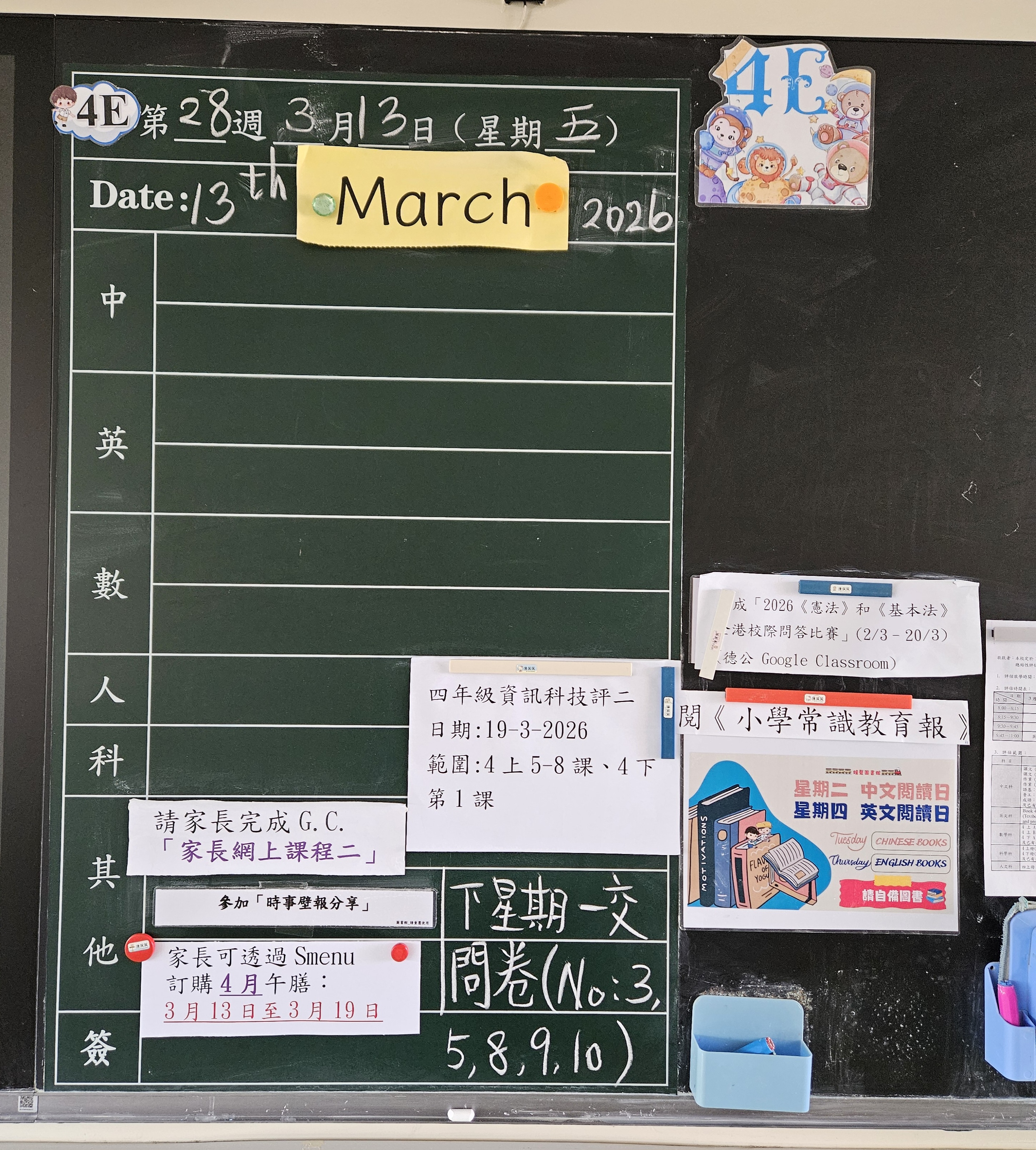 | 4C | 星期一 | 星期二 | 星期三 | 星期四 | 星期五 |