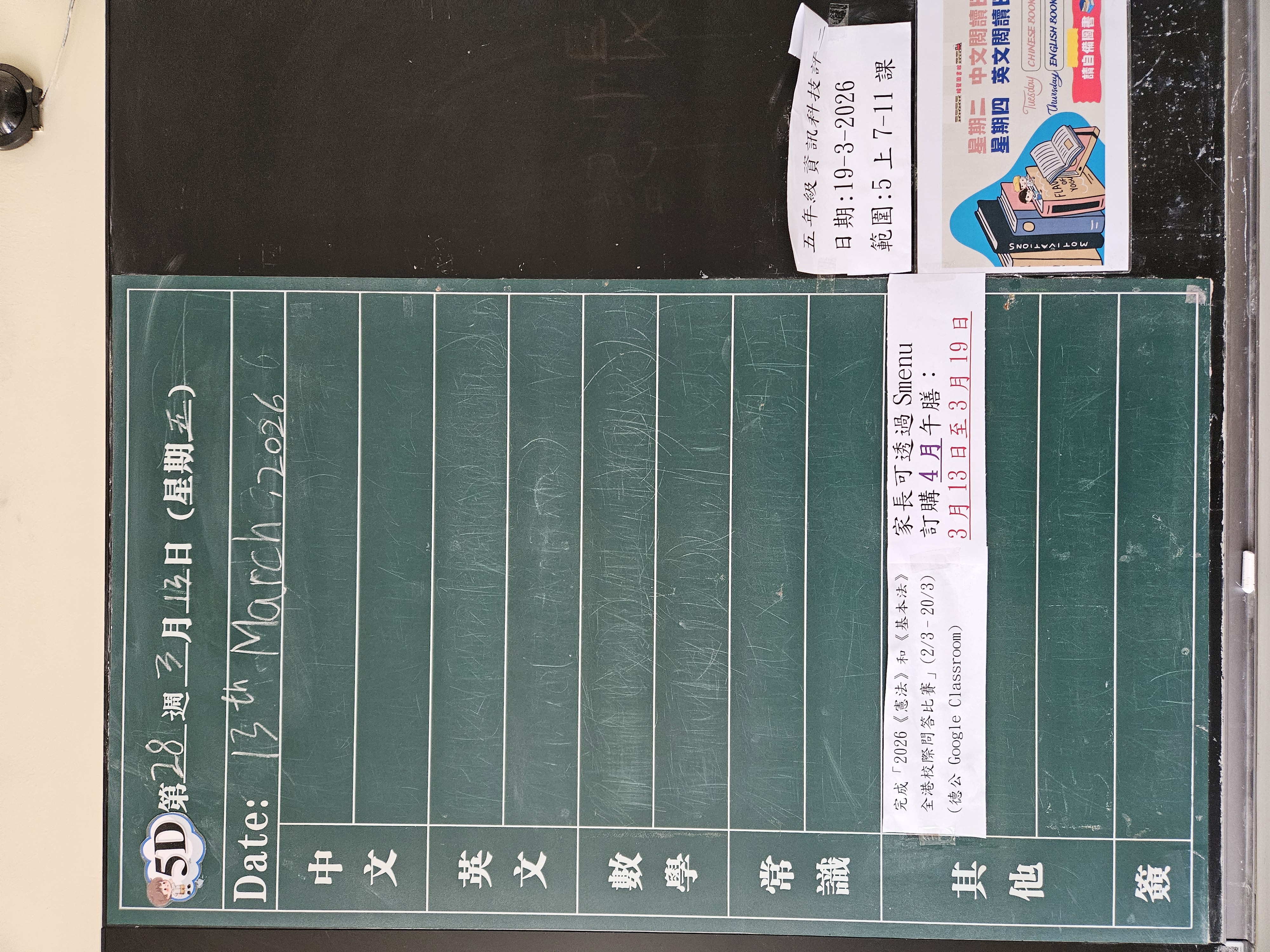 | 5D | 星期一 | 星期二 | 星期三 | 星期四 | 星期五 |