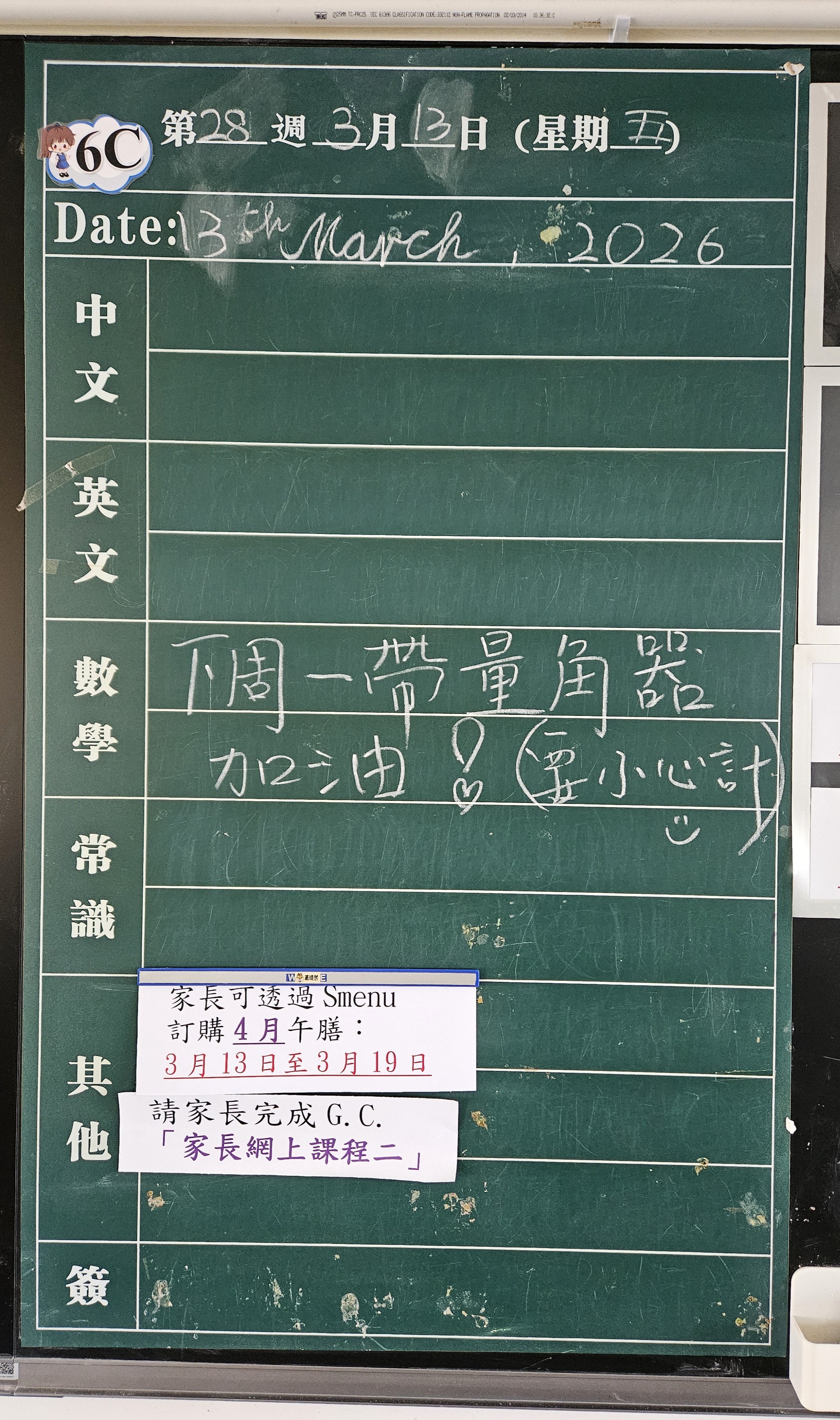 | 6C | 星期一 | 星期二 | 星期三 | 星期四 | 星期五 |