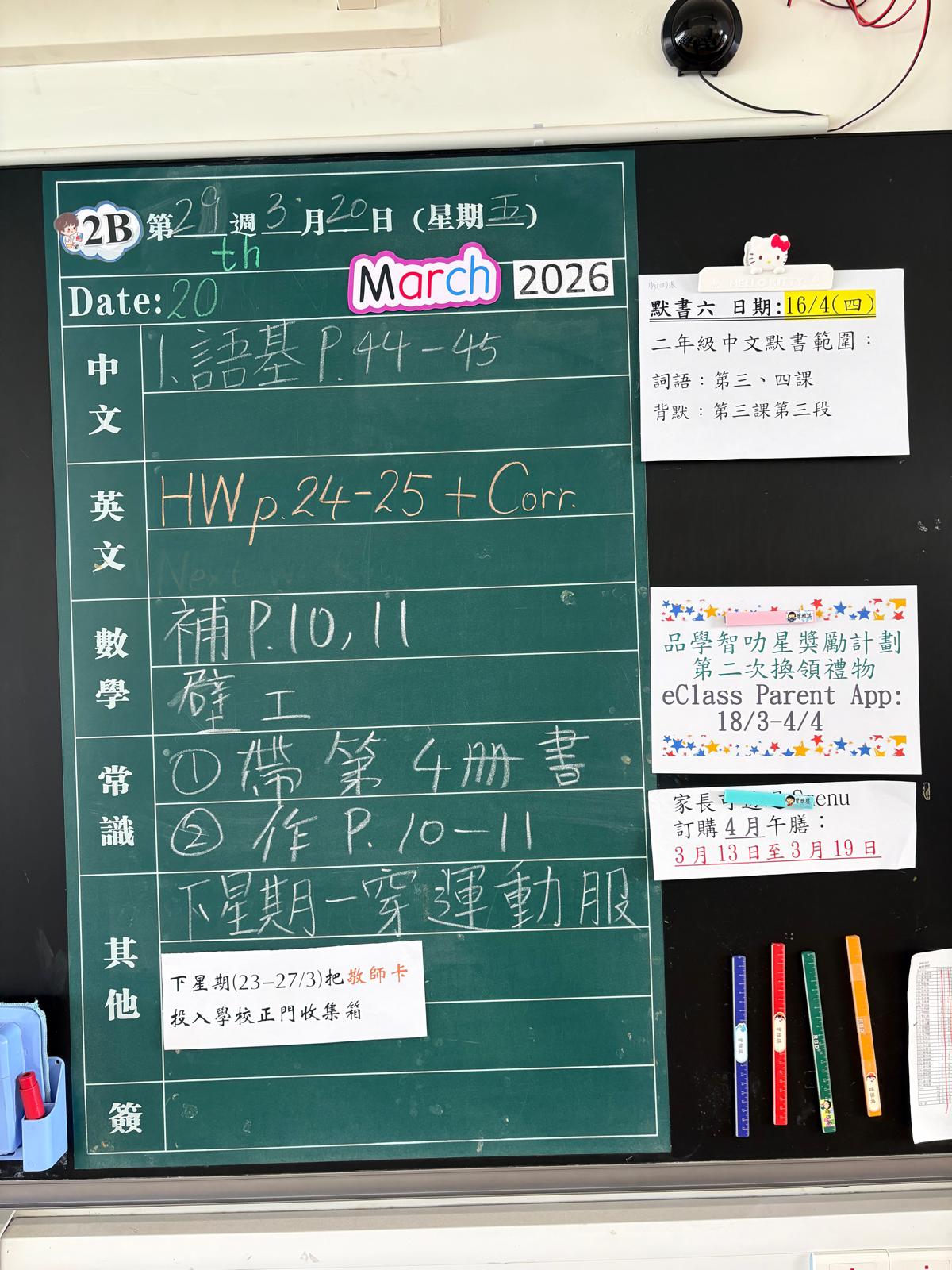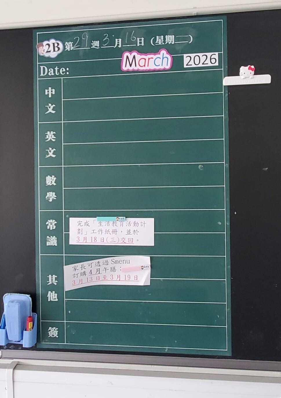 | 2B | 星期一 | 星期二 | 星期三 | 星期四 | 星期五 |