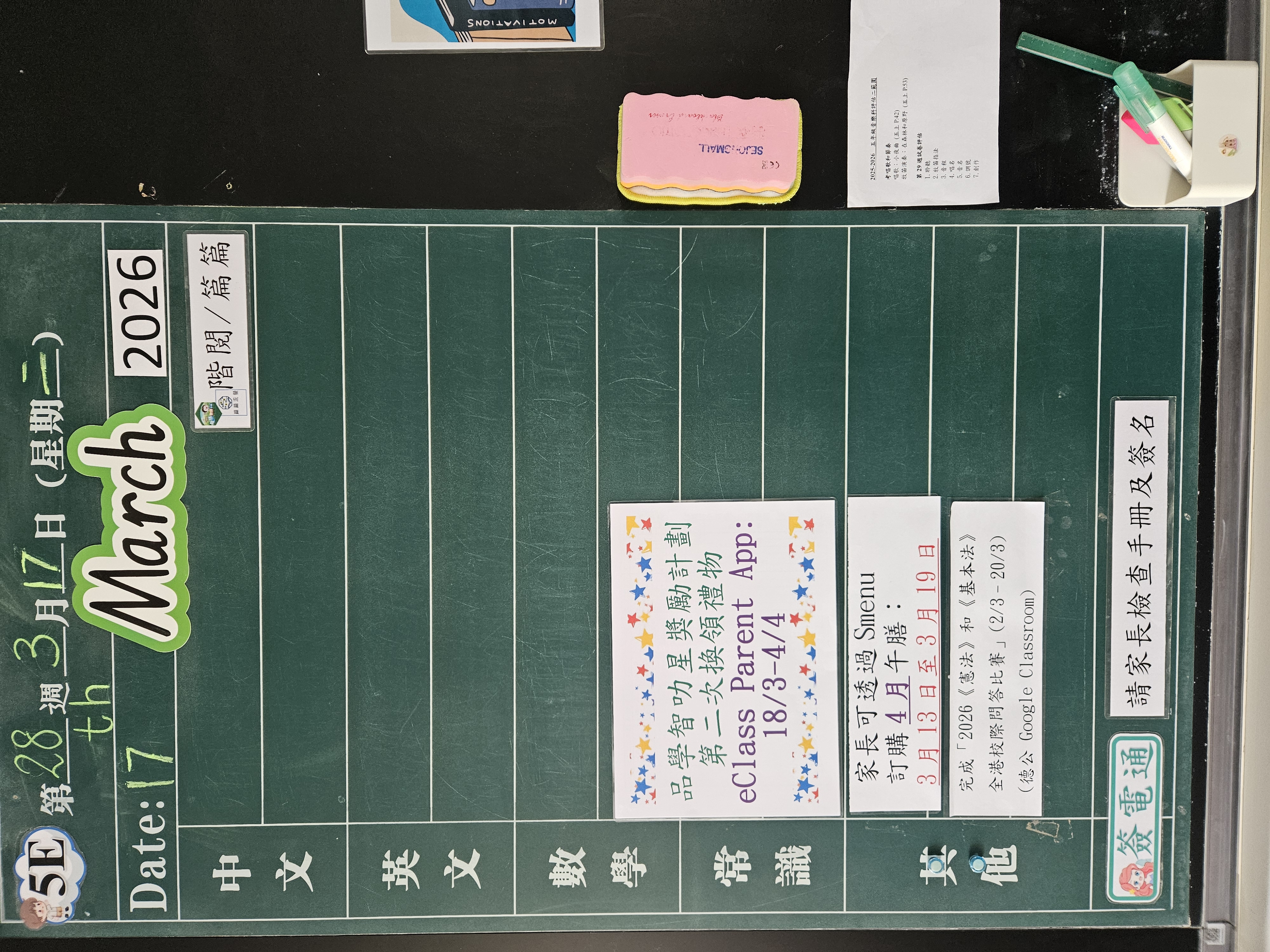 | 5A | 星期一 | 星期二 | 星期三 | 星期四 | 星期五 |