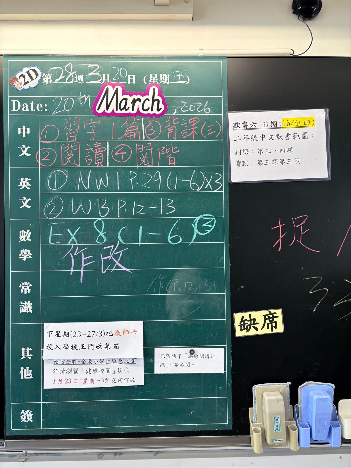 | 2D | 星期一 | 星期二 | 星期三 | 星期四 | 星期五 |