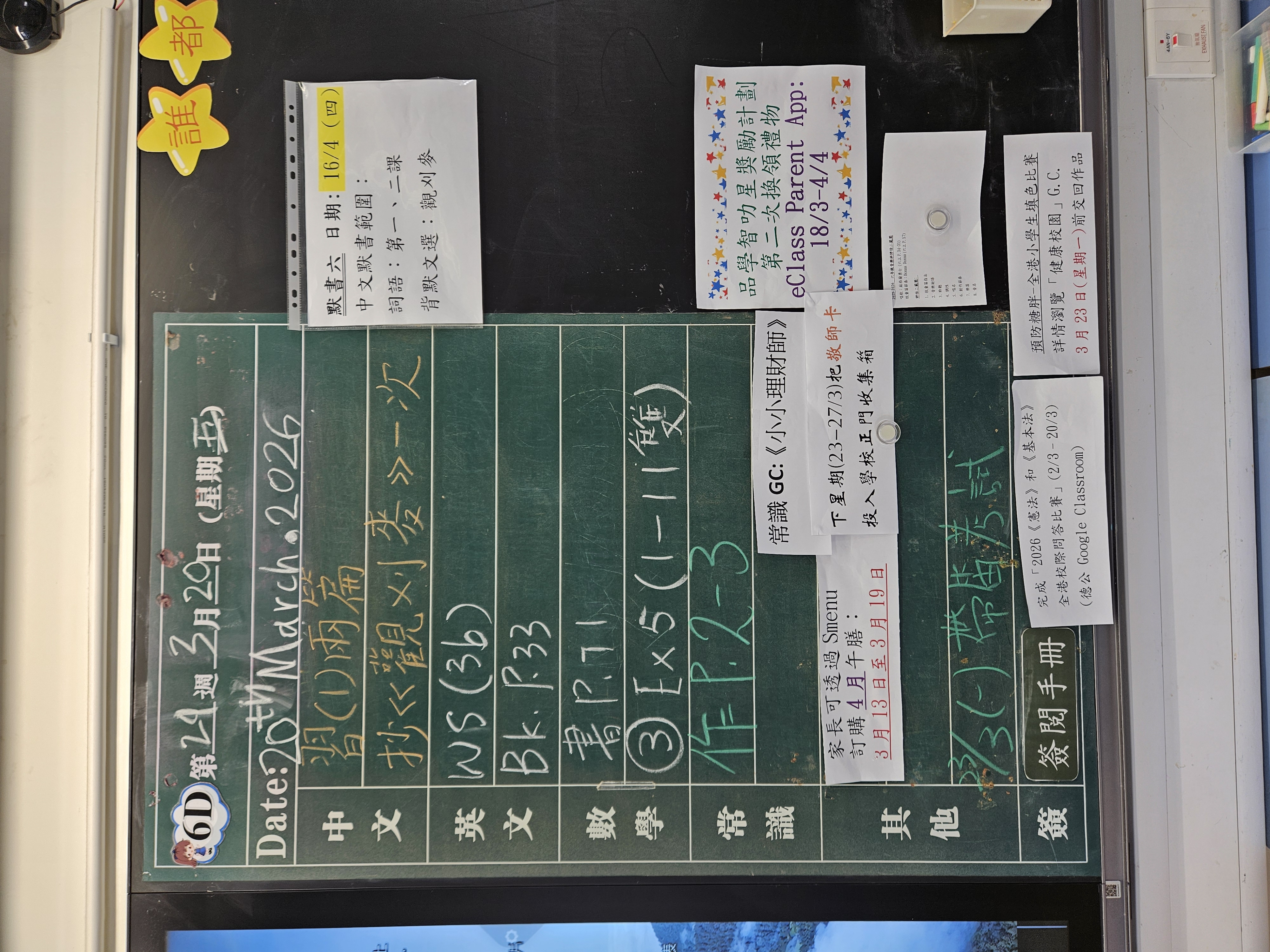 | 6D | 星期一 | 星期二 | 星期三 | 星期四 | 星期五 |