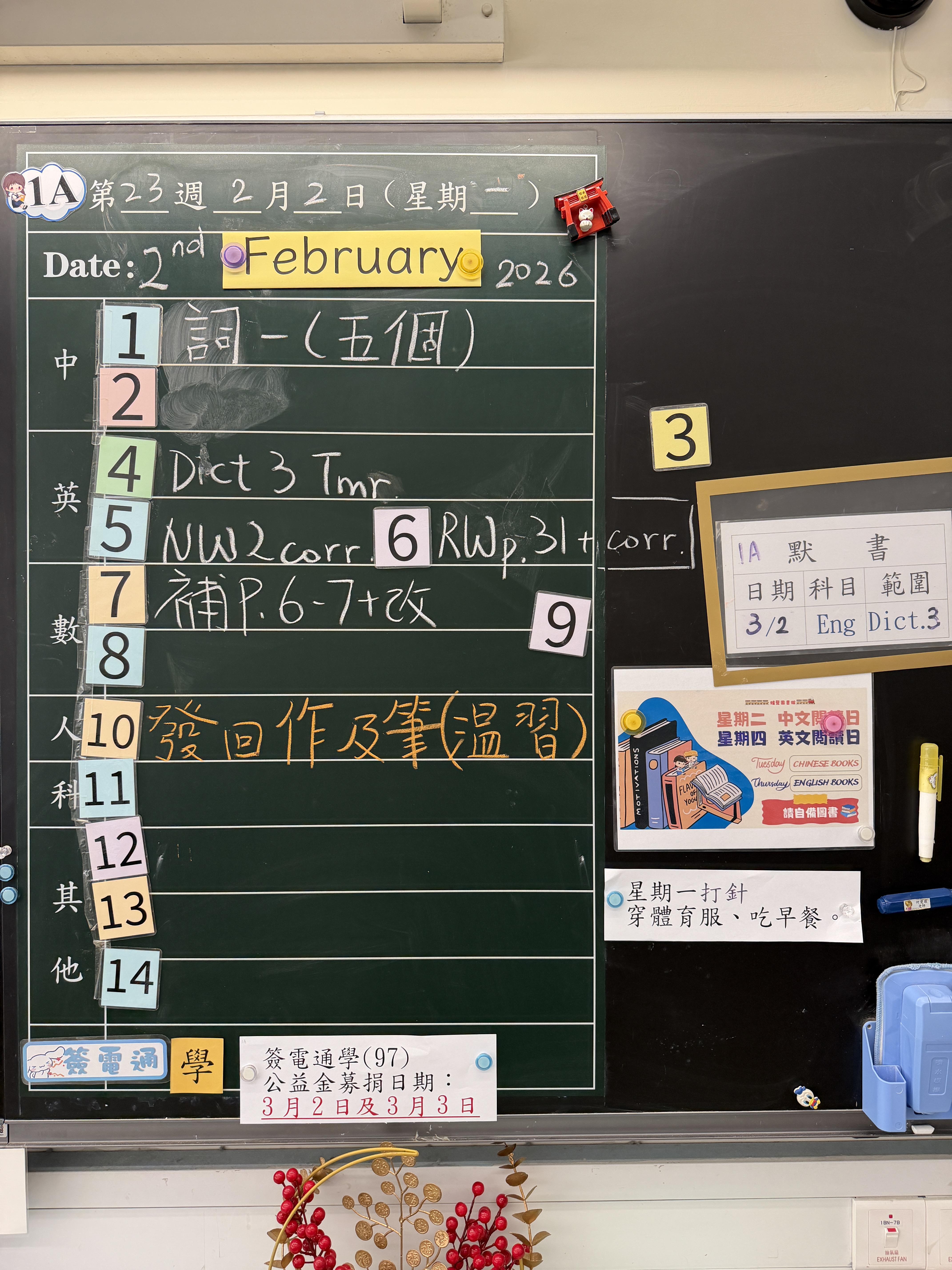 | 1A | 星期一 | 星期二 | 星期三 | 星期四 | 星期五 |