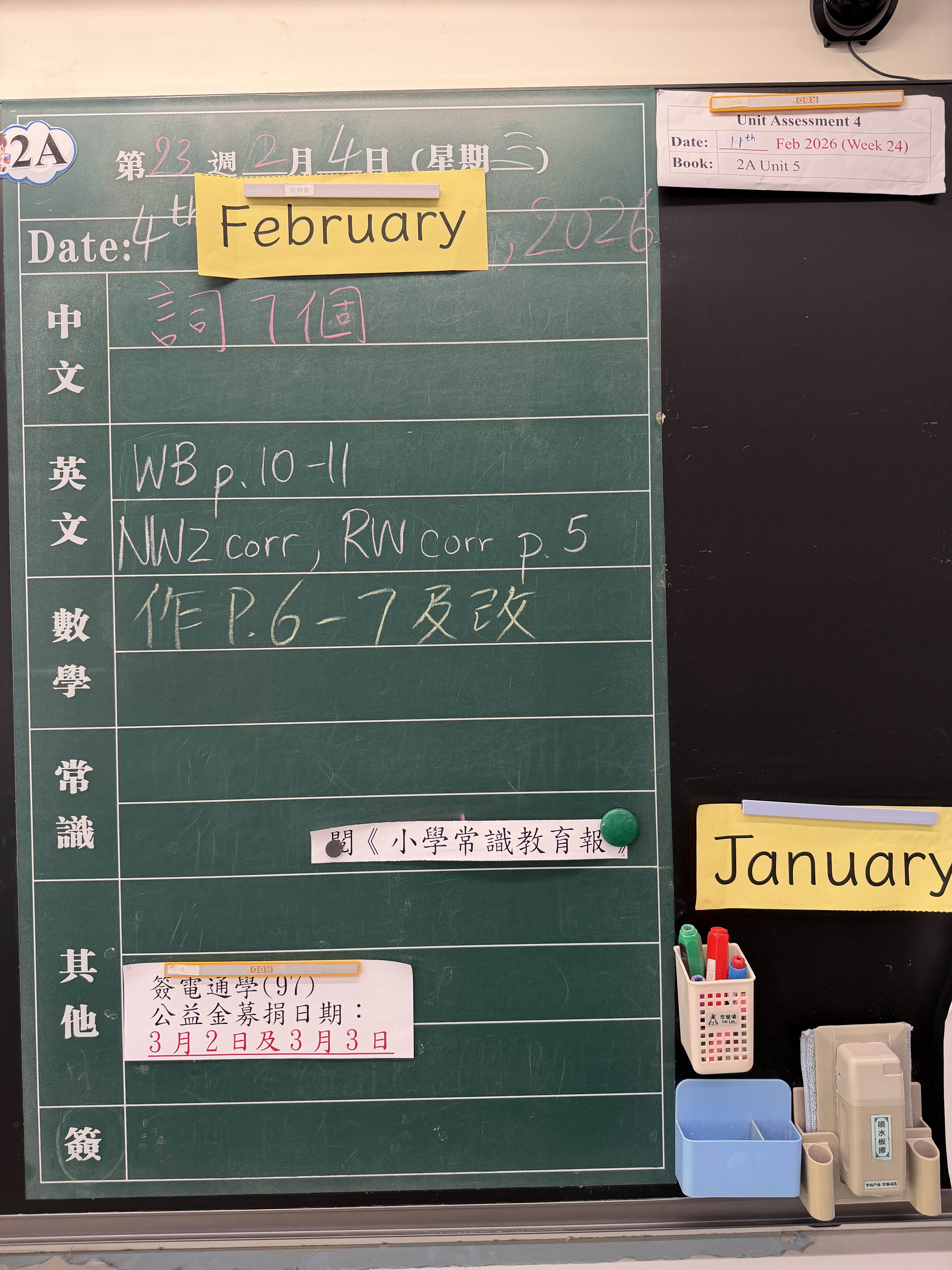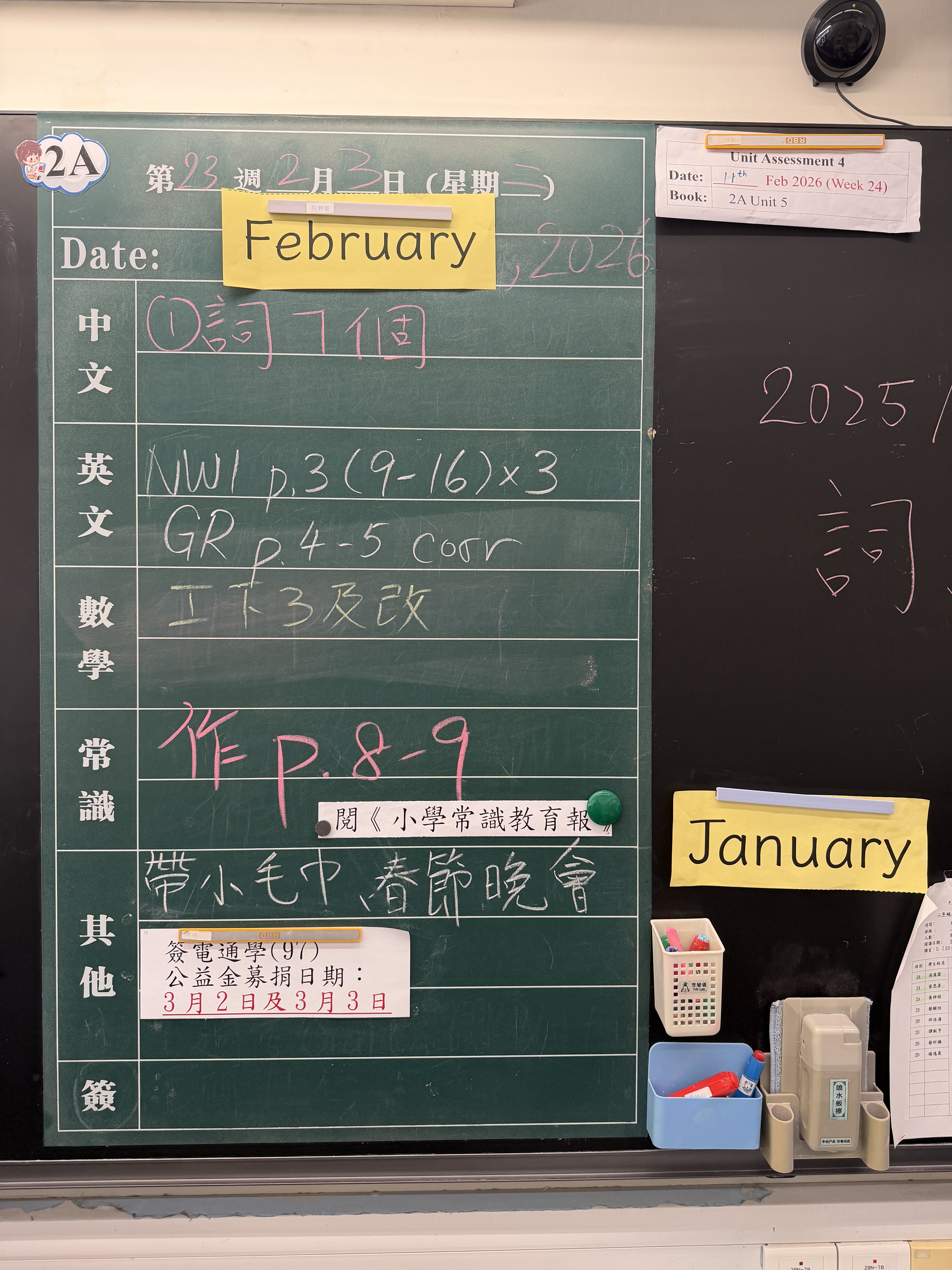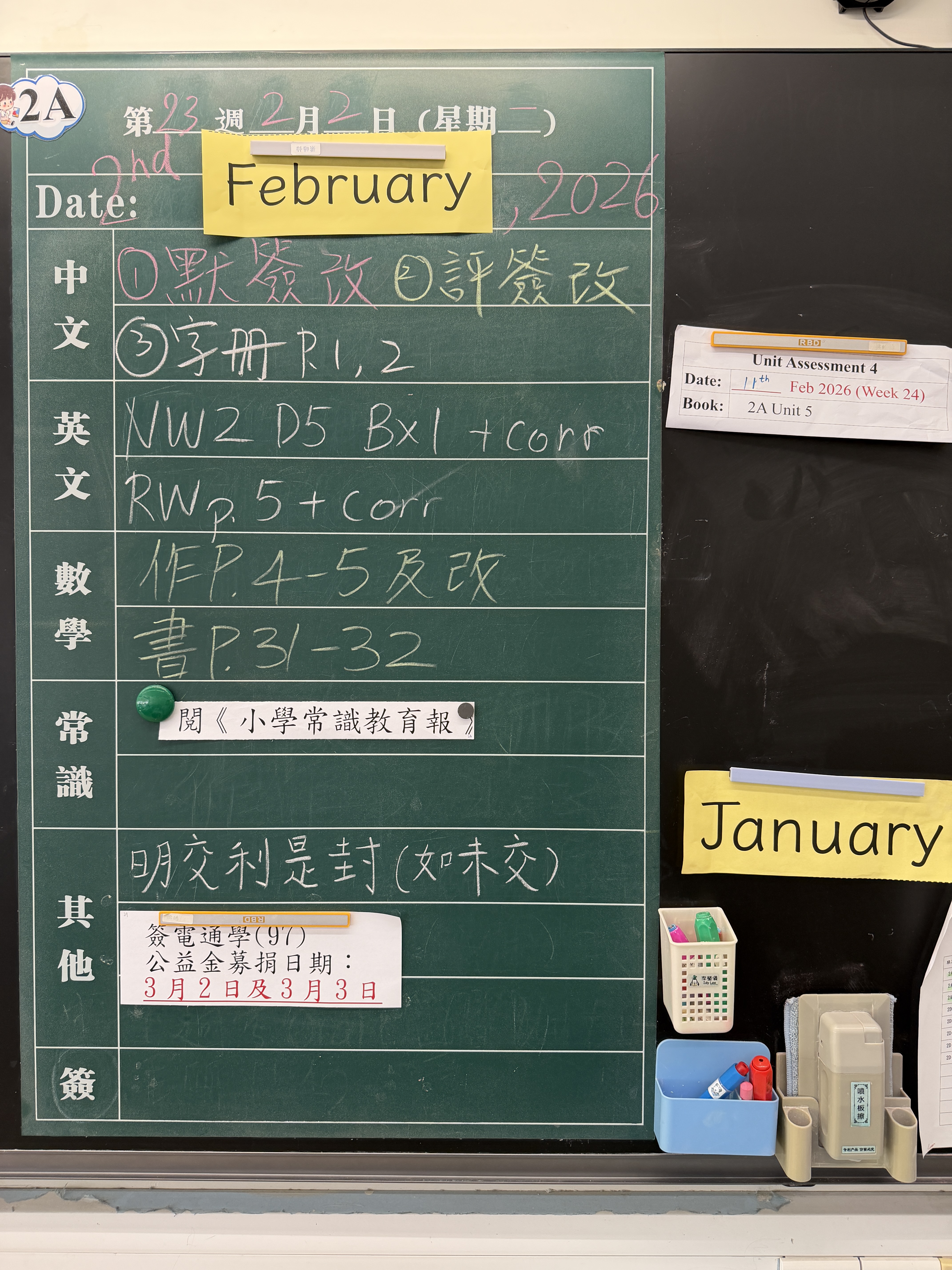 | 2A | 星期一 | 星期二 | 星期三 | 星期四 | 星期五 |