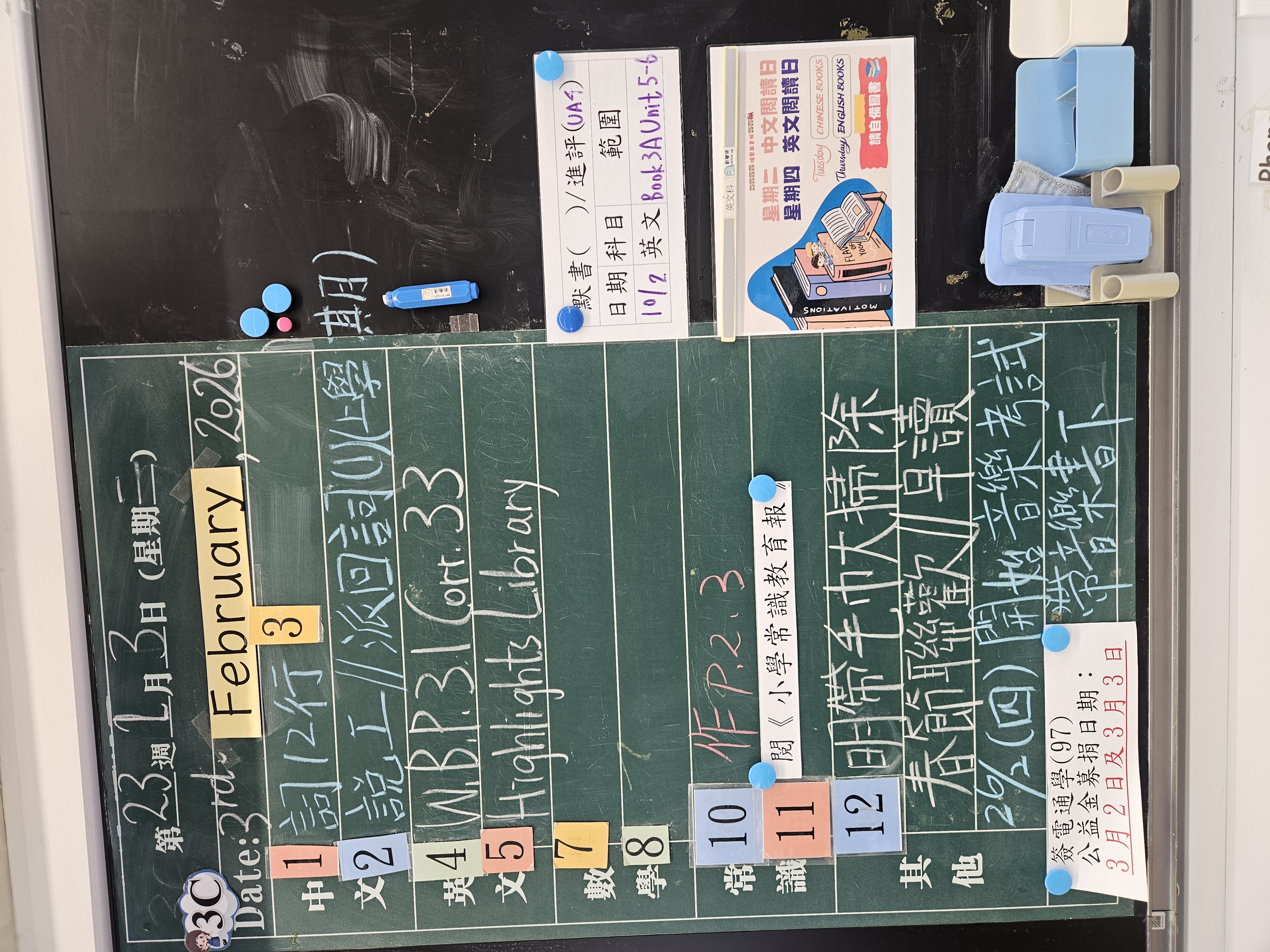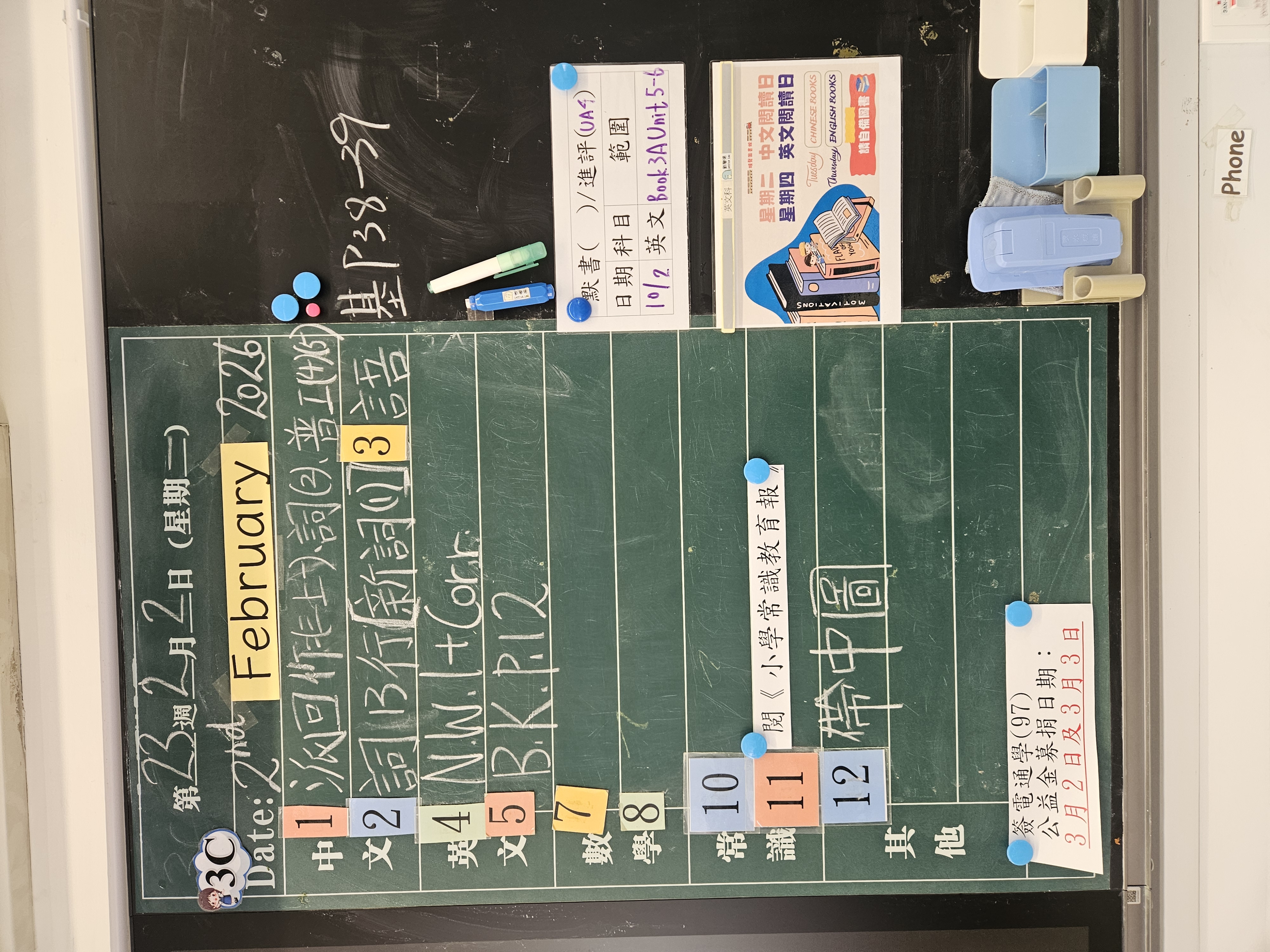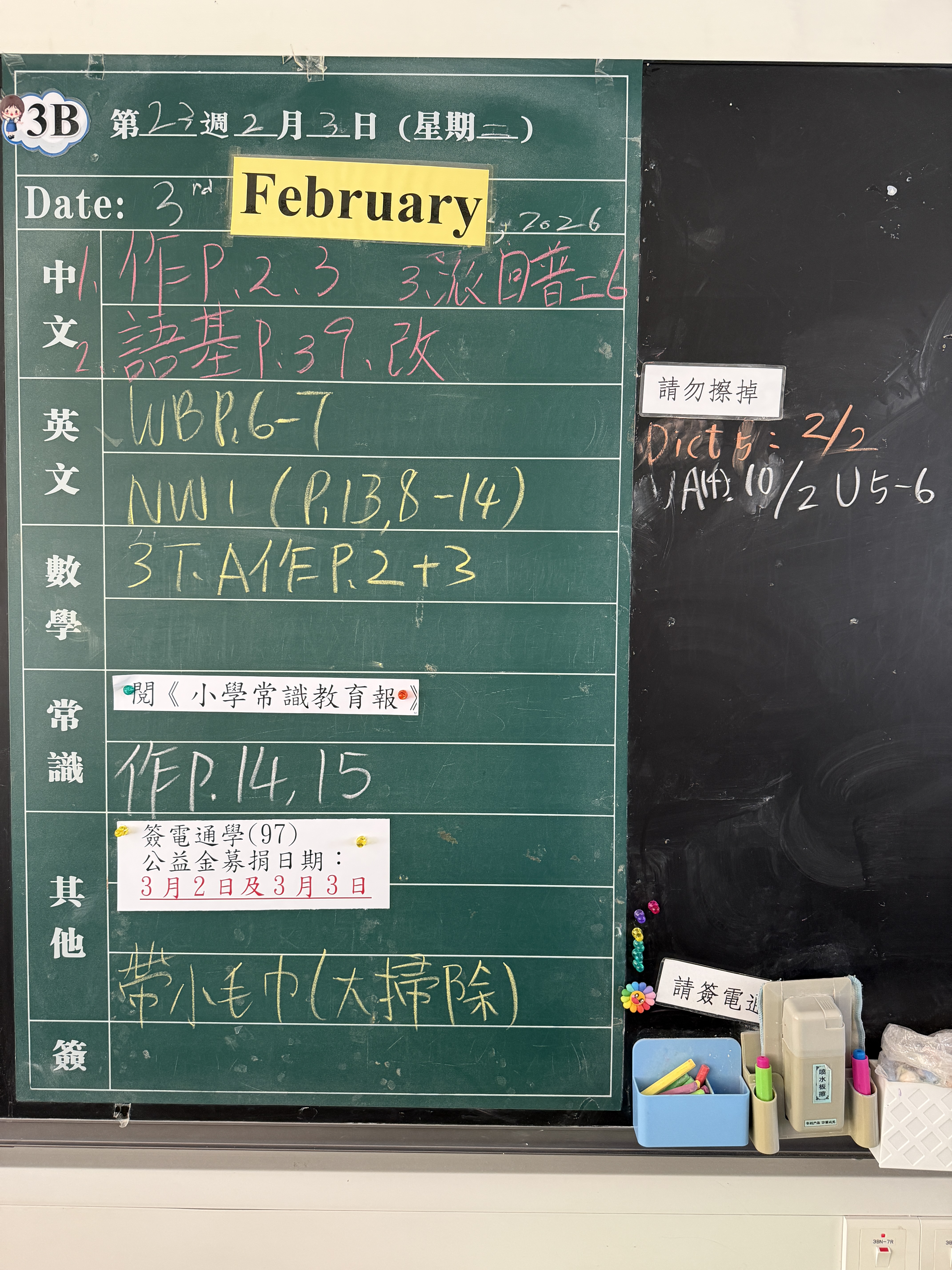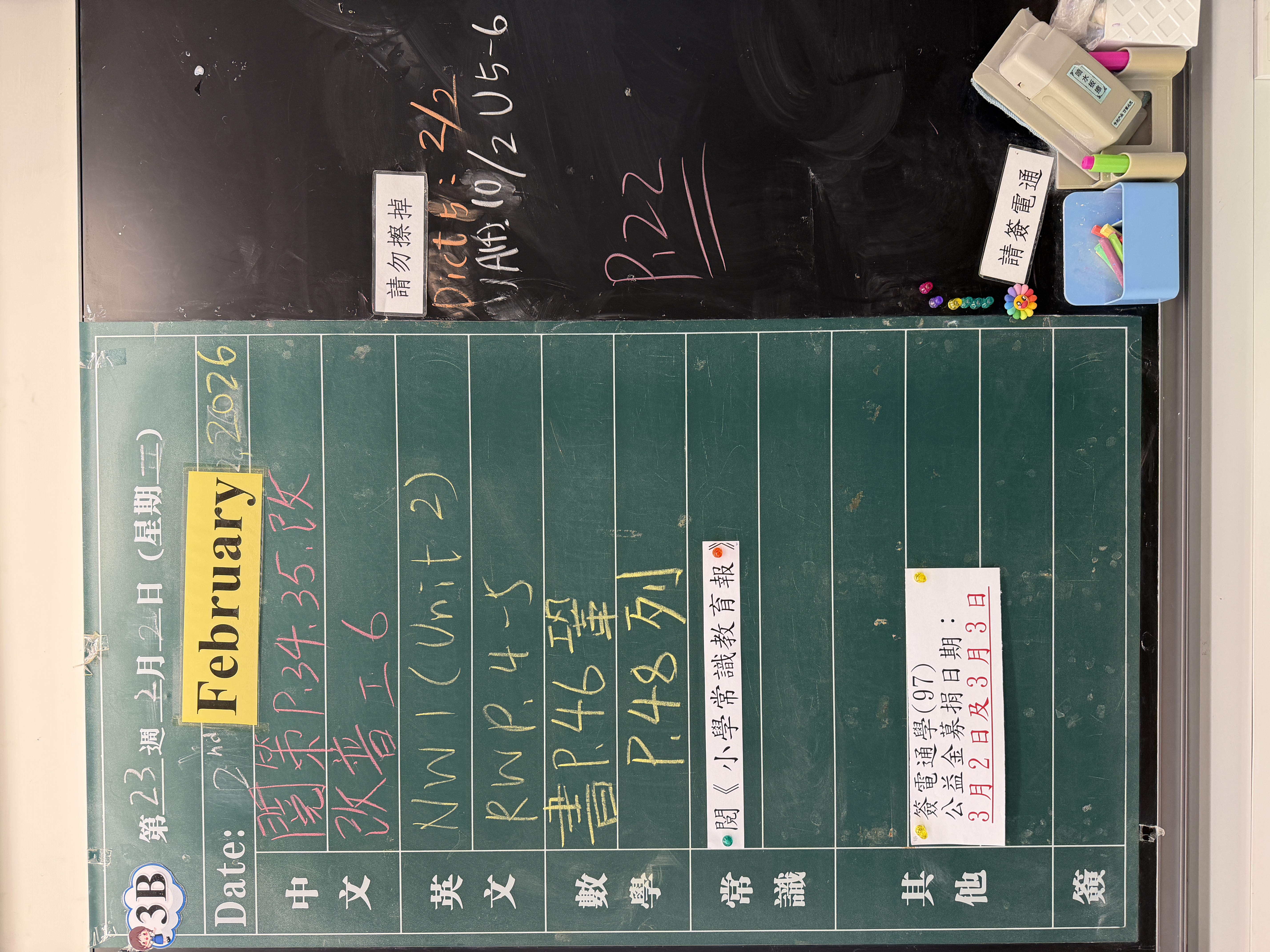 | 3B | 星期一 | 星期二 | 星期三 | 星期四 | 星期五 |