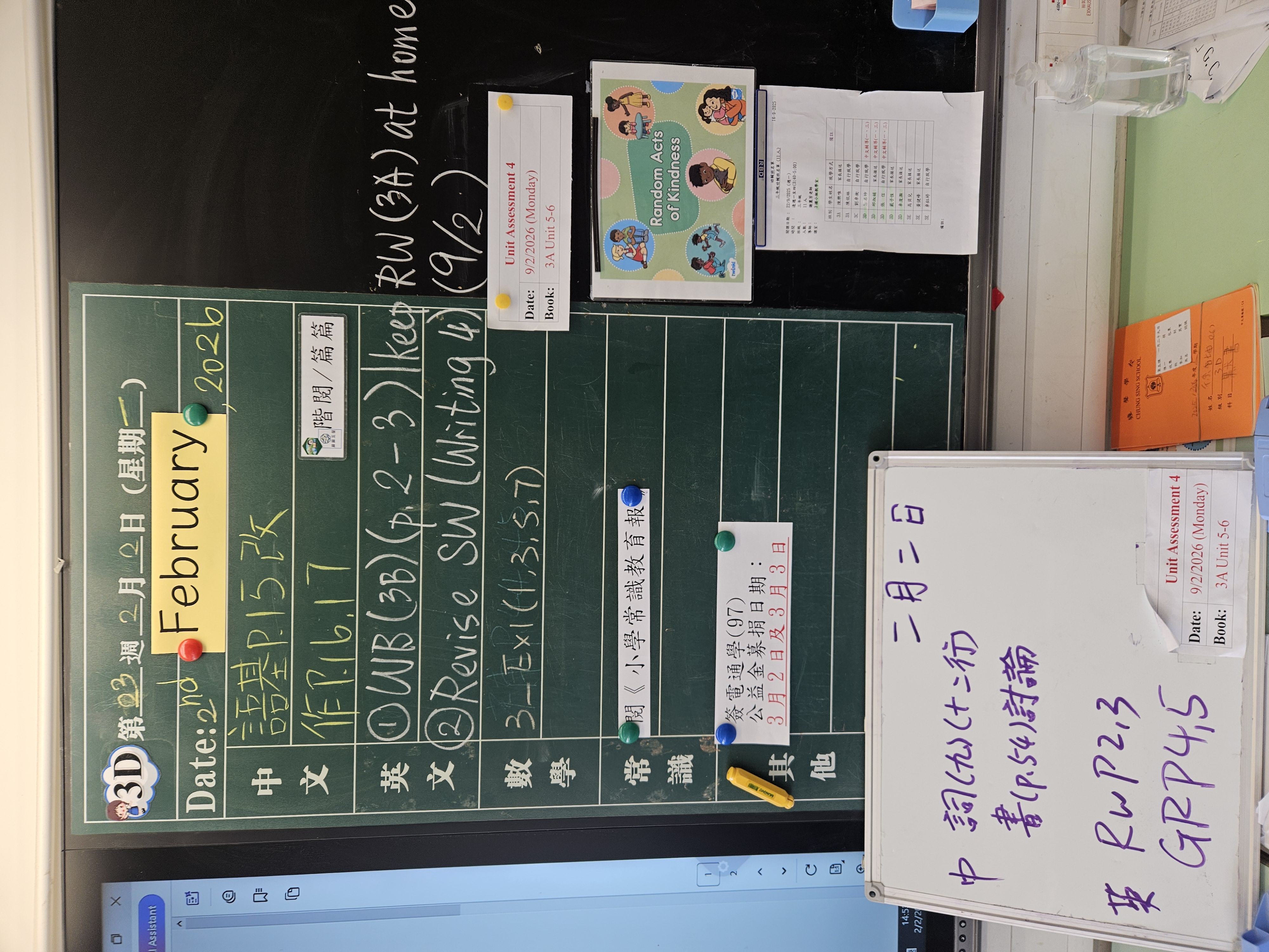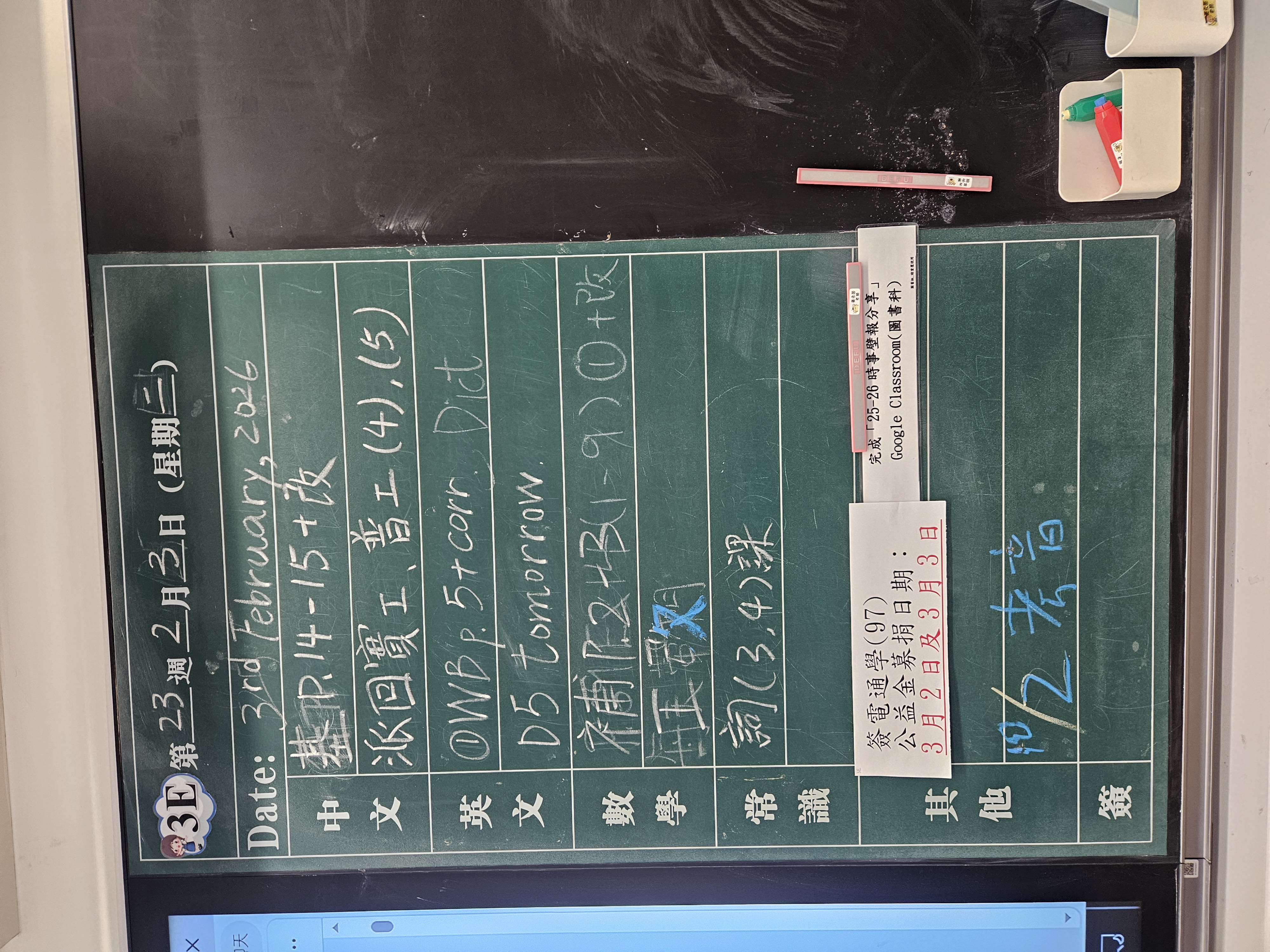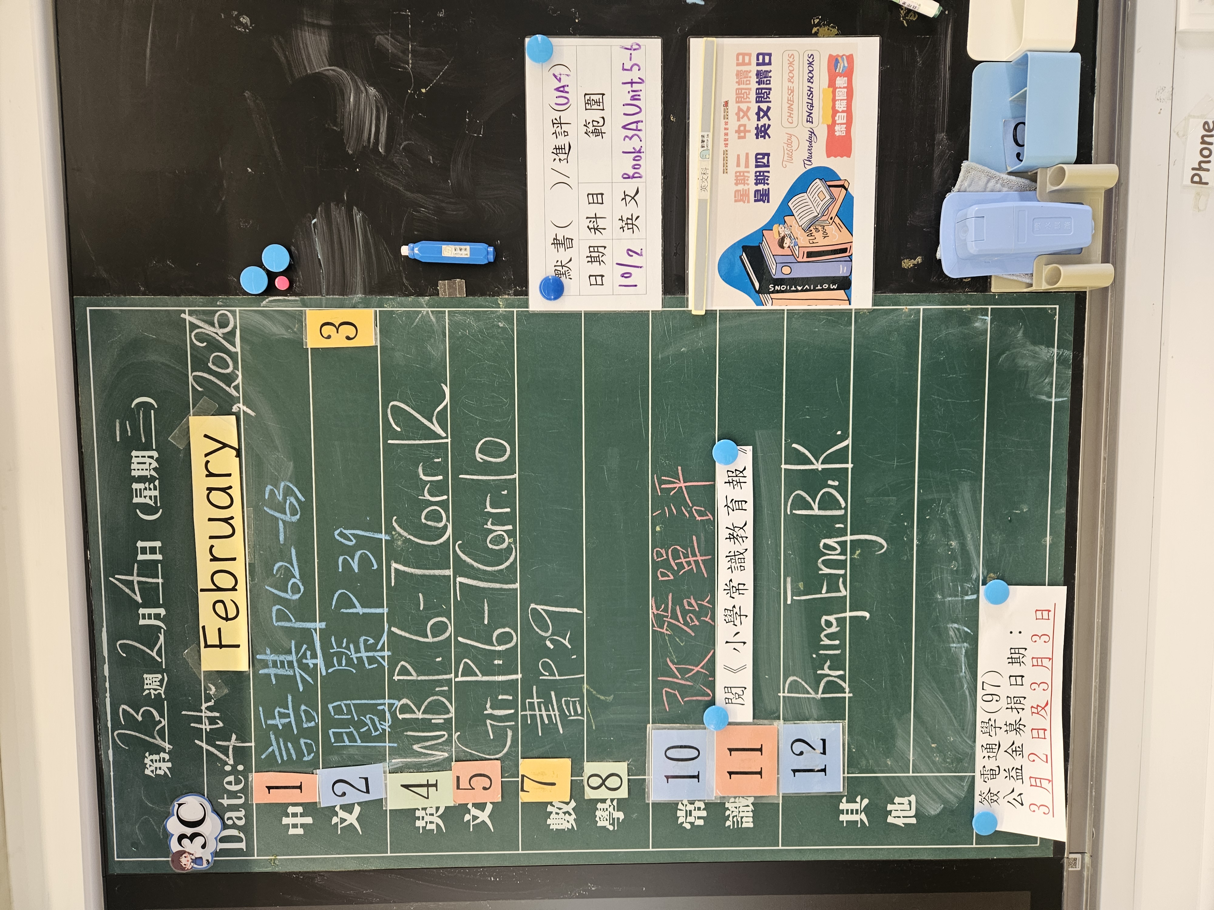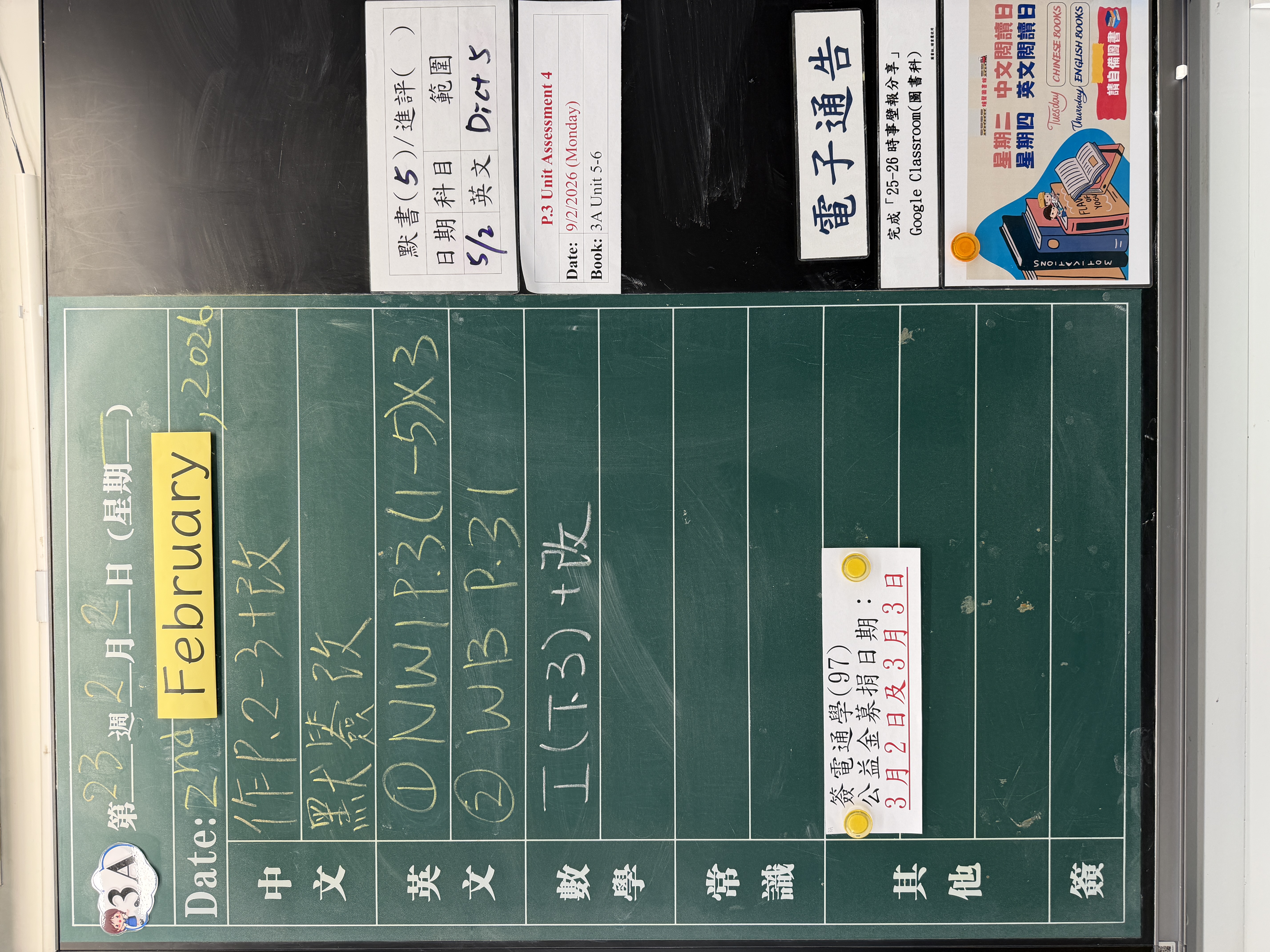 | 3B | 星期一 | 星期二 | 星期三 | 星期四 | 星期五 |