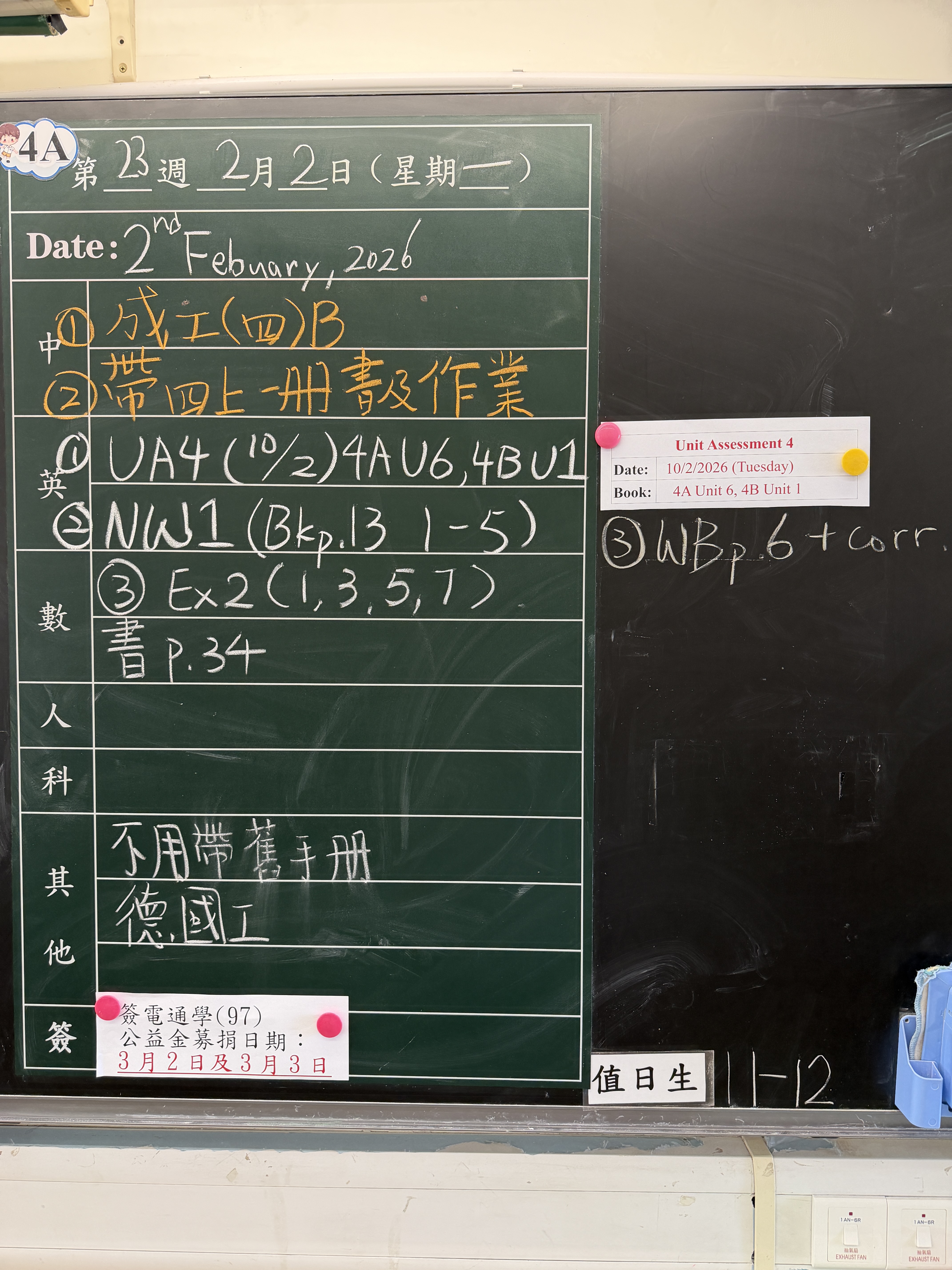 | 4A | 星期一 | 星期二 | 星期三 | 星期四 | 星期五 |