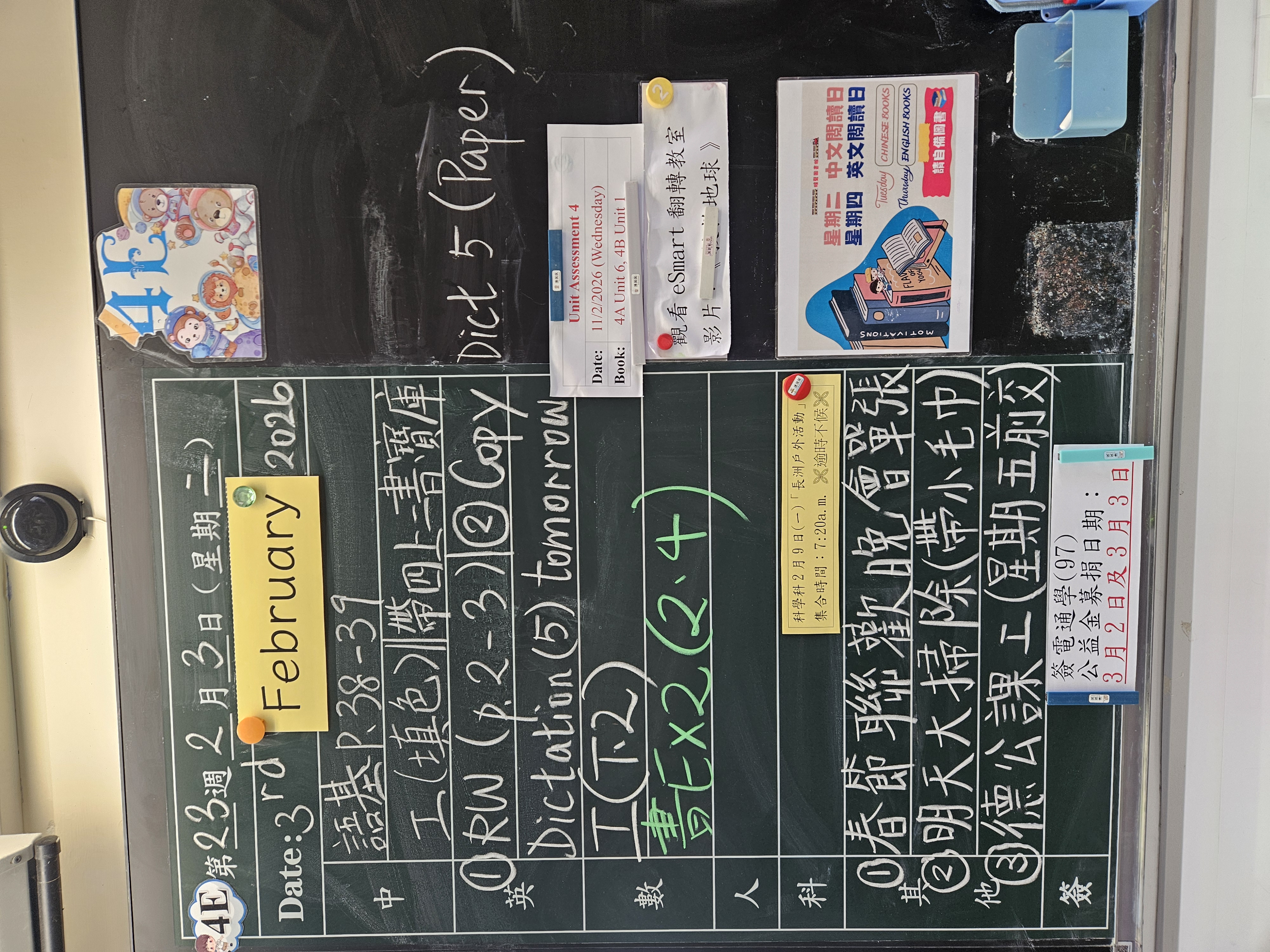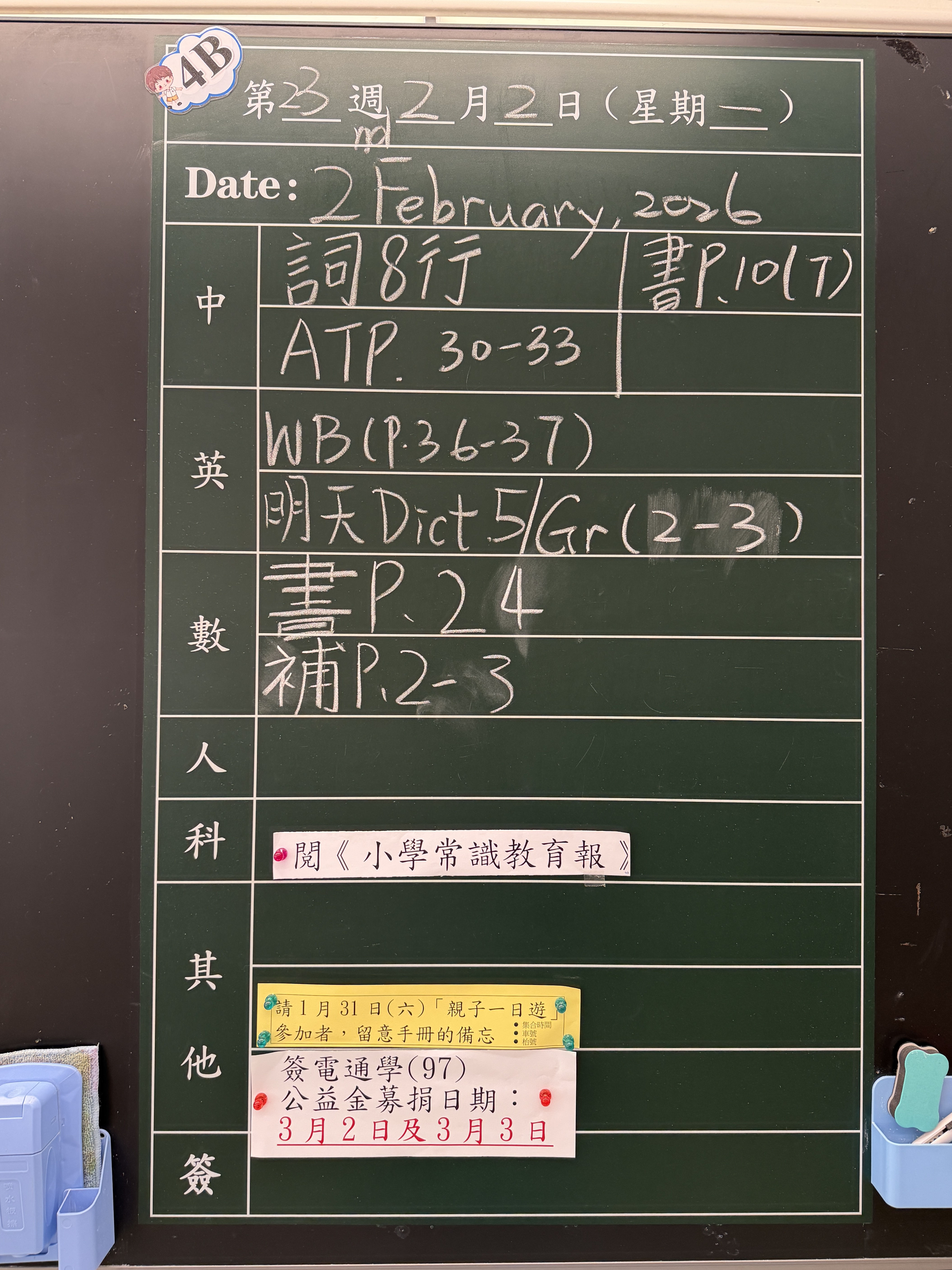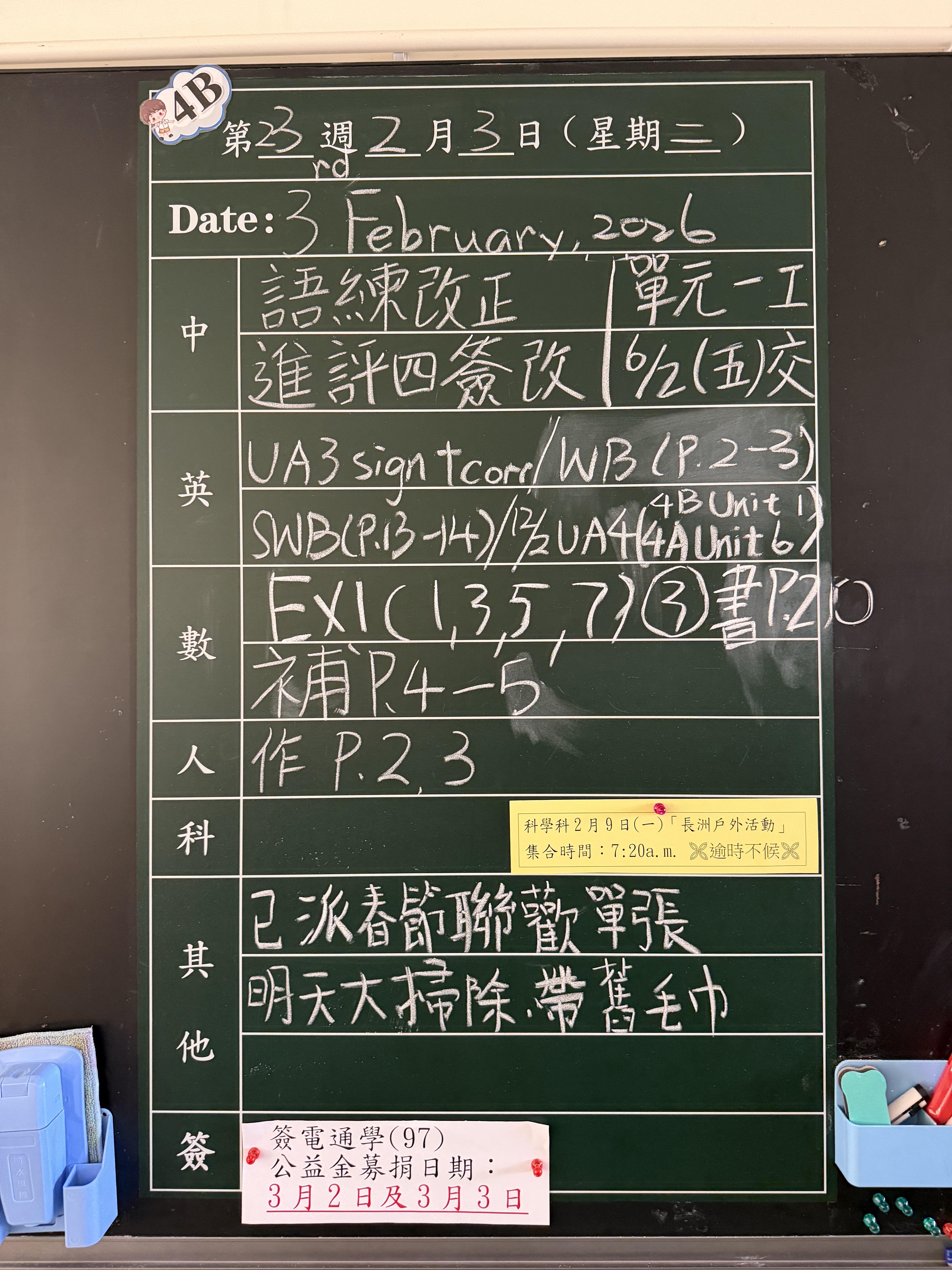 | 4B | 星期一 | 星期二 | 星期三 | 星期四 | 星期五 |