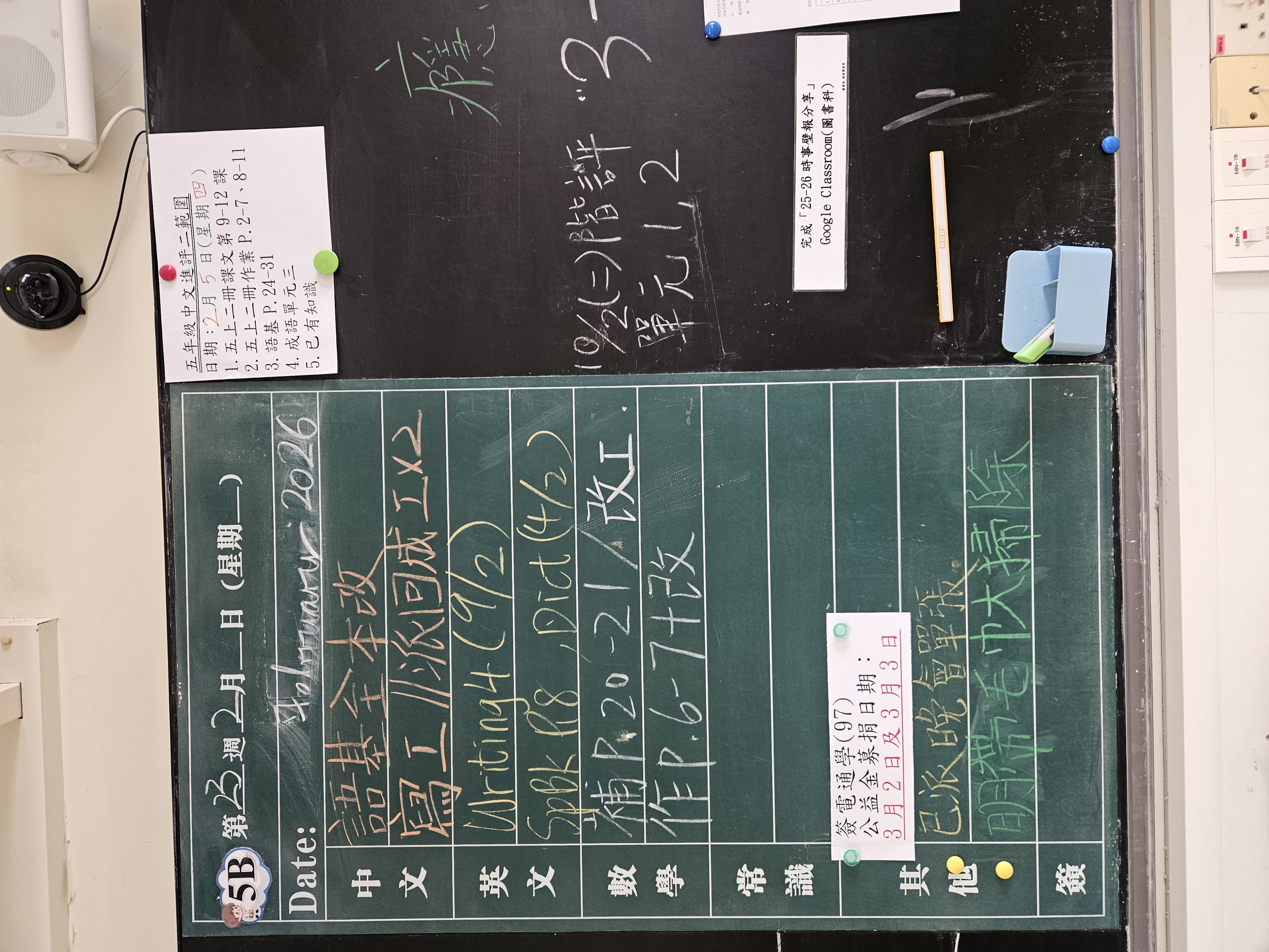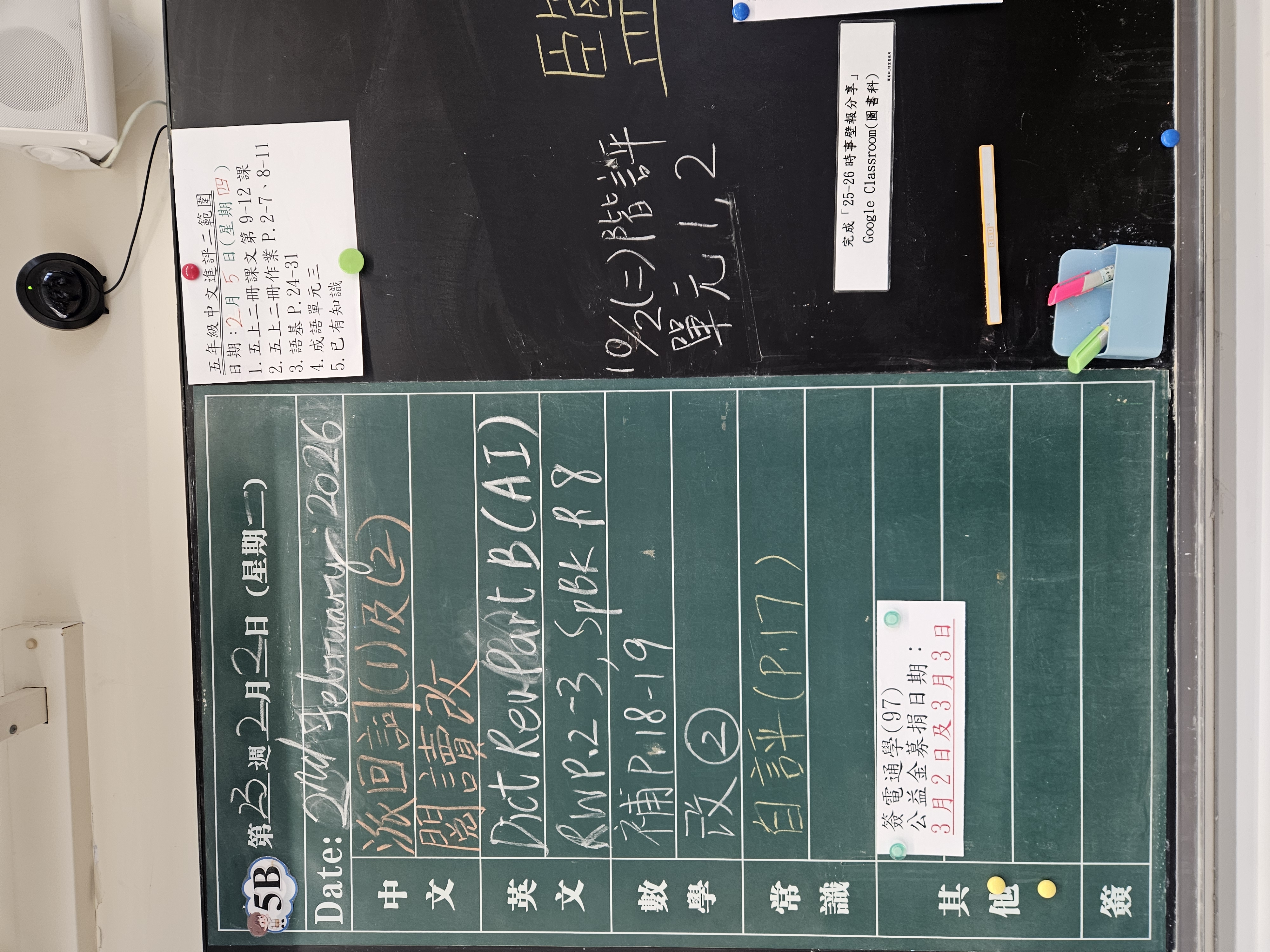 | 5B | 星期一 | 星期二 | 星期三 | 星期四 | 星期五 |