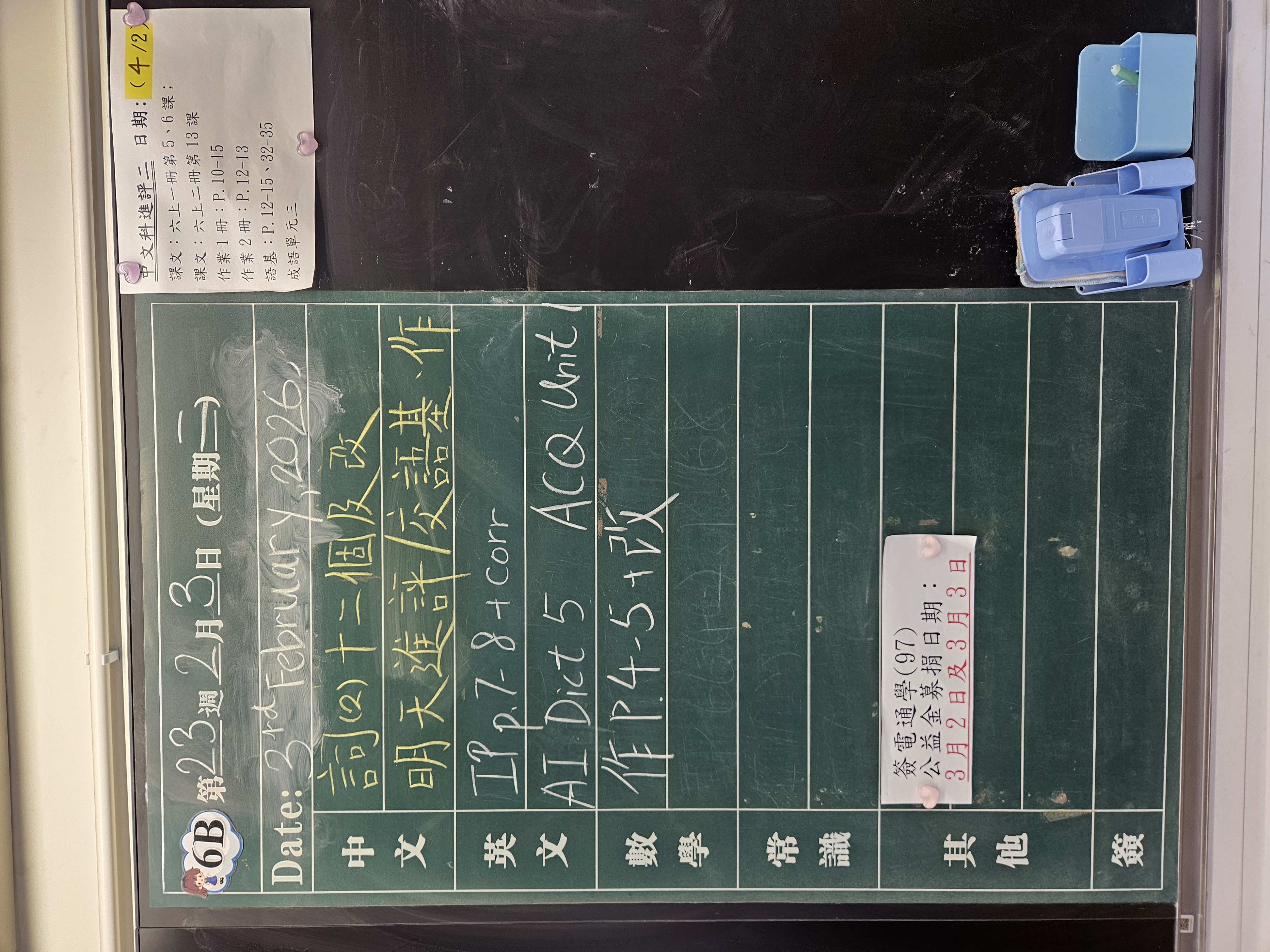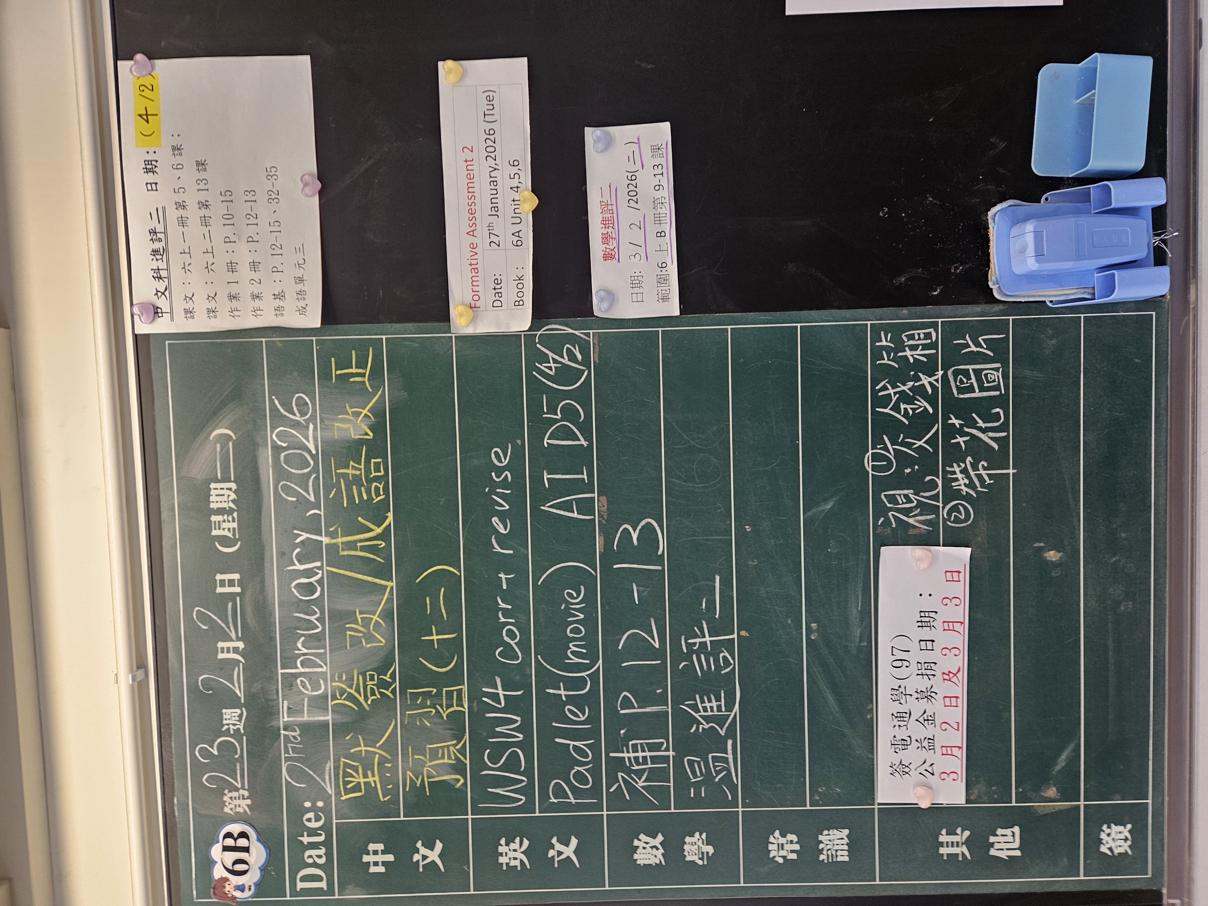 | 6B | 星期一 | 星期二 | 星期三 | 星期四 | 星期五 |