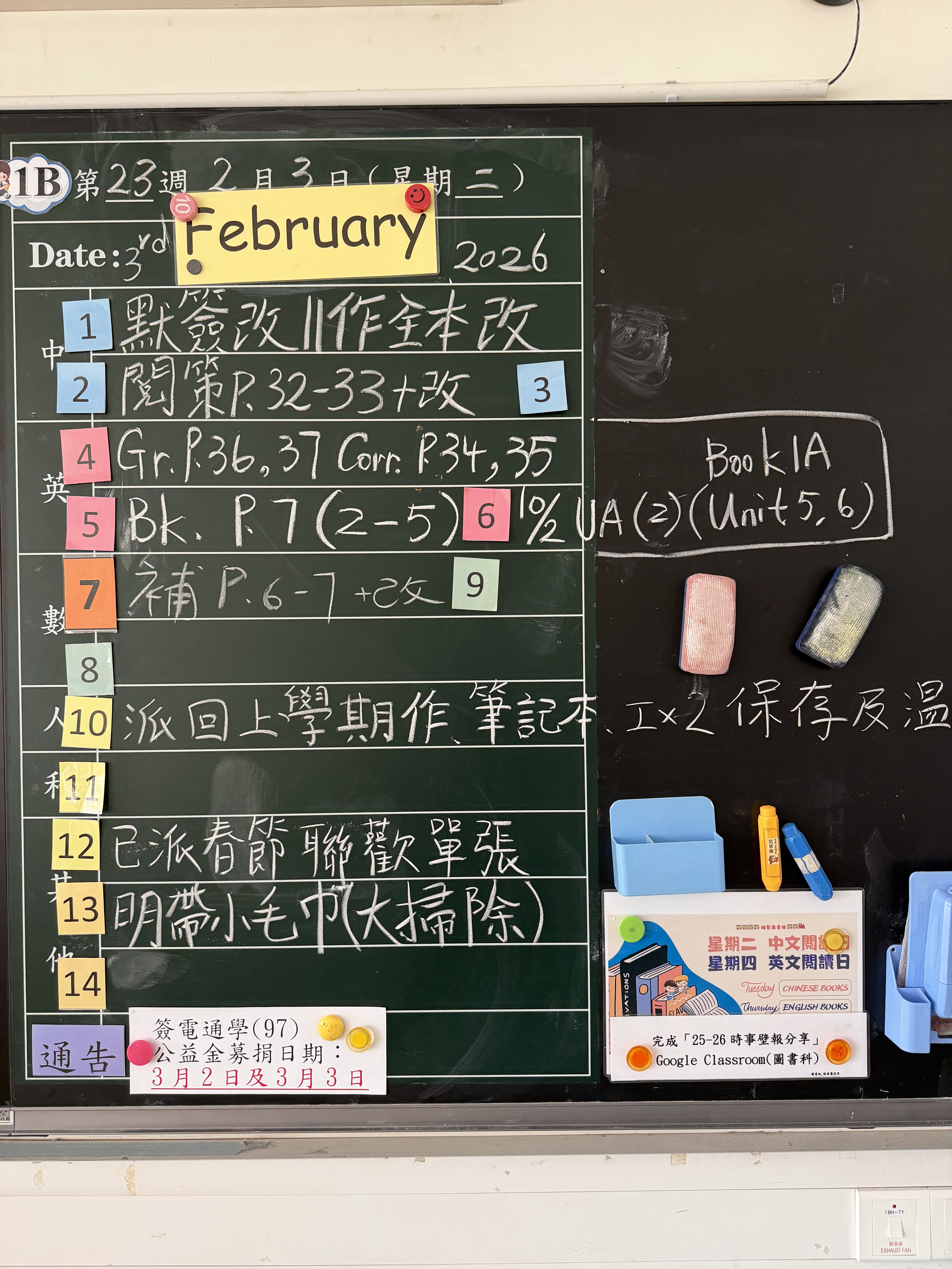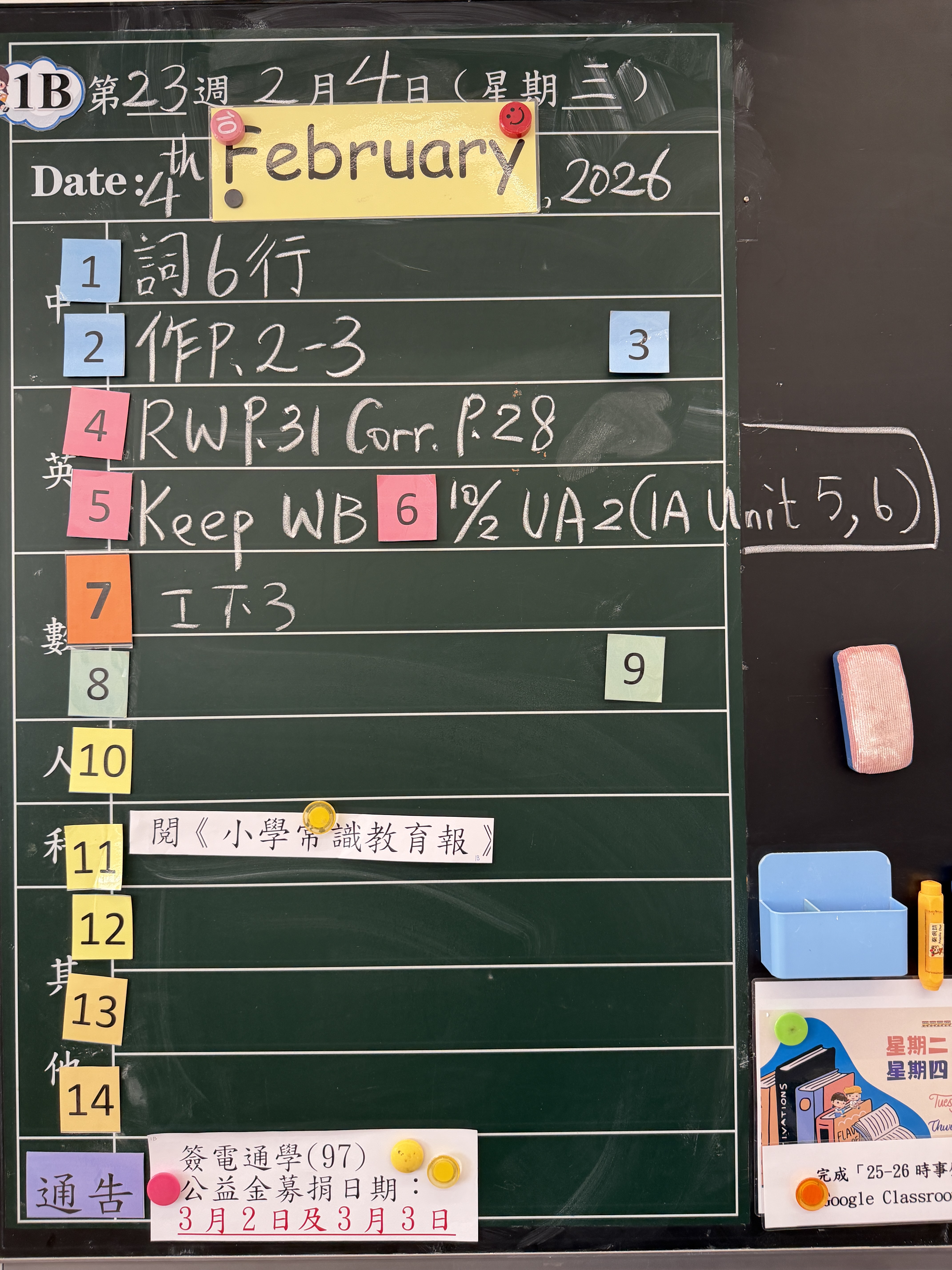 | 1B | 星期一 | 星期二 | 星期三 | 星期四 | 星期五 |
