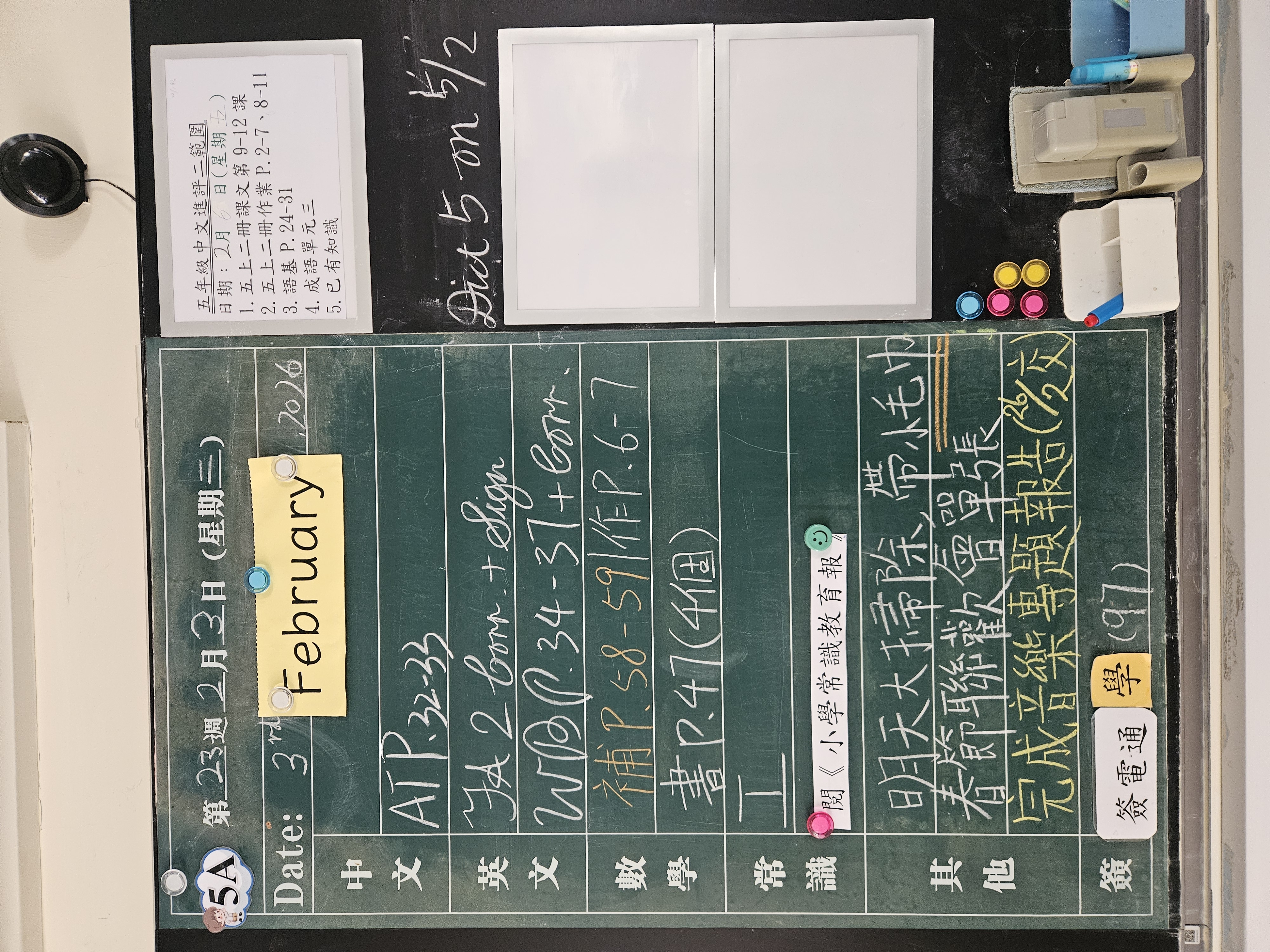 | 5A | 星期一 | 星期二 | 星期三 | 星期四 | 星期五 |