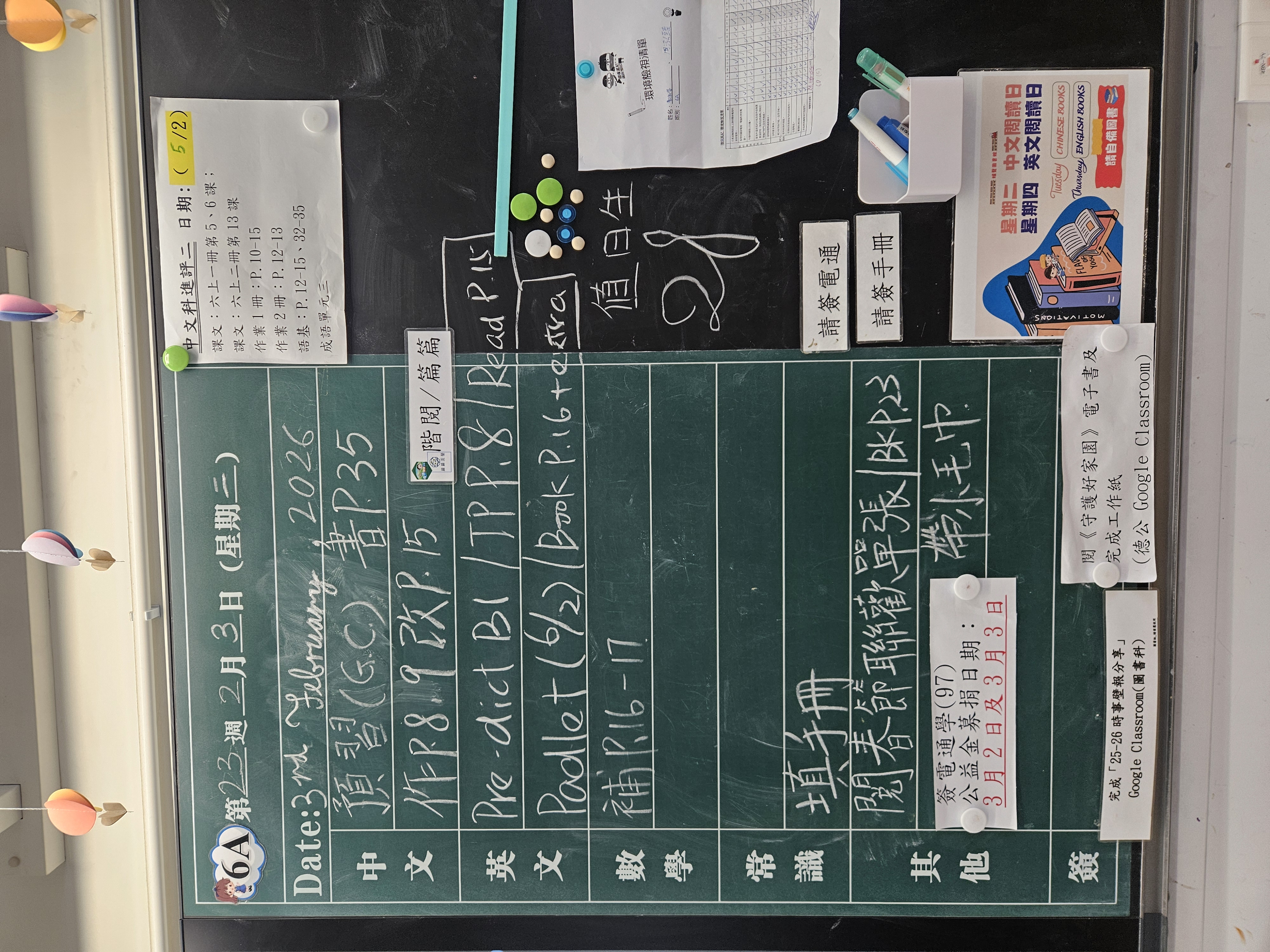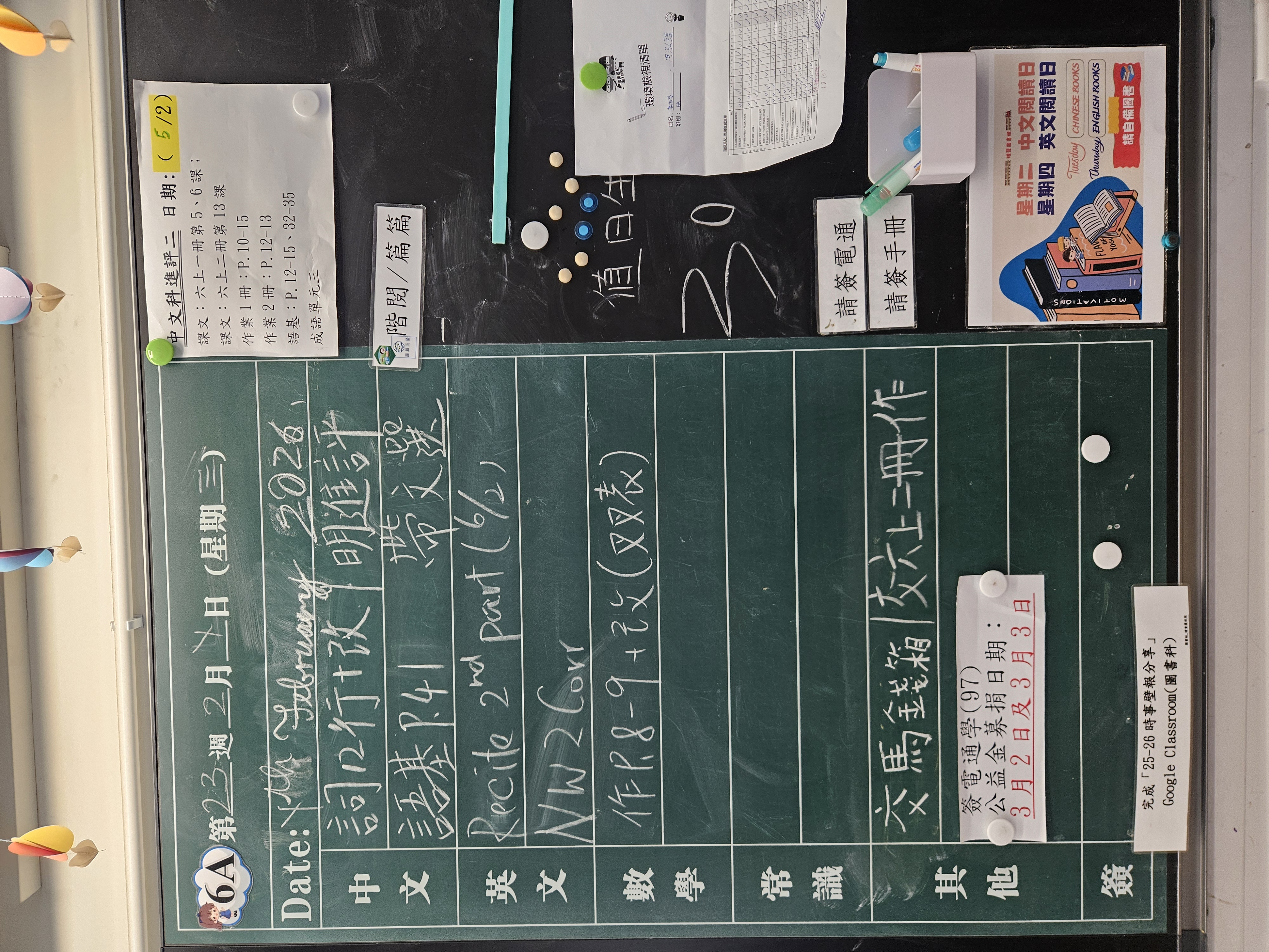 | 6A | 星期一 | 星期二 | 星期三 | 星期四 | 星期五 |