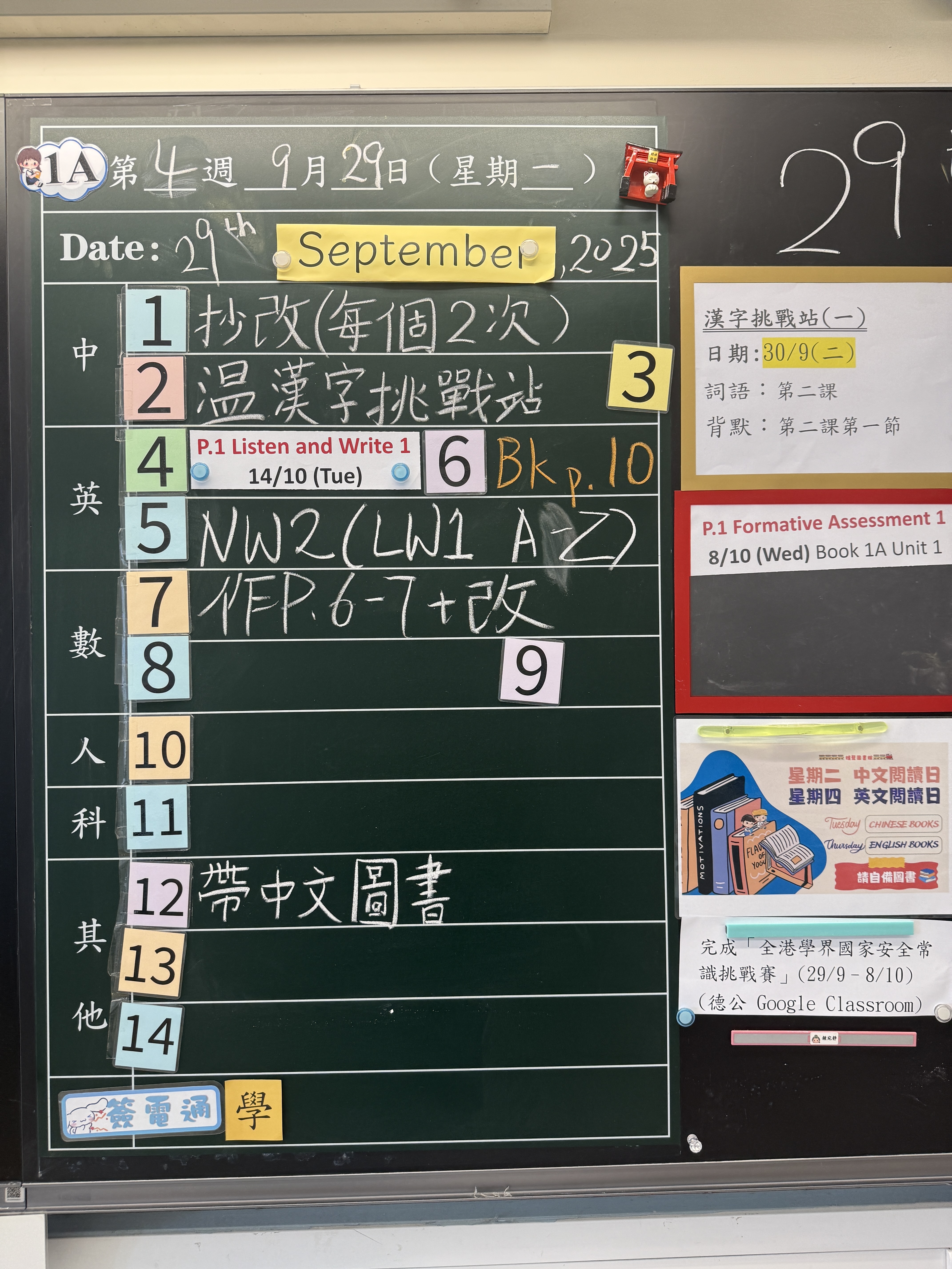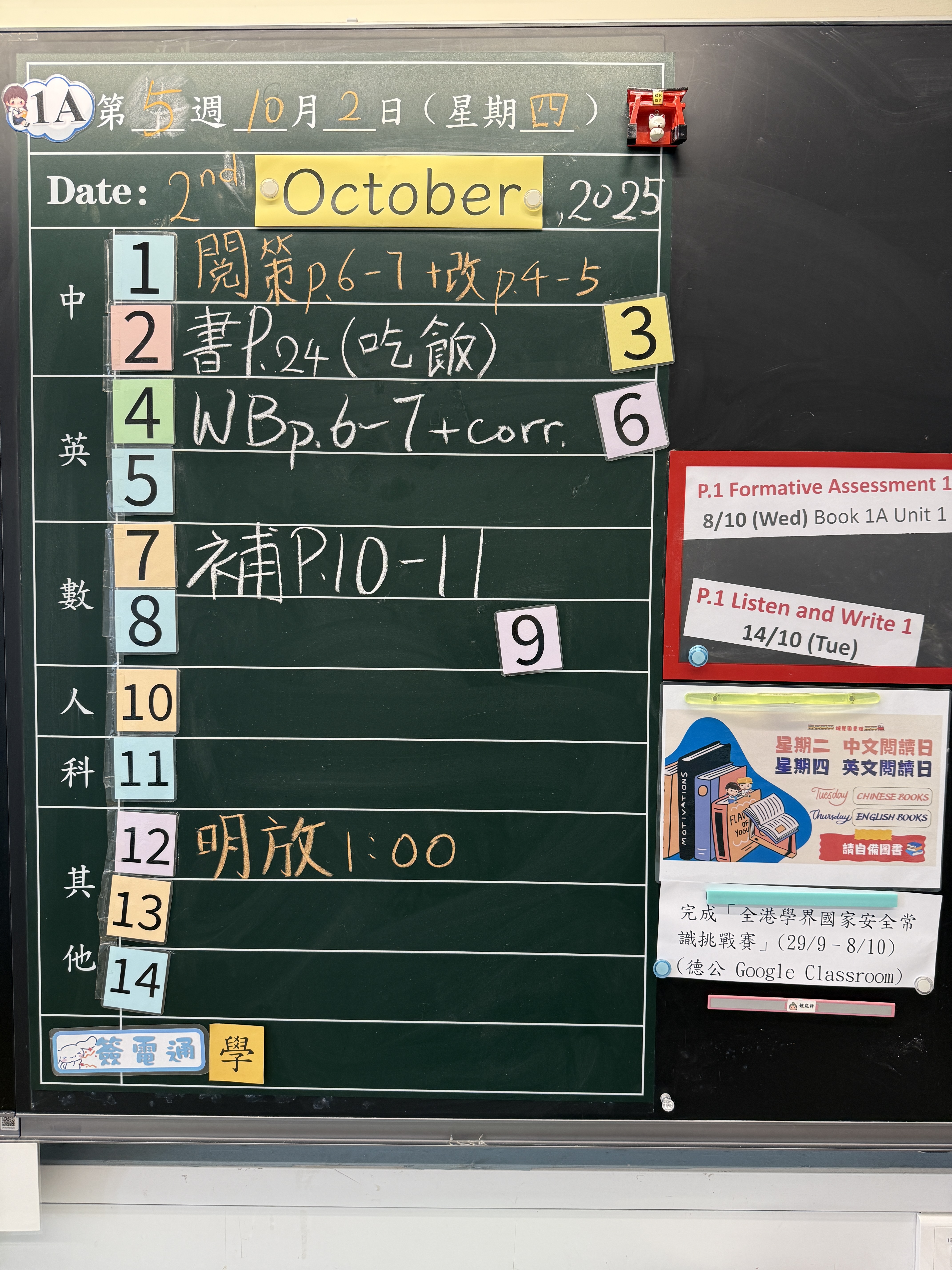 1A | 星期一 | 星期二 | 星期三 | 星期四 | 星期五 |