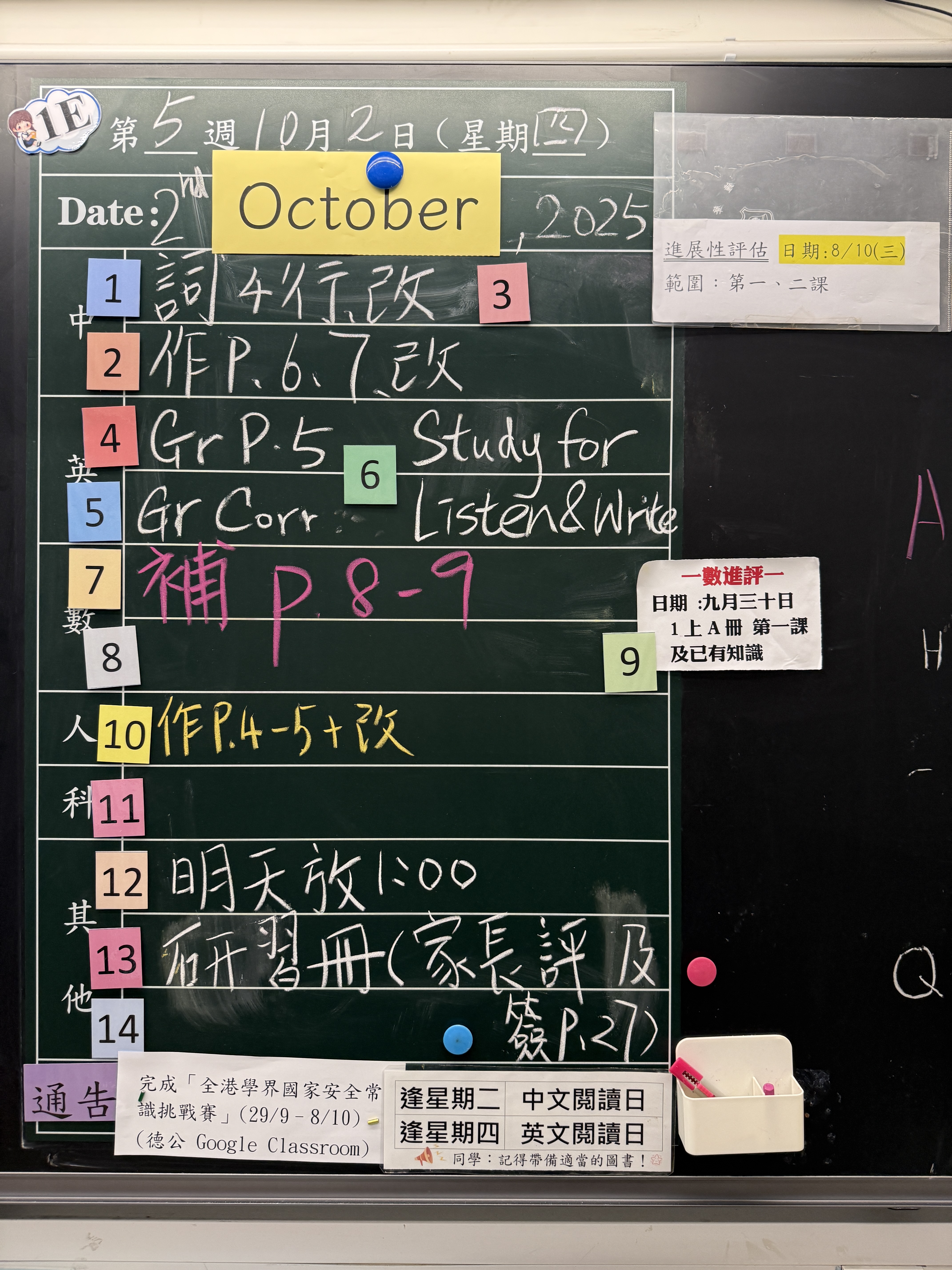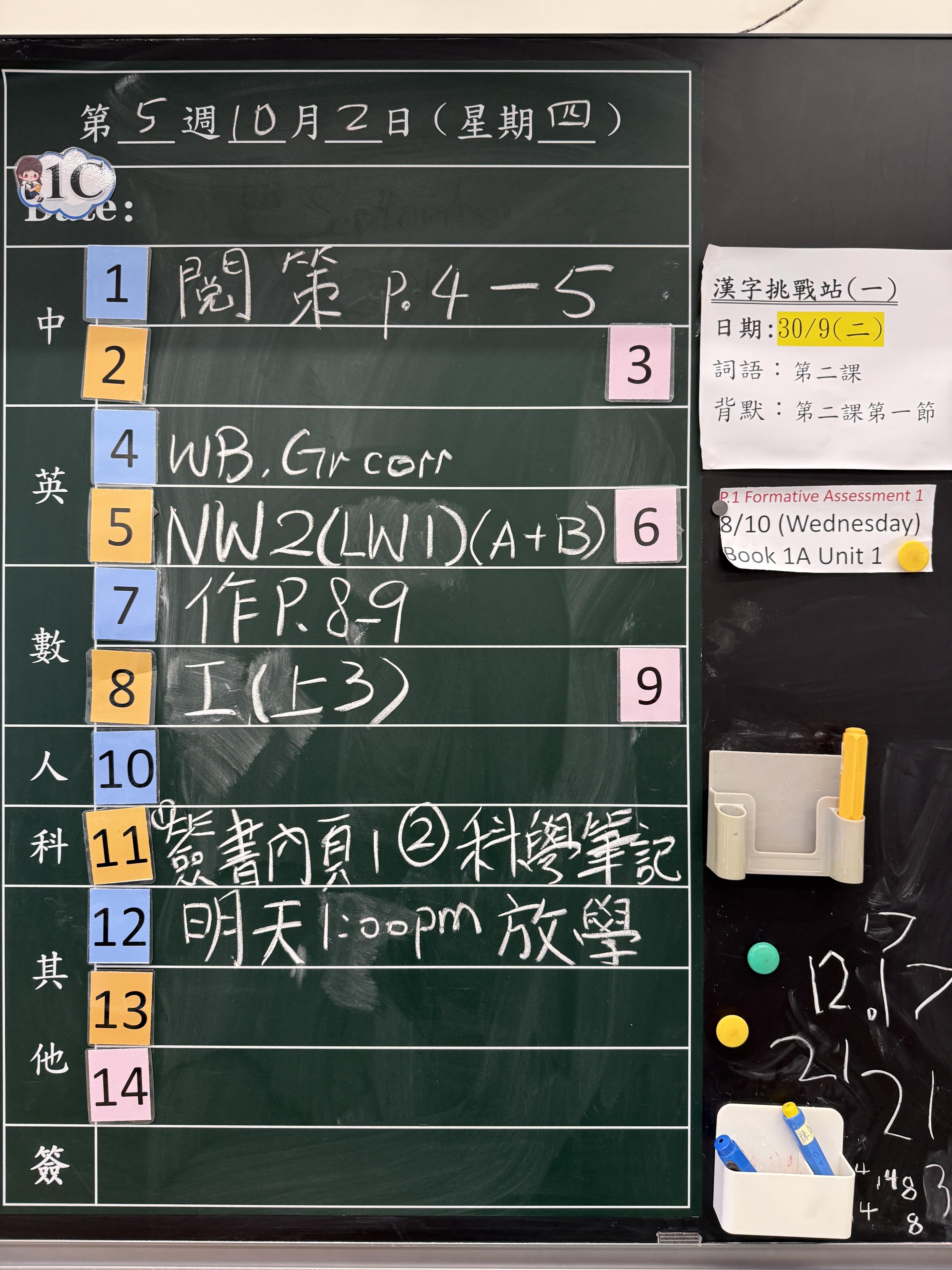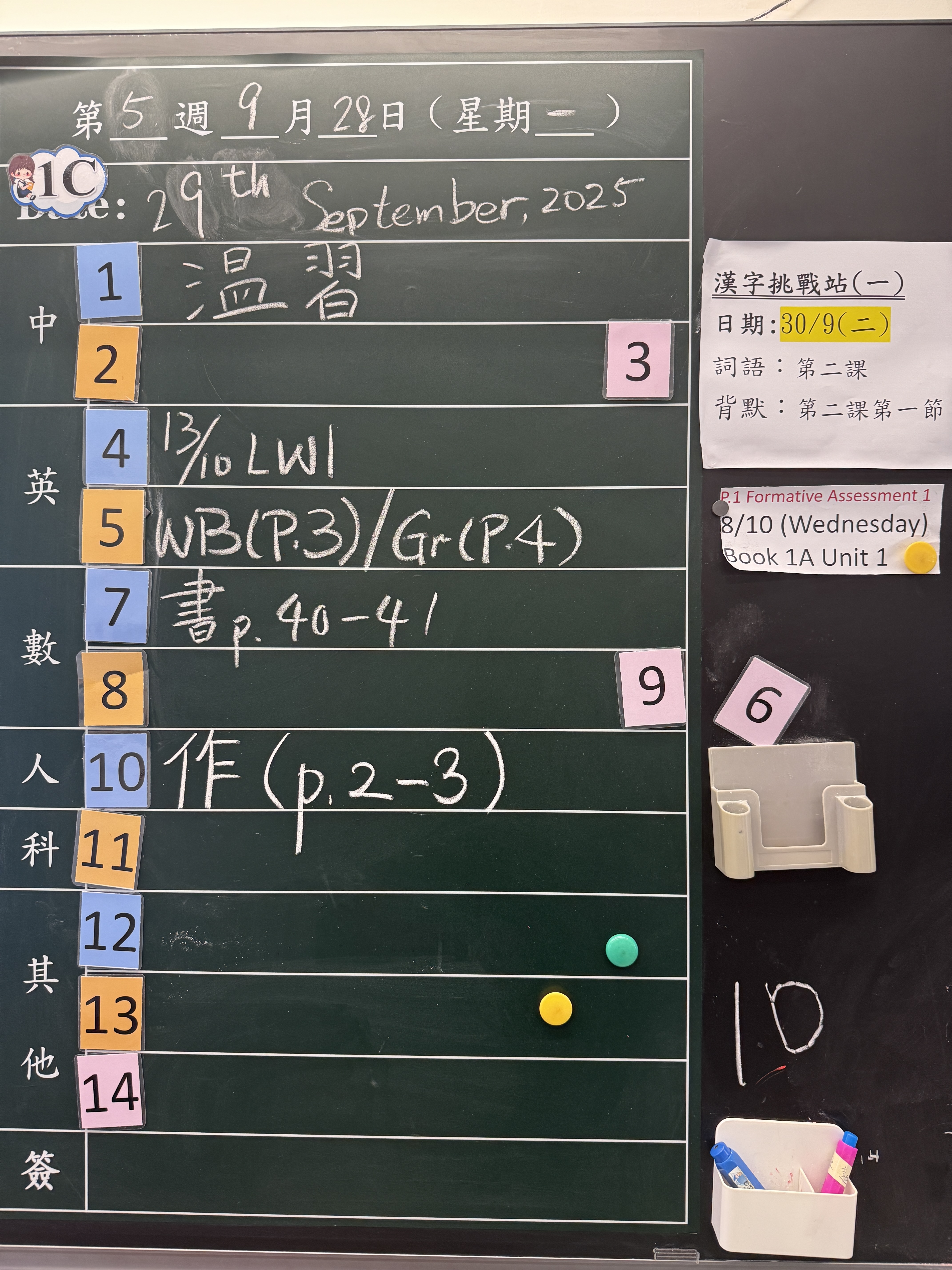 1D | 星期一 | 星期二 | 星期三 | 星期四 | 星期五 |